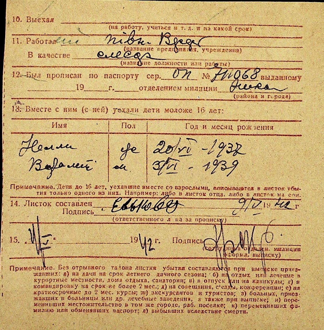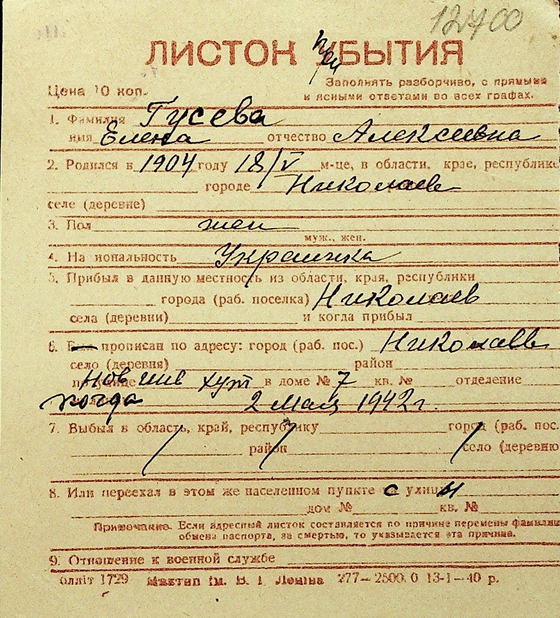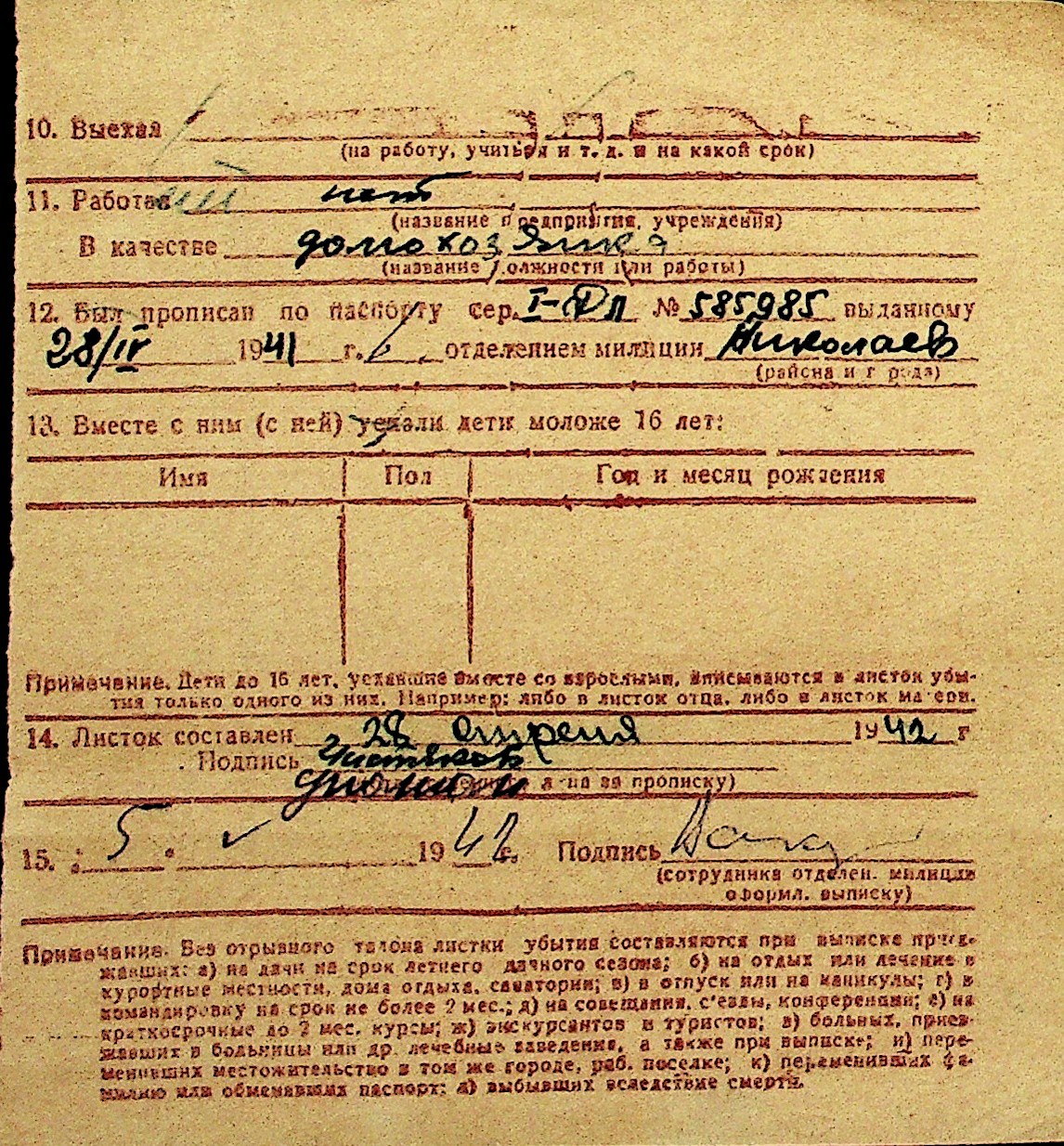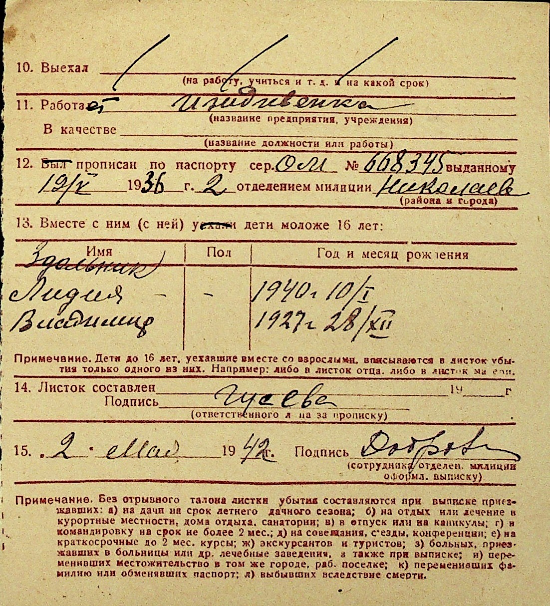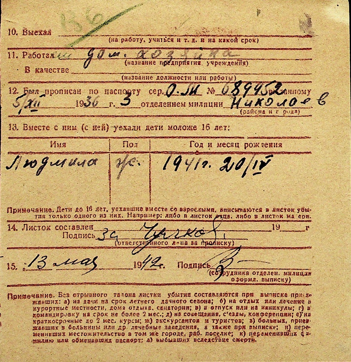 • • Перелік карток до фонду № Н-1016