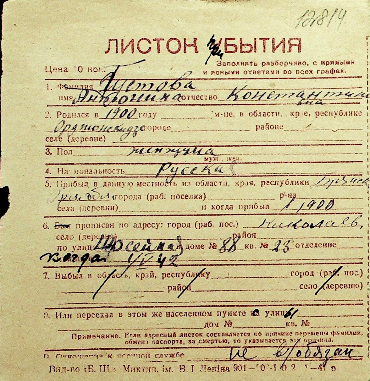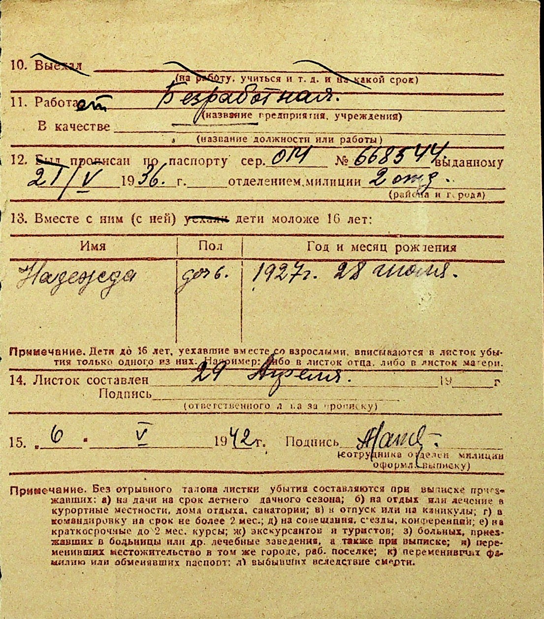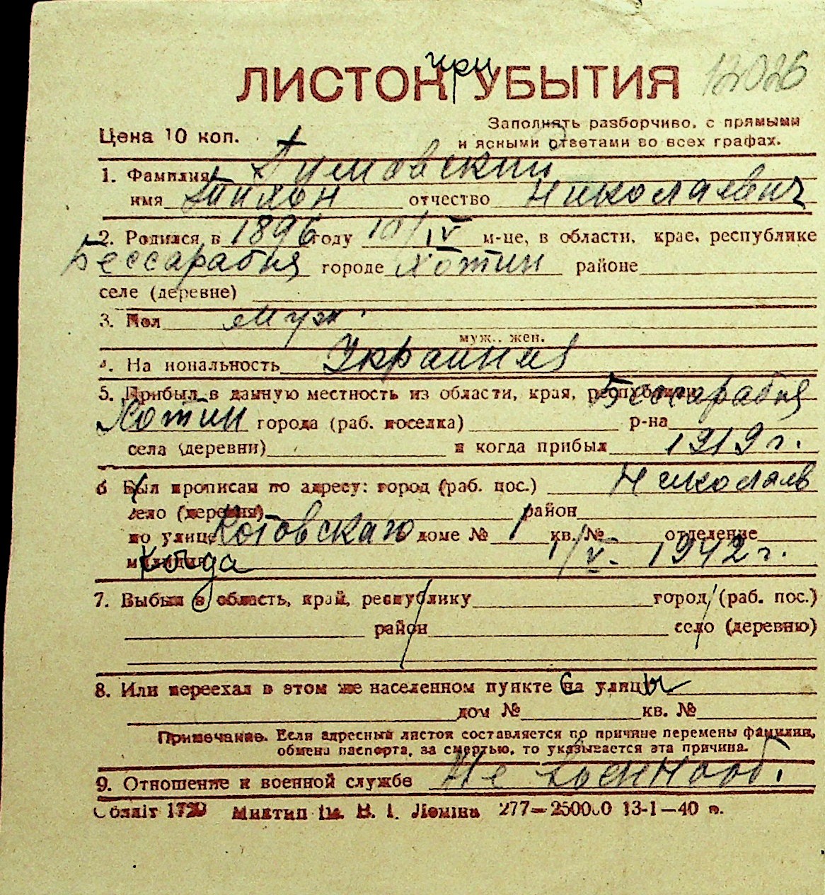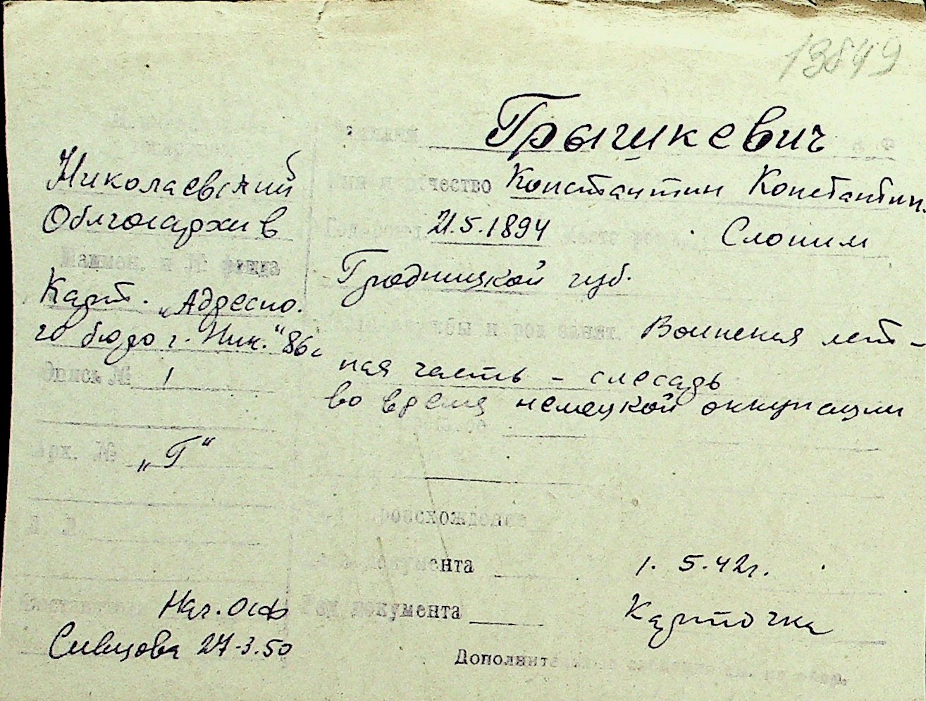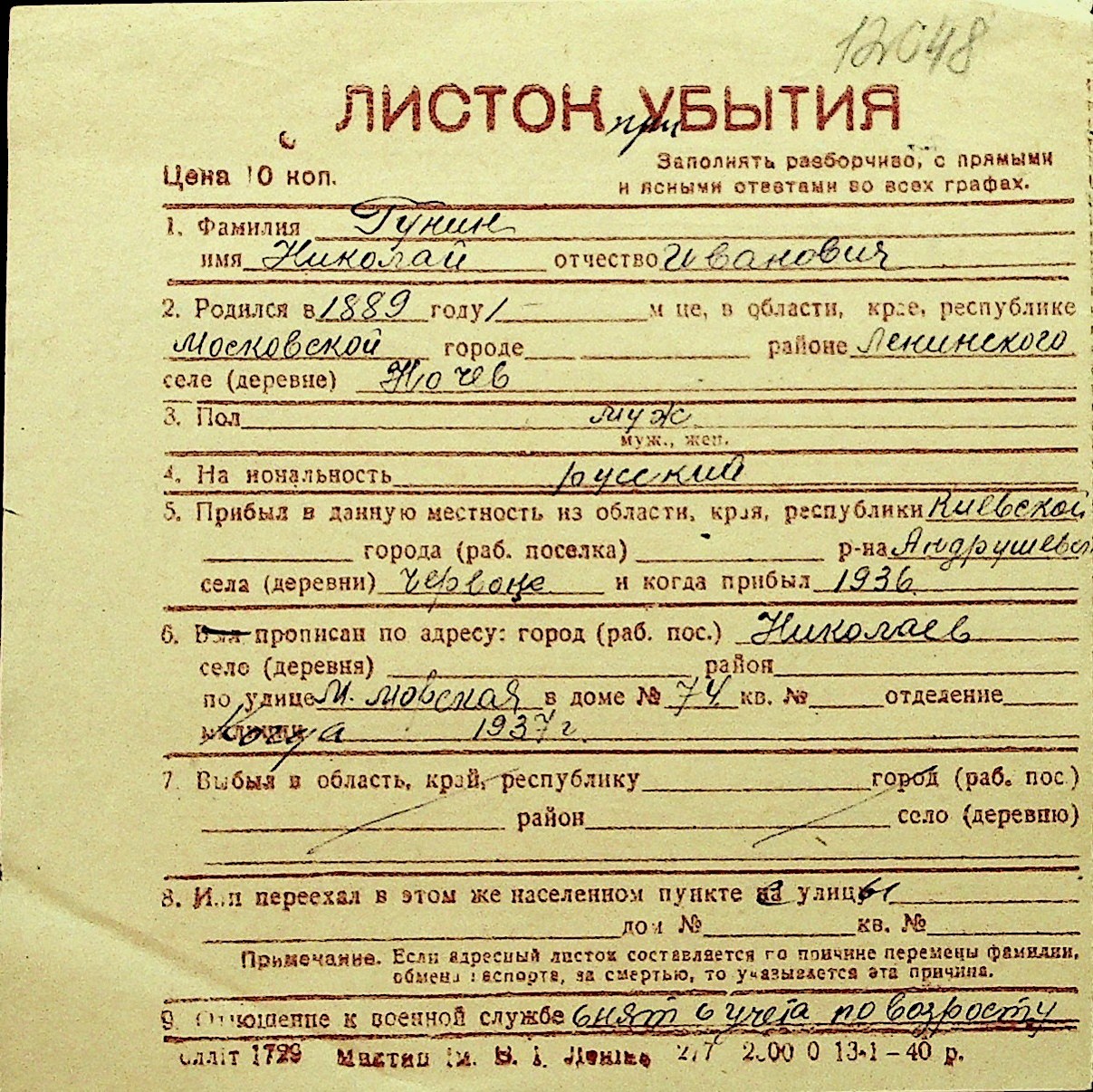 • • Перелік карток до фонду № Н-1016
