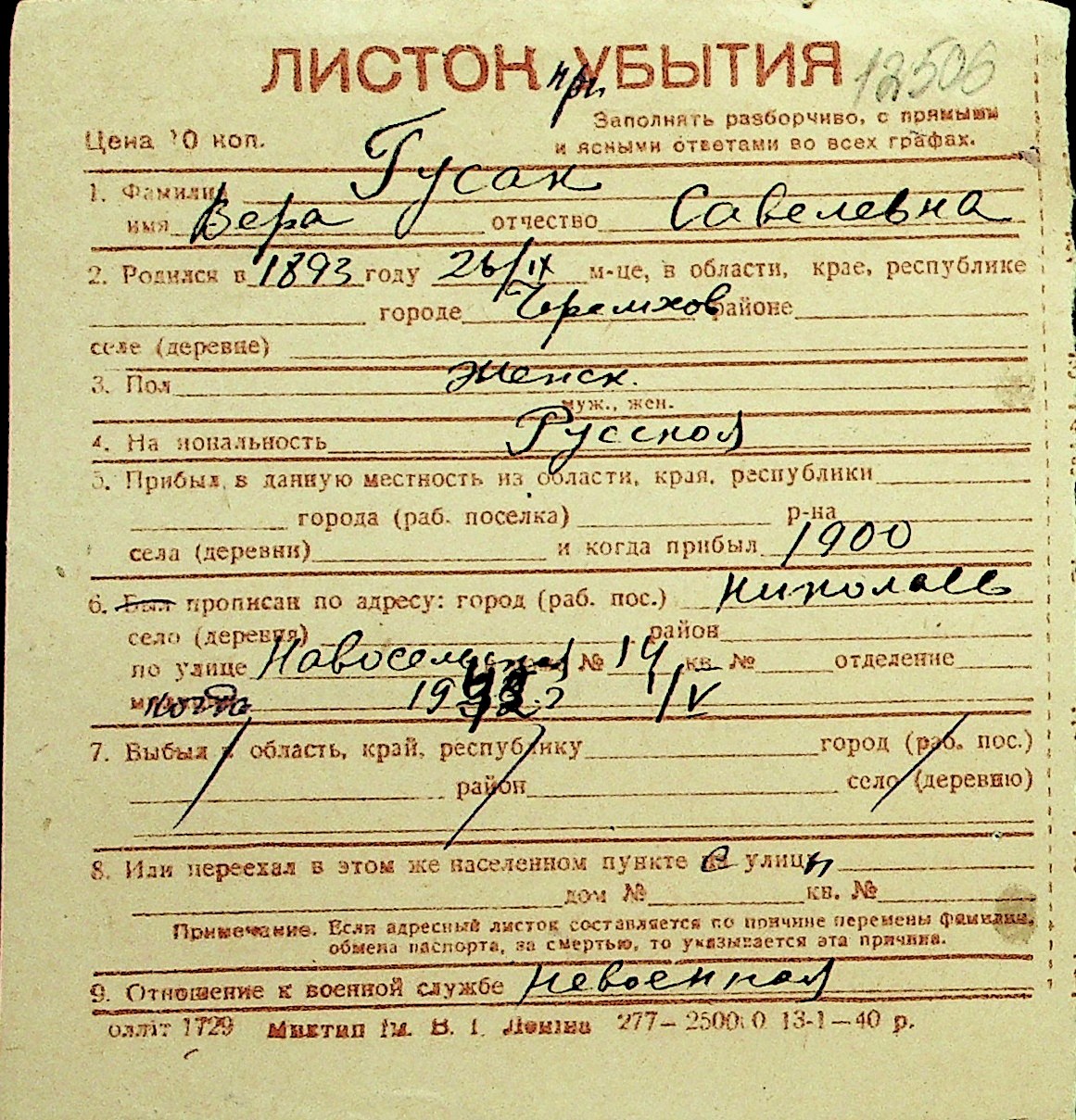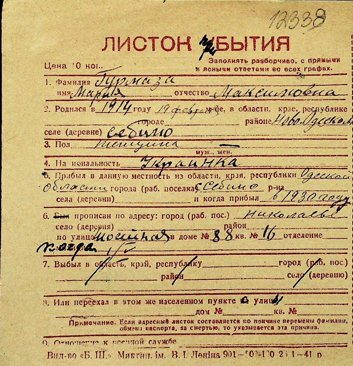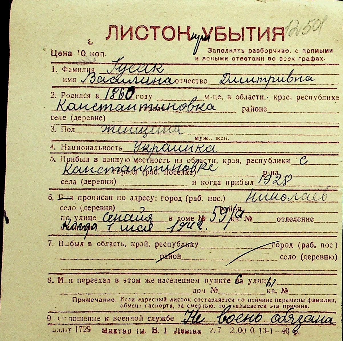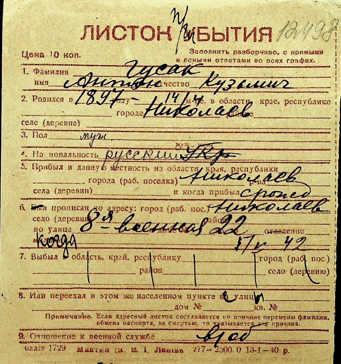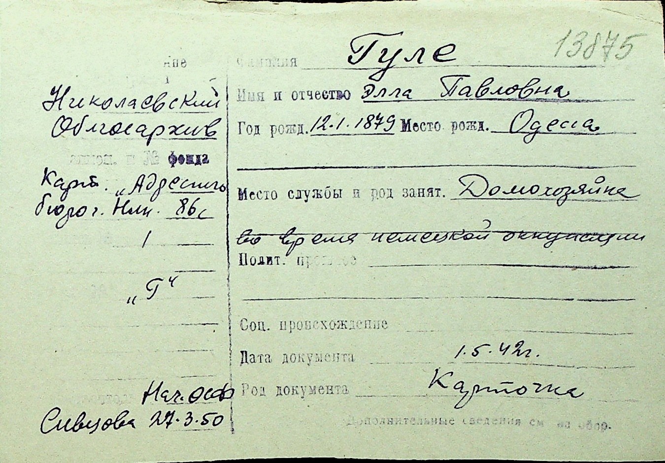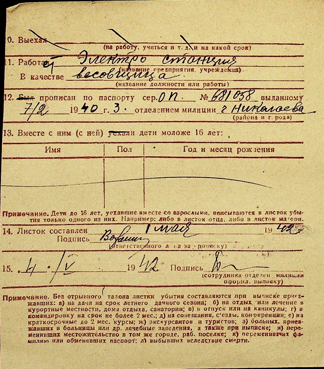 • • Перелік карток до фонду № Н-1016