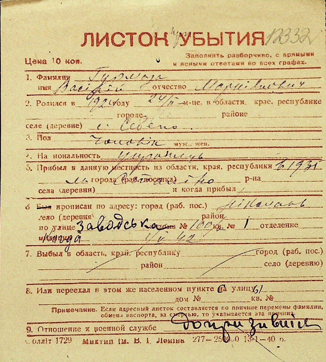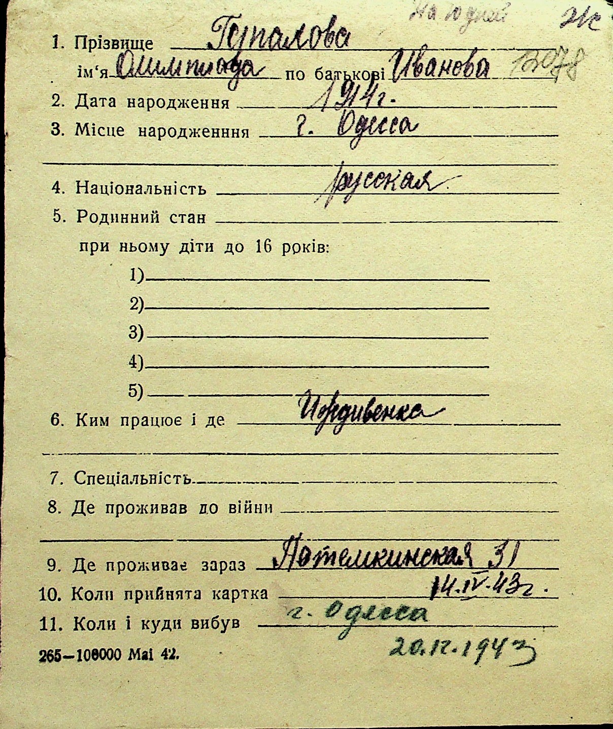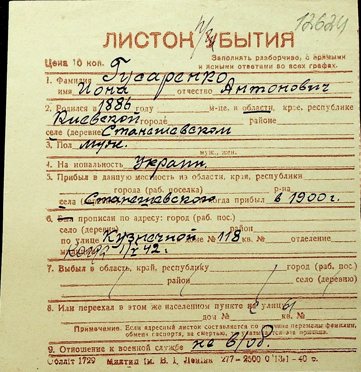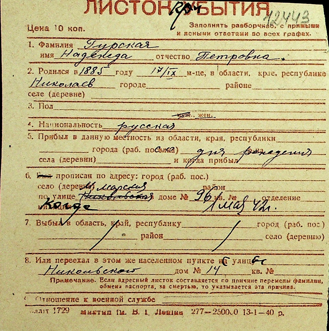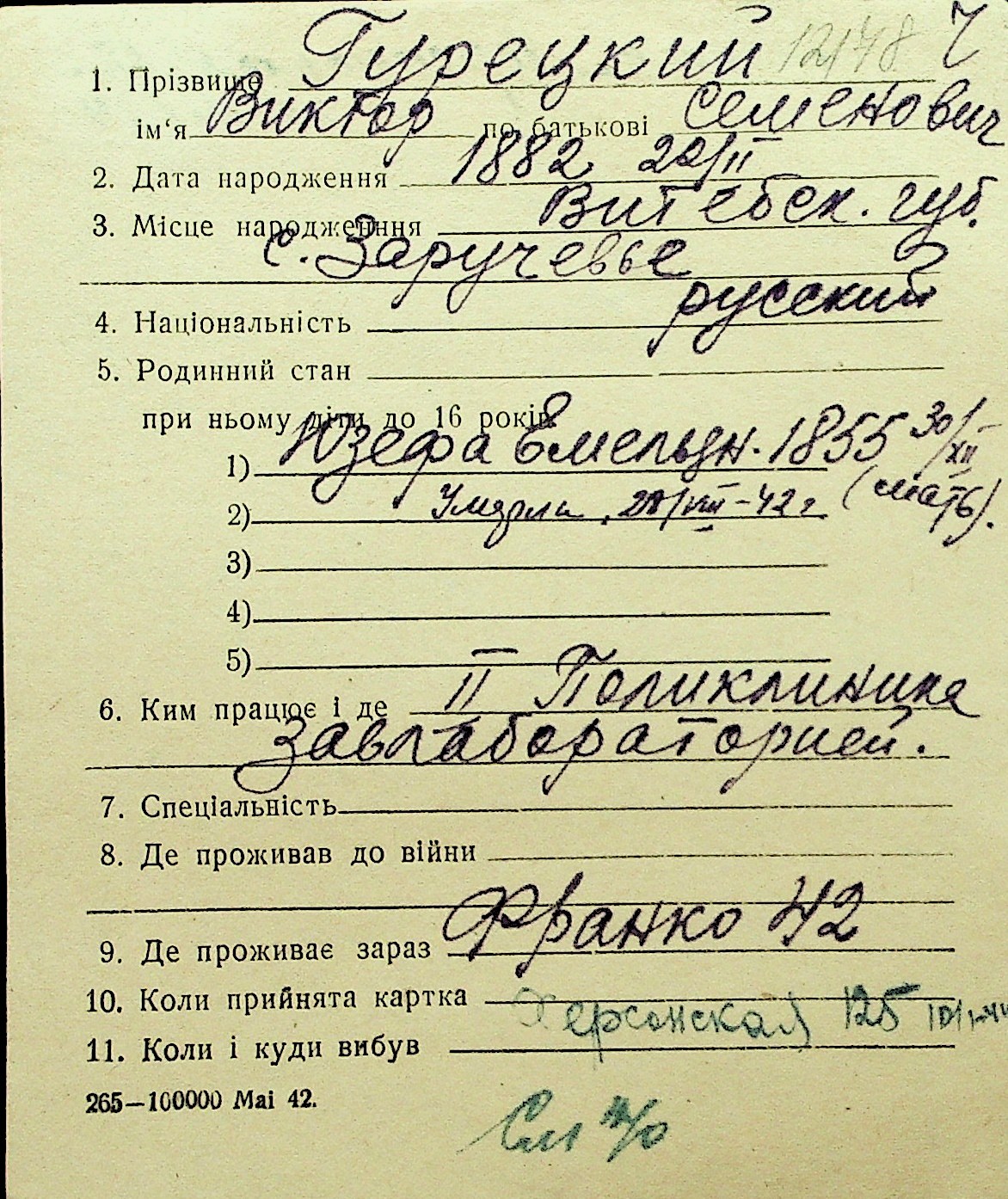 • • Перелік карток до фонду № Н-1016