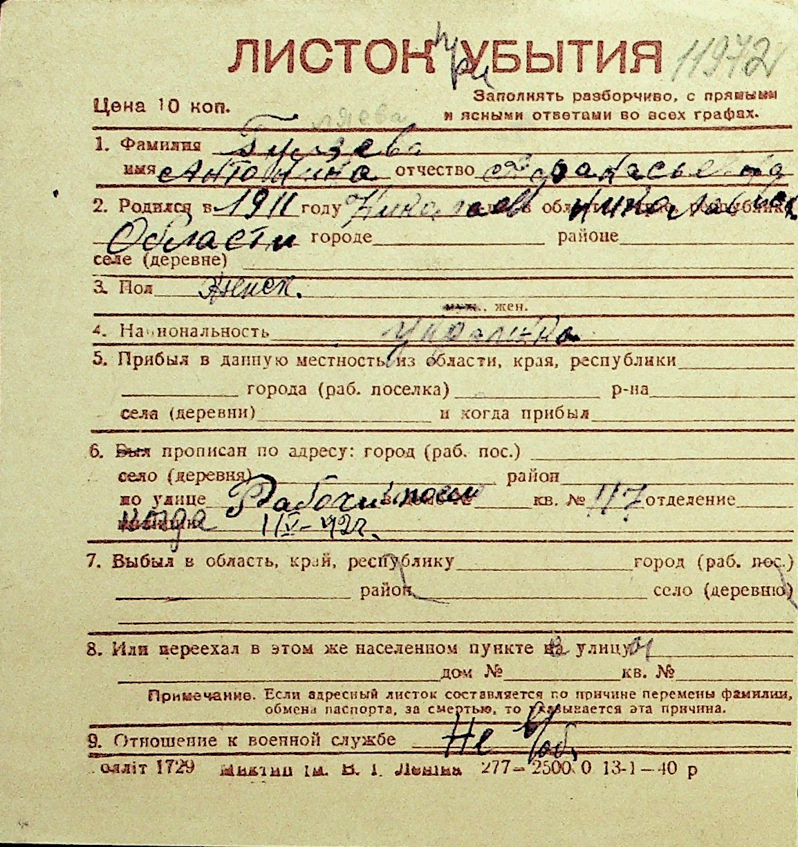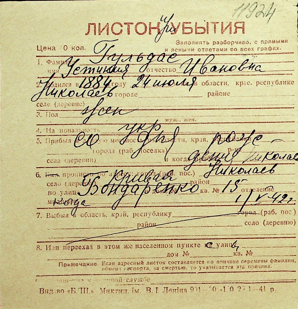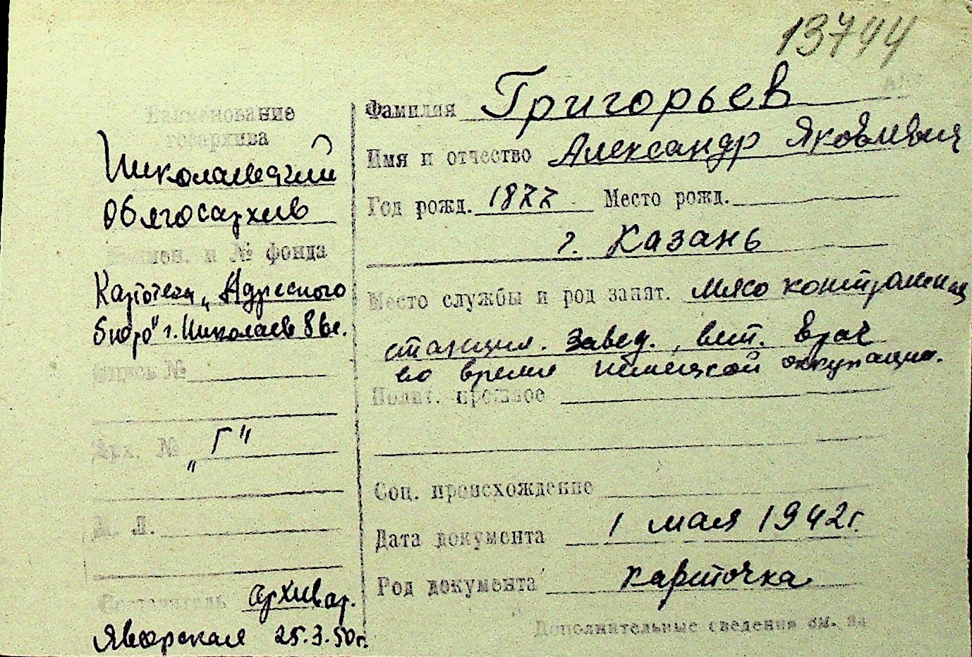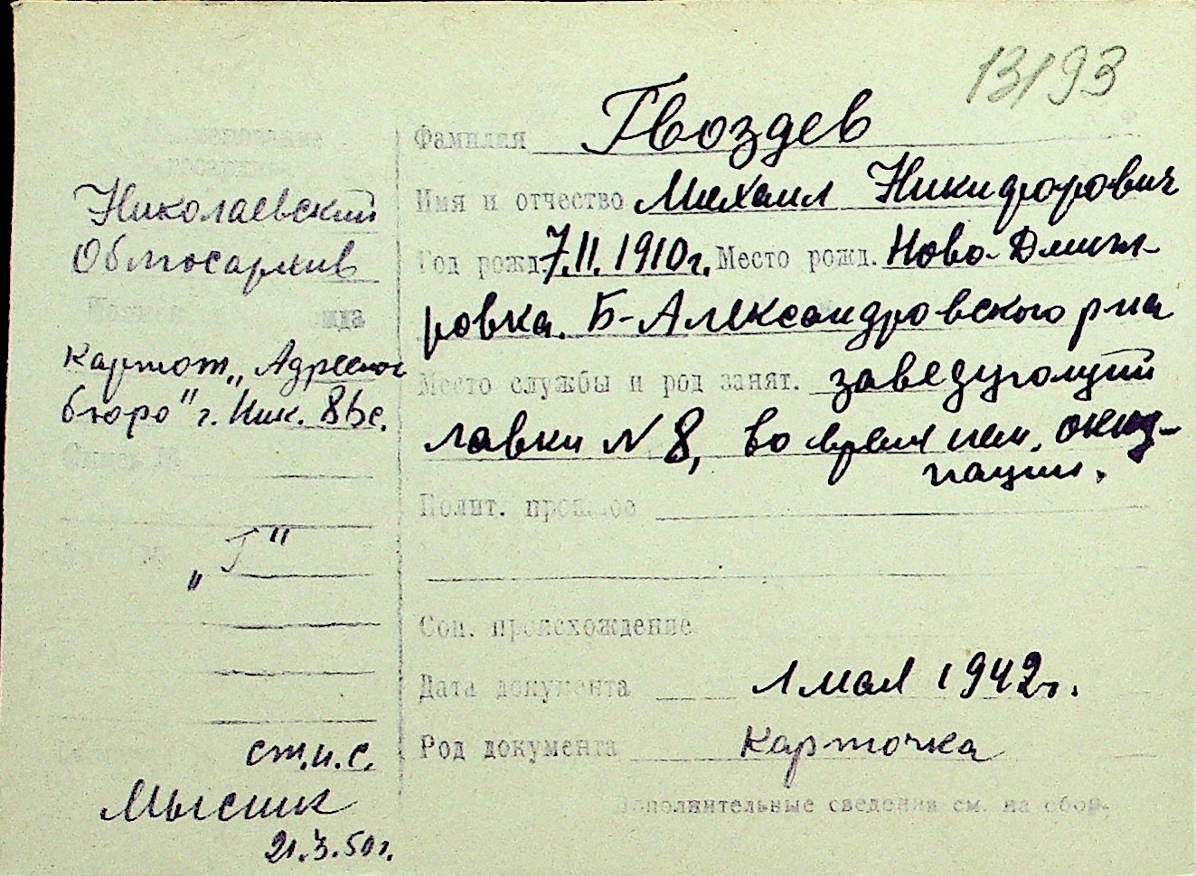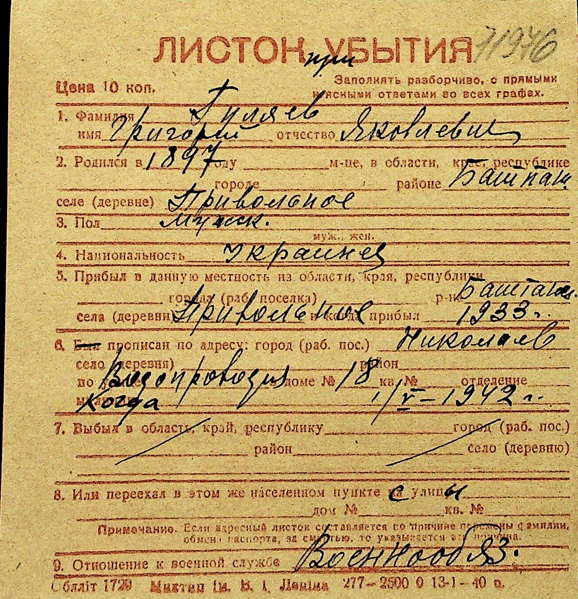• • Перелік карток до фонду № Н-1016