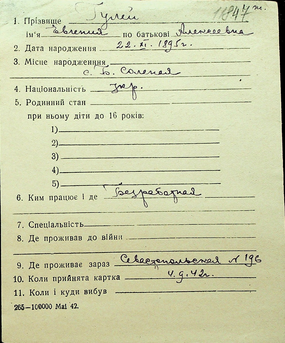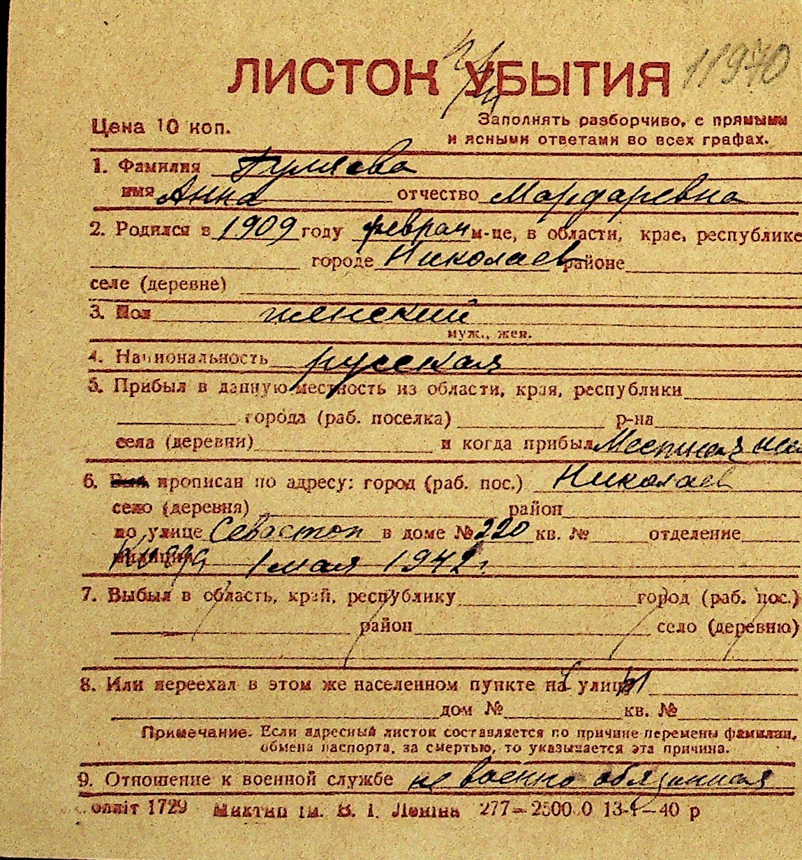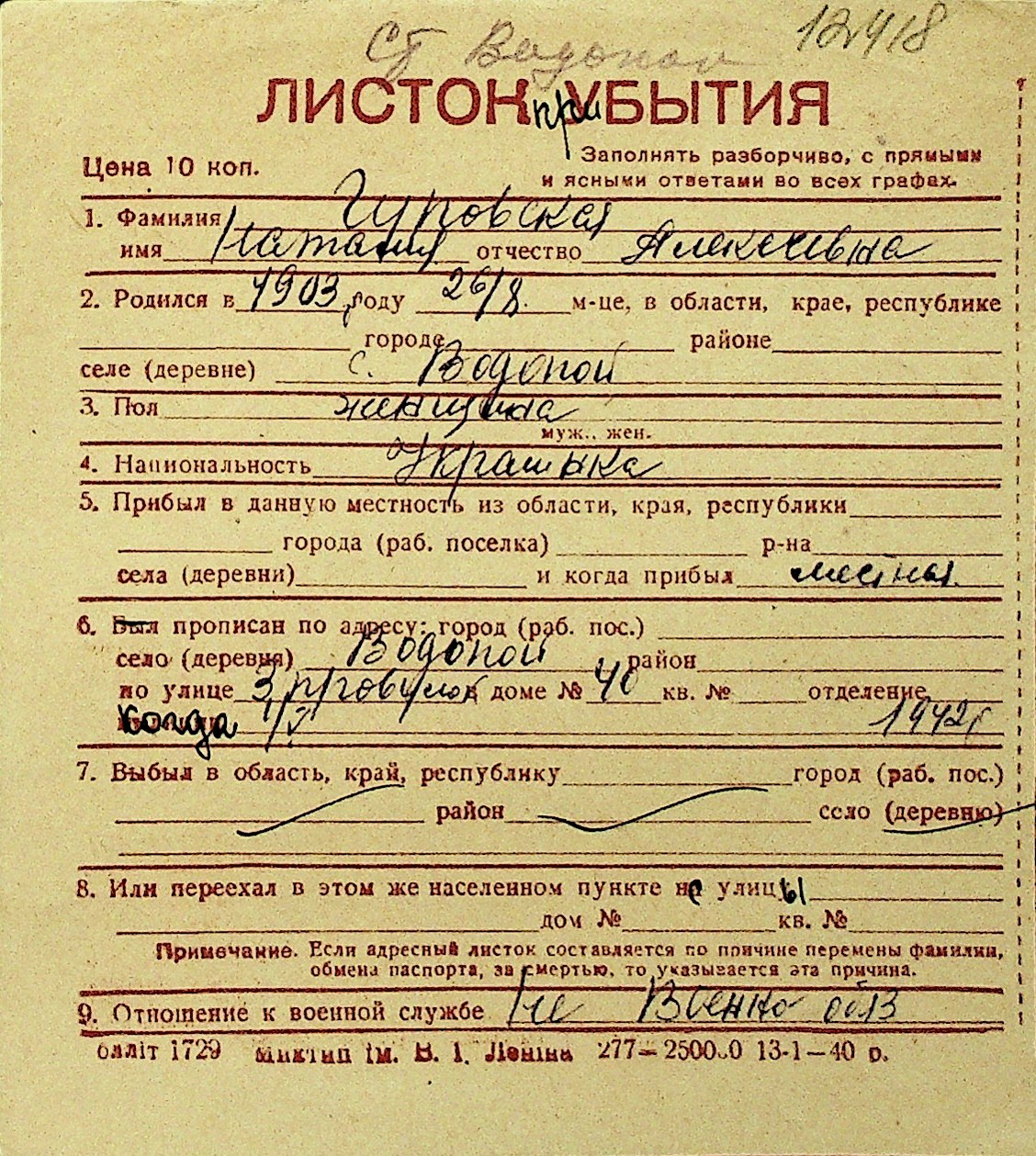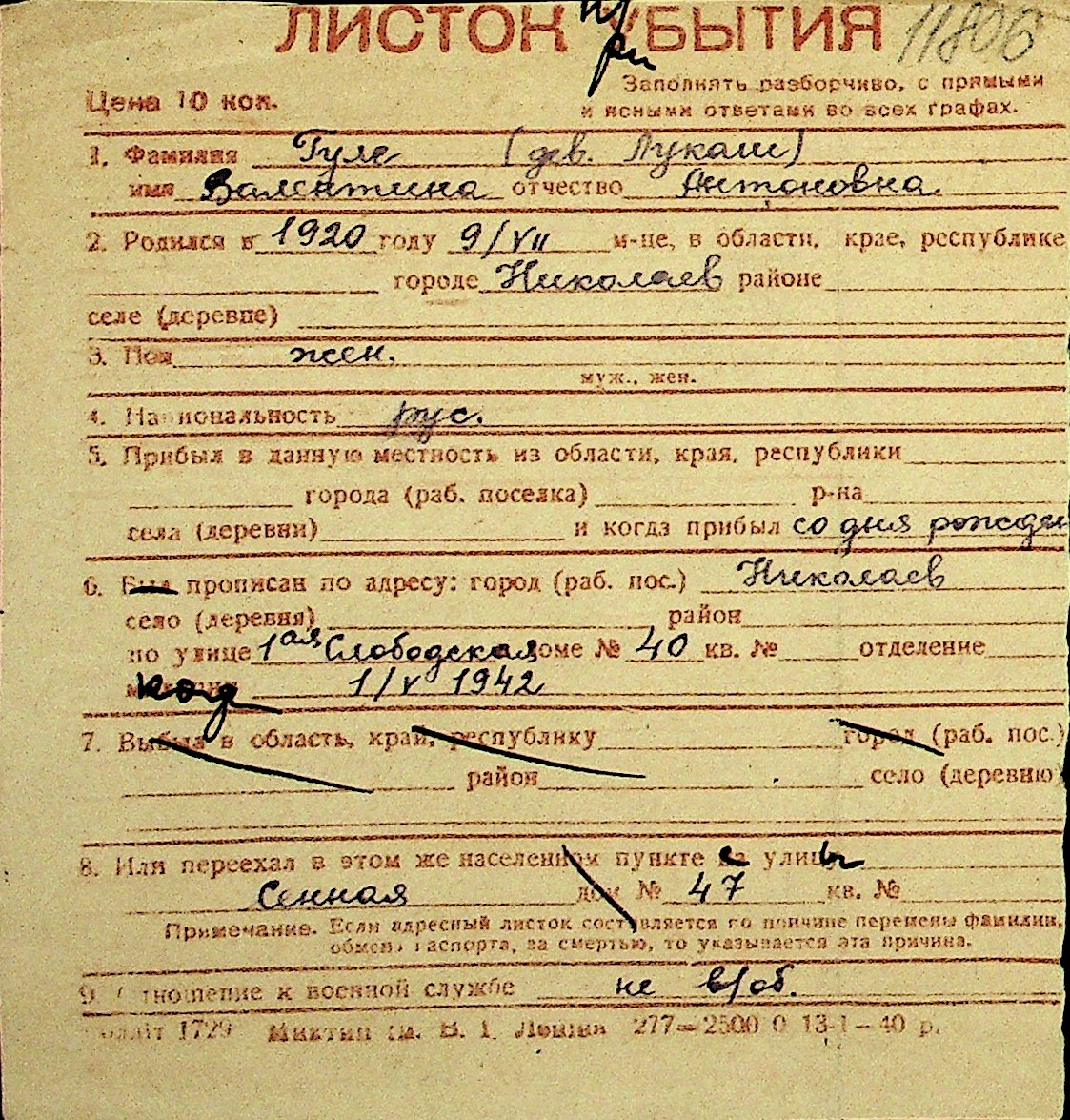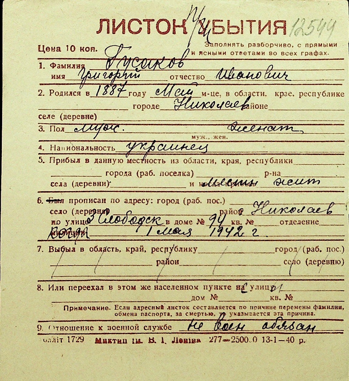 • • Перелік карток до фонду № Н-1016