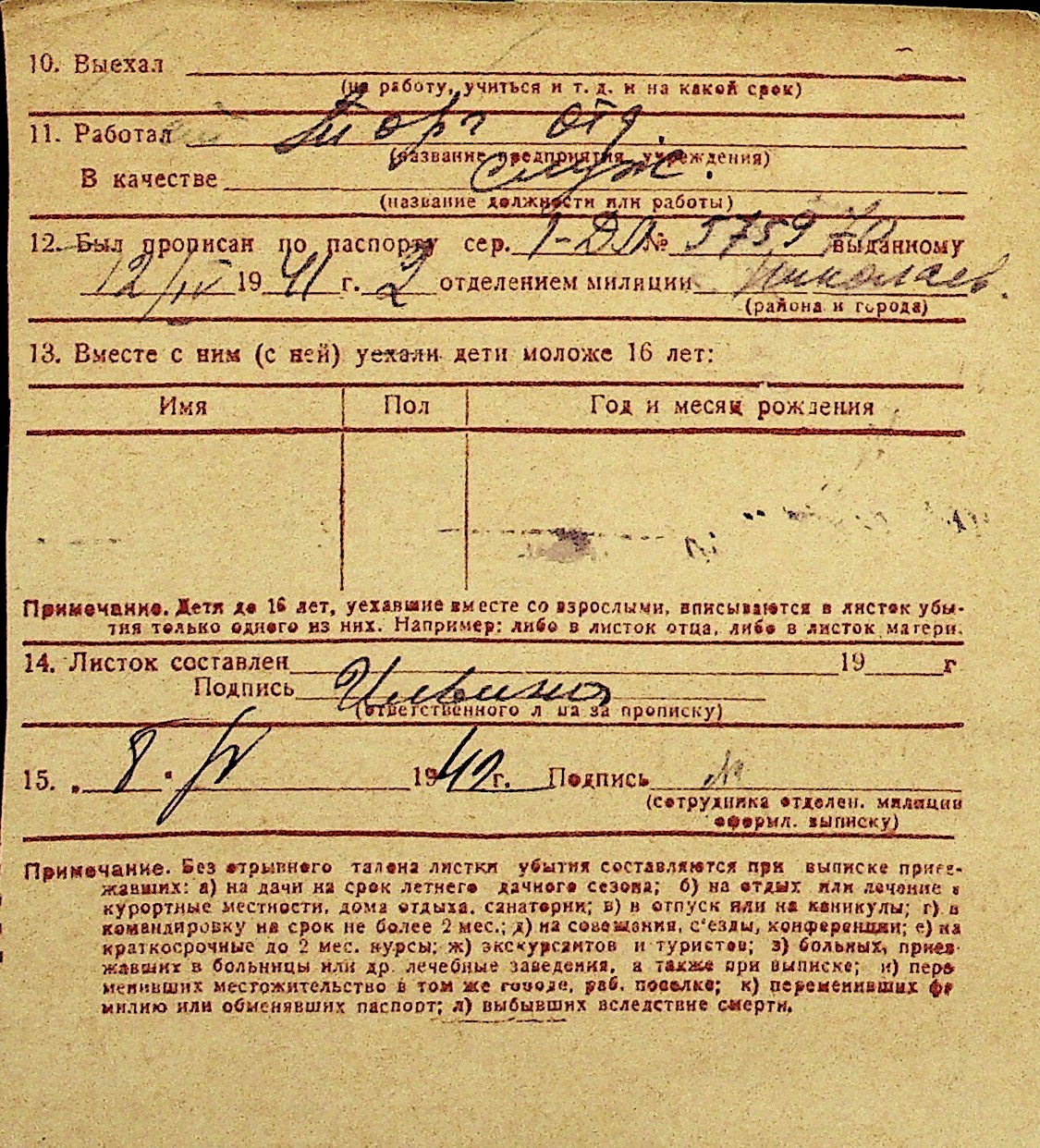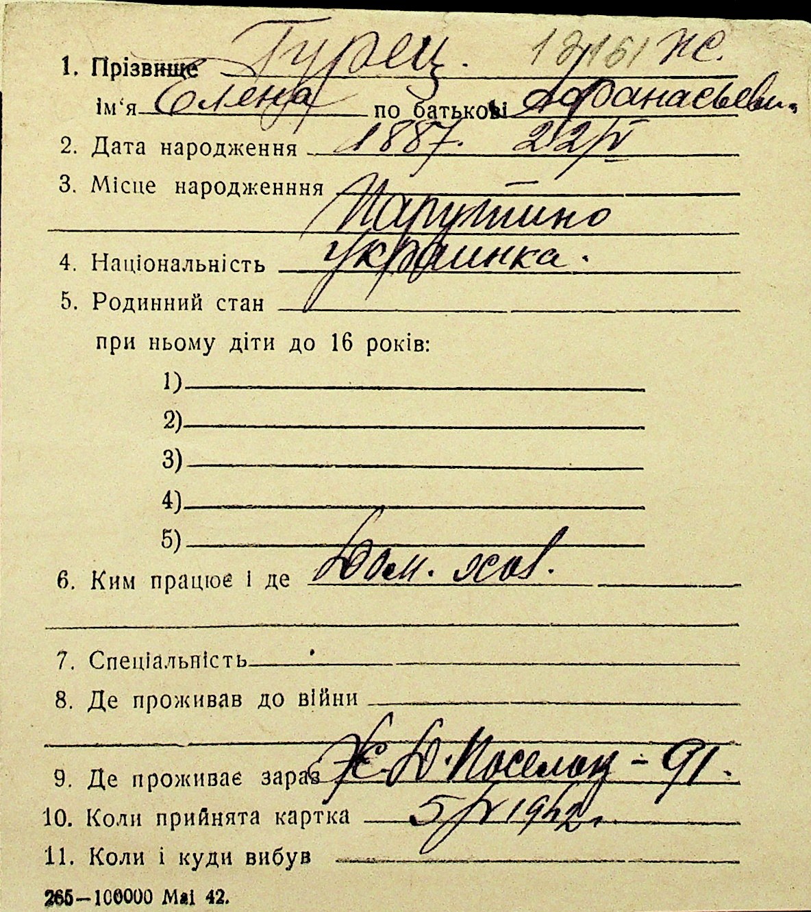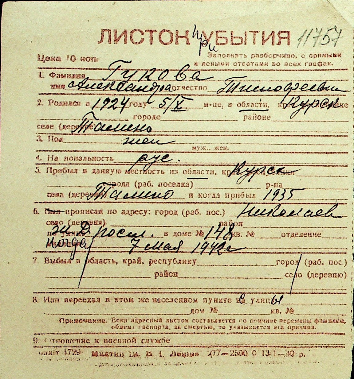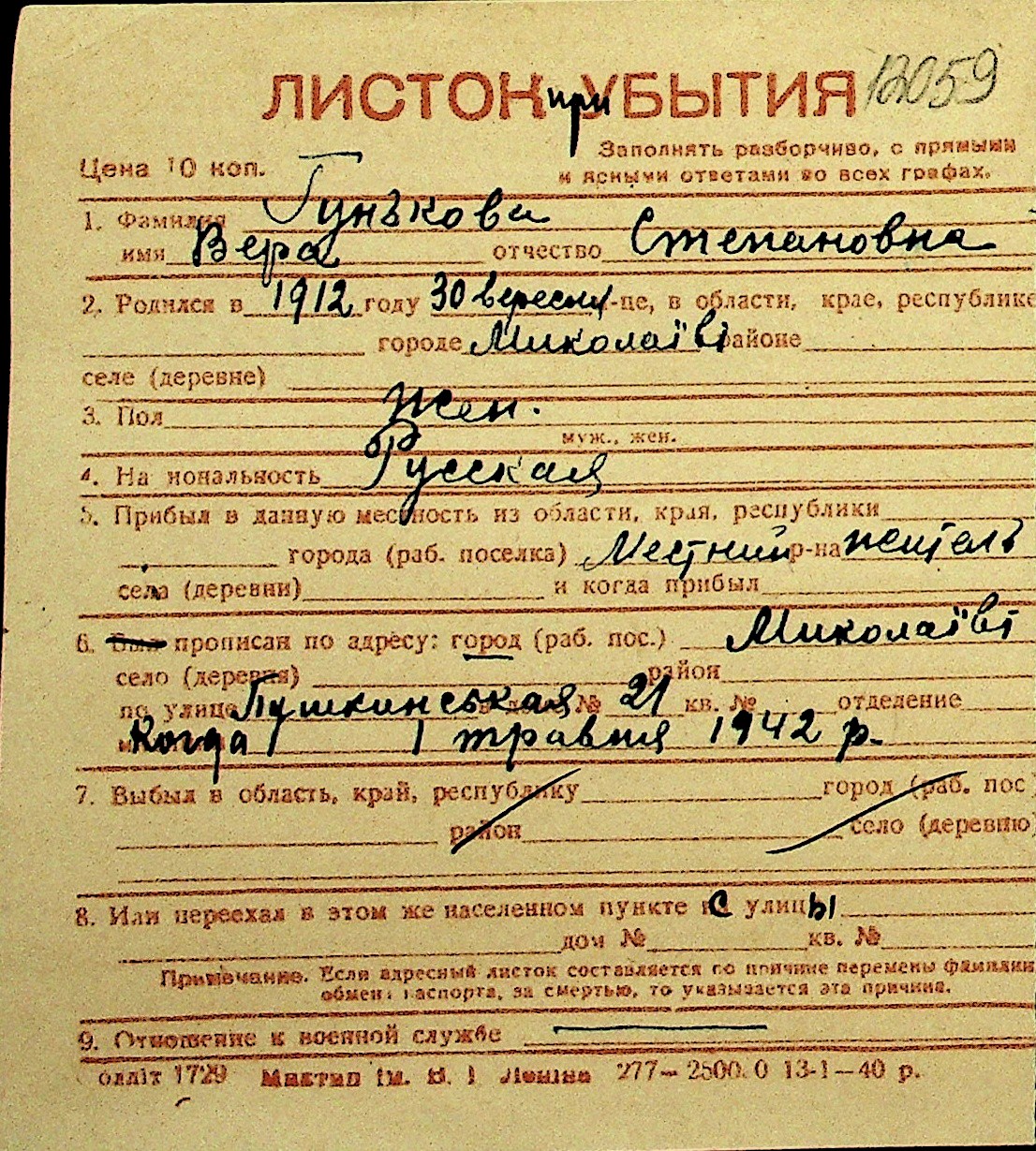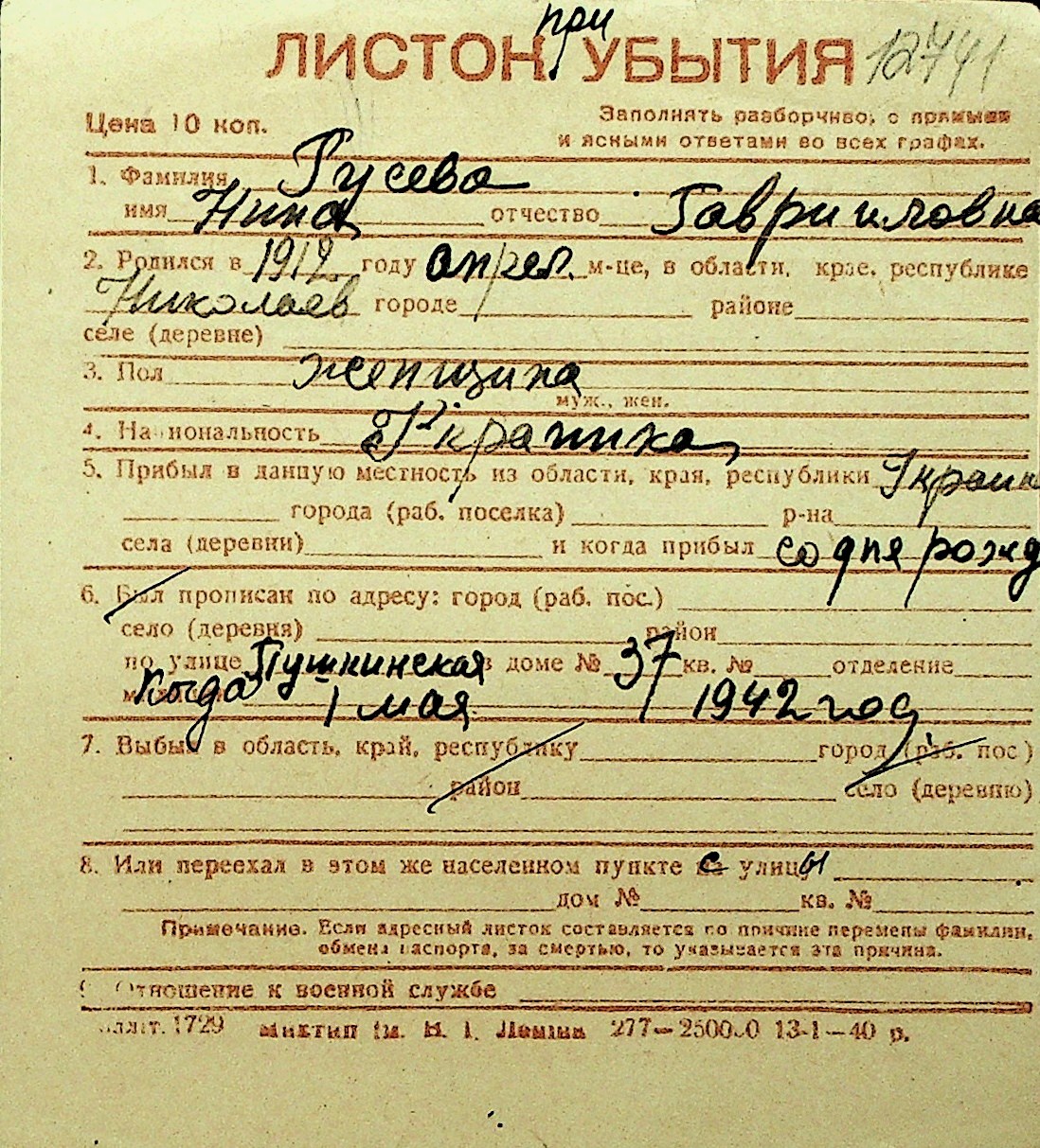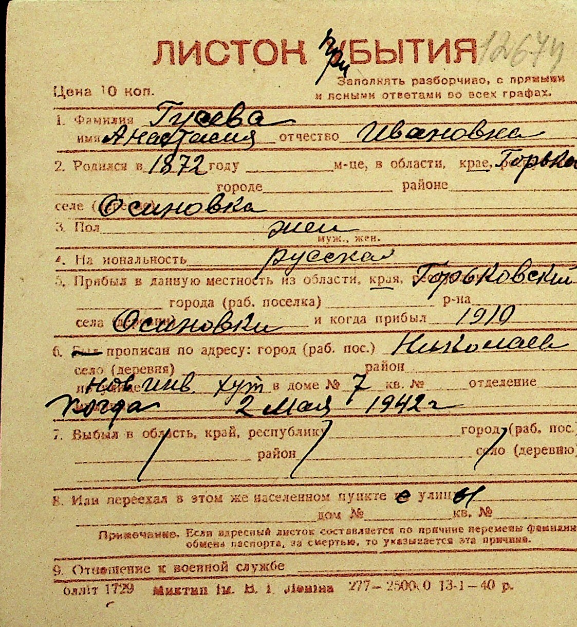 • • Перелік карток до фонду № Н-1016