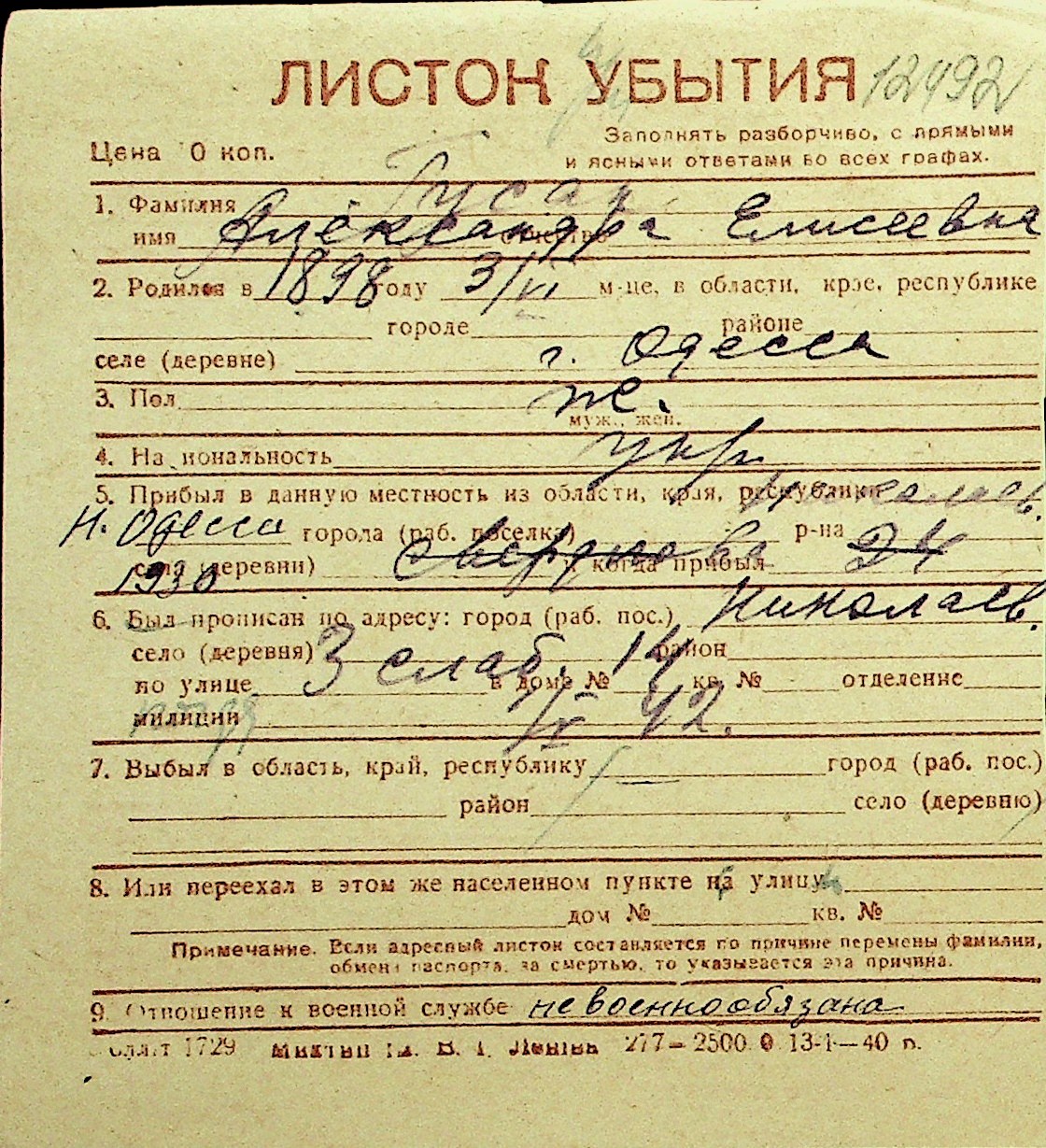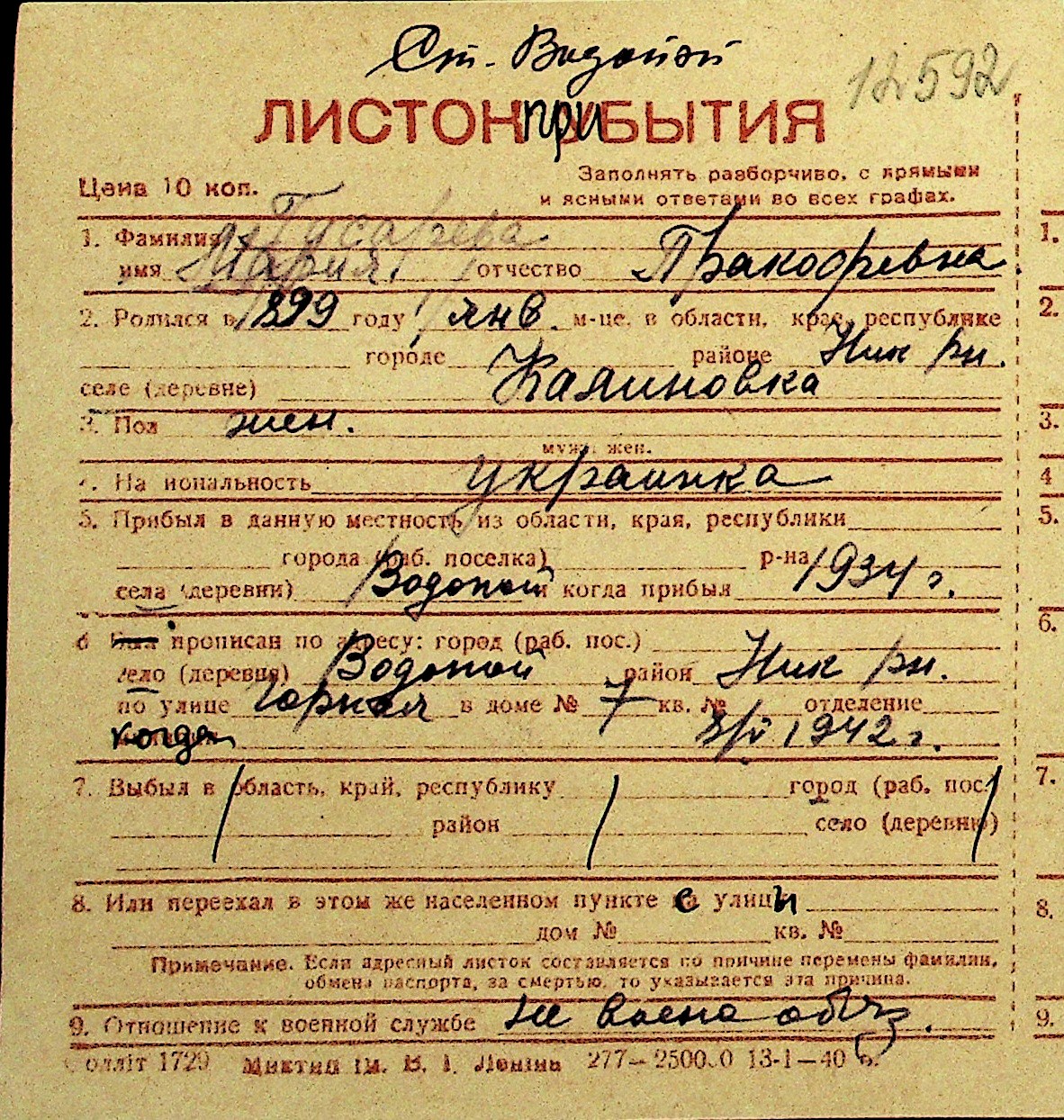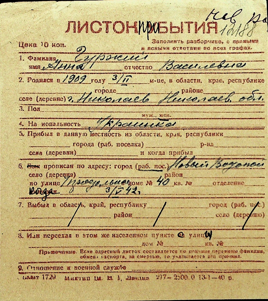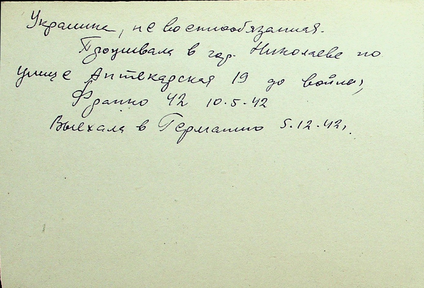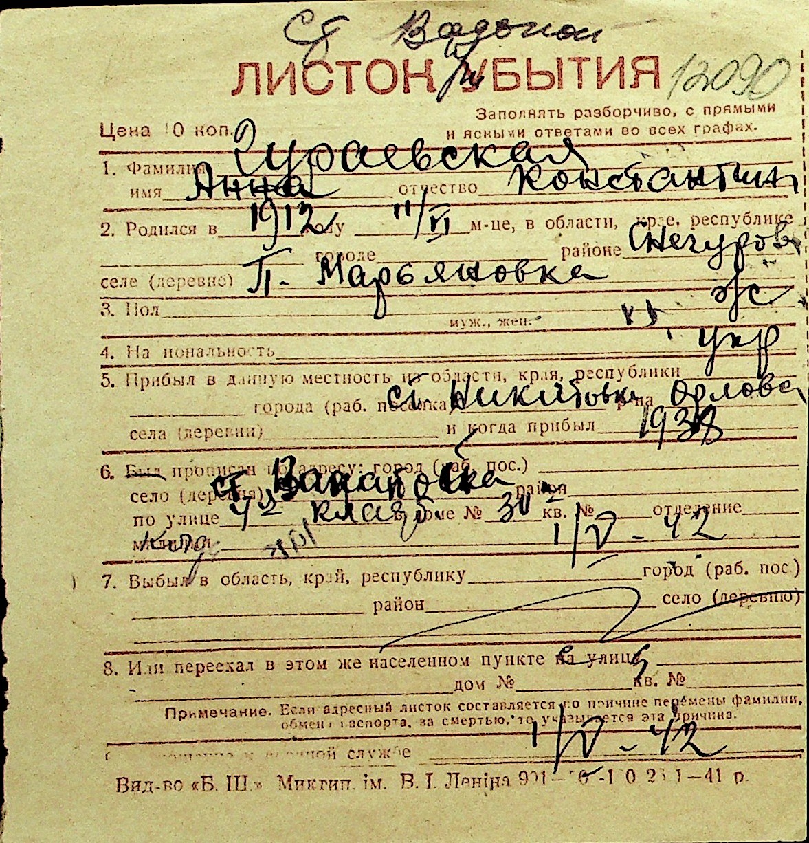• • Перелік карток до фонду № Н-1016