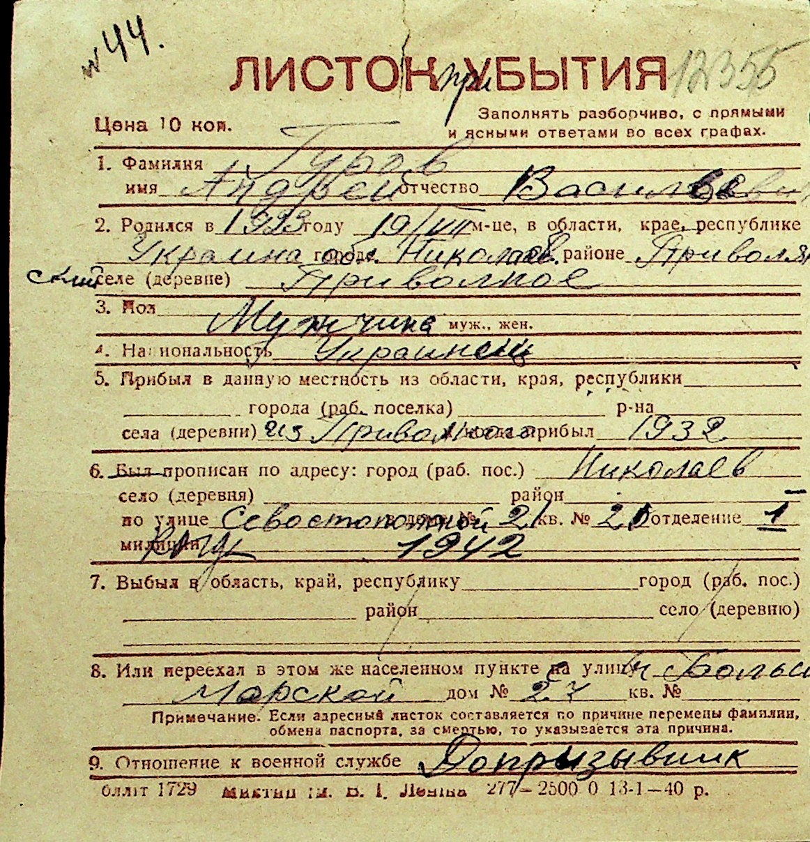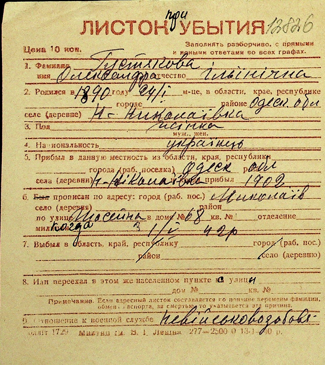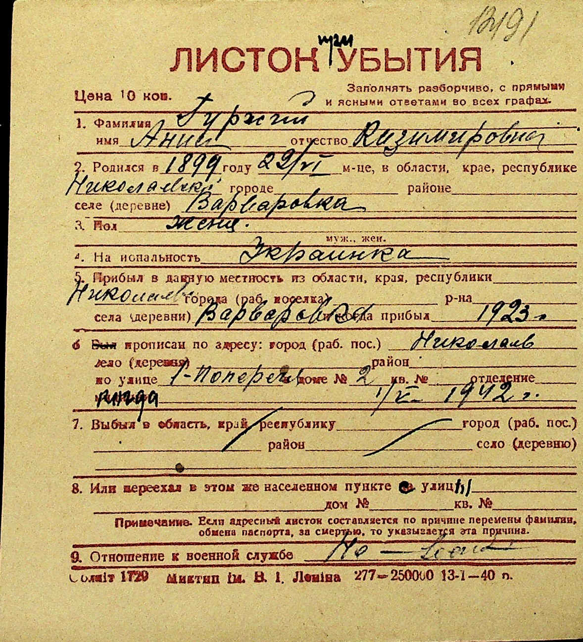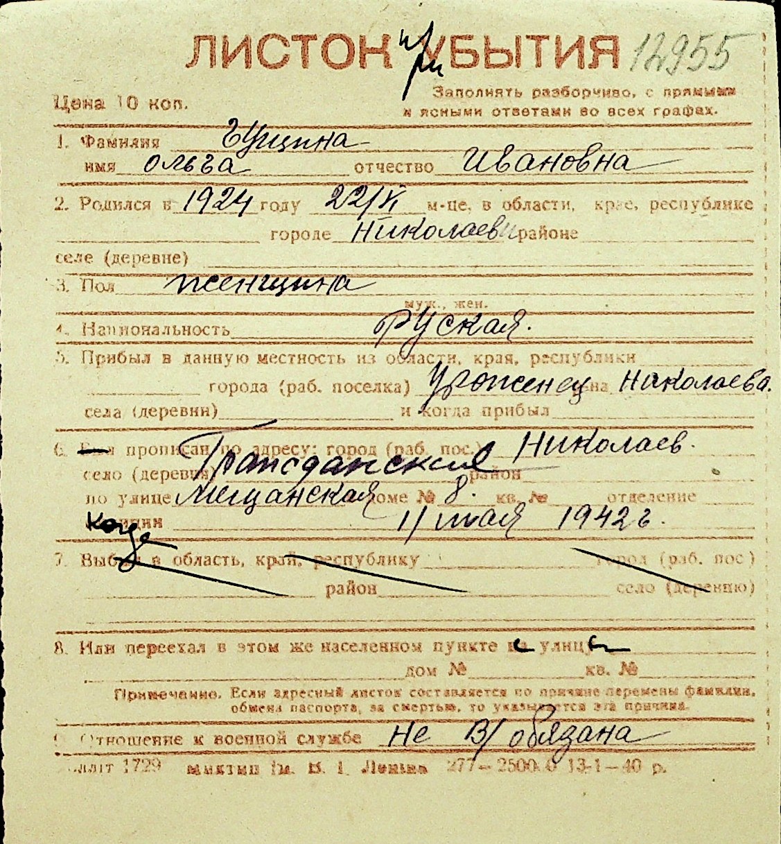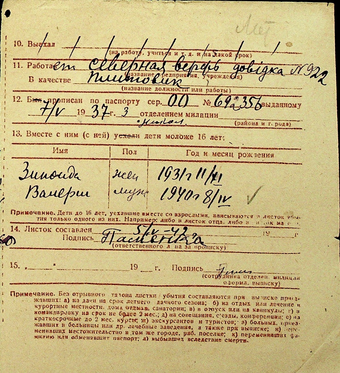 • • Перелік карток до фонду № Н-1016