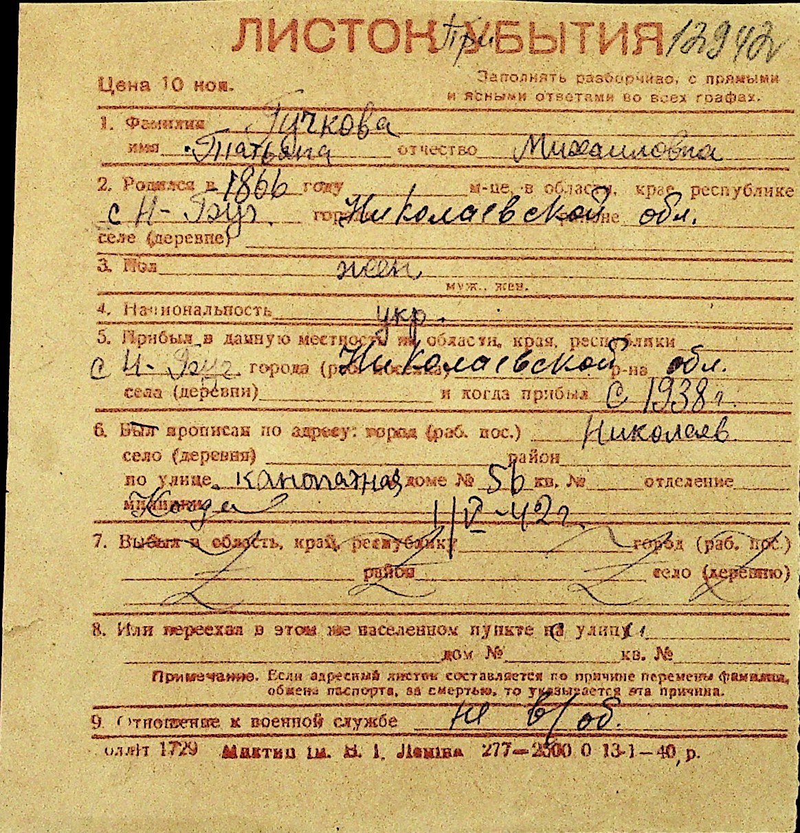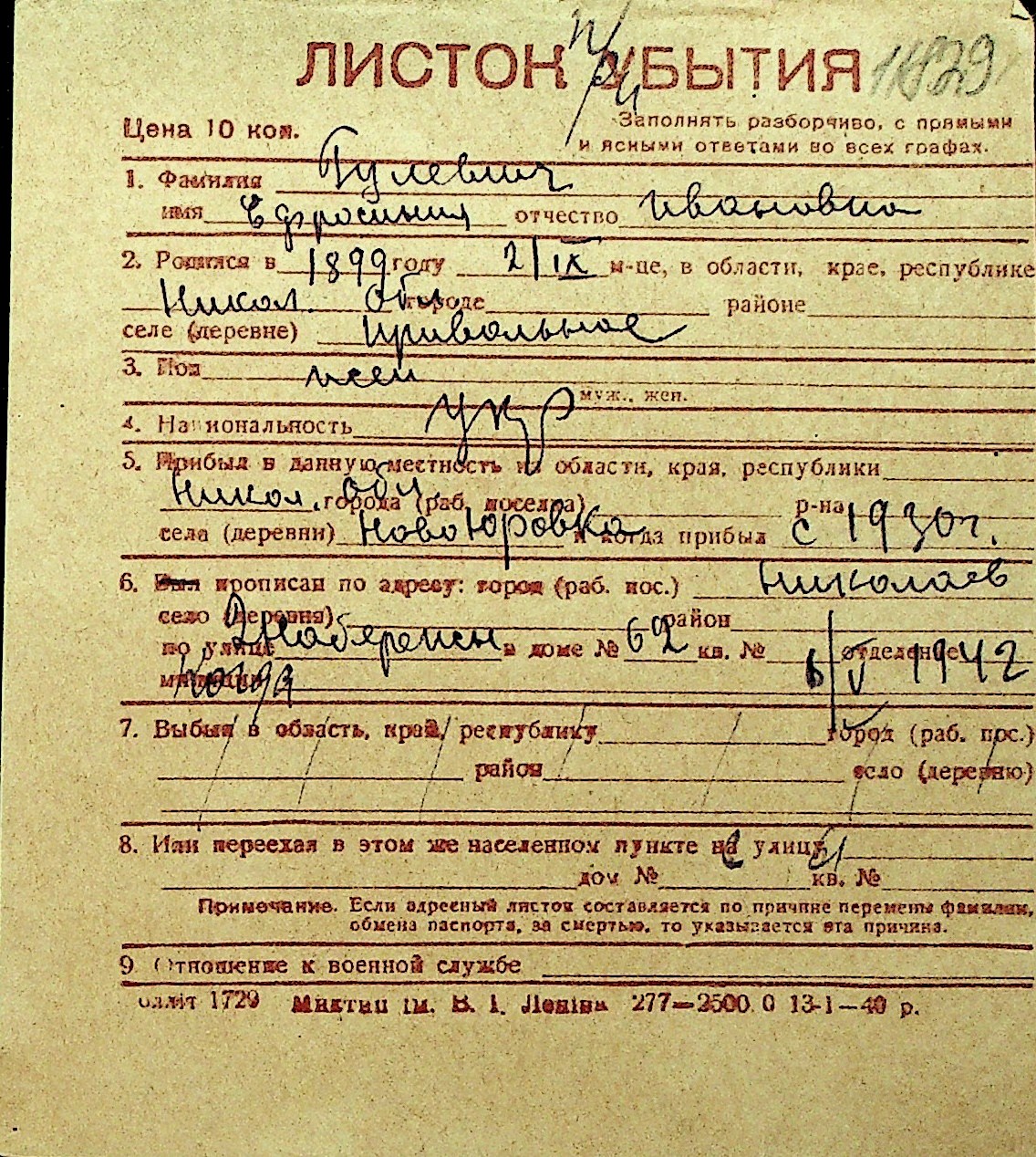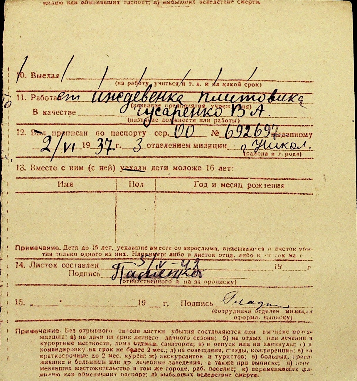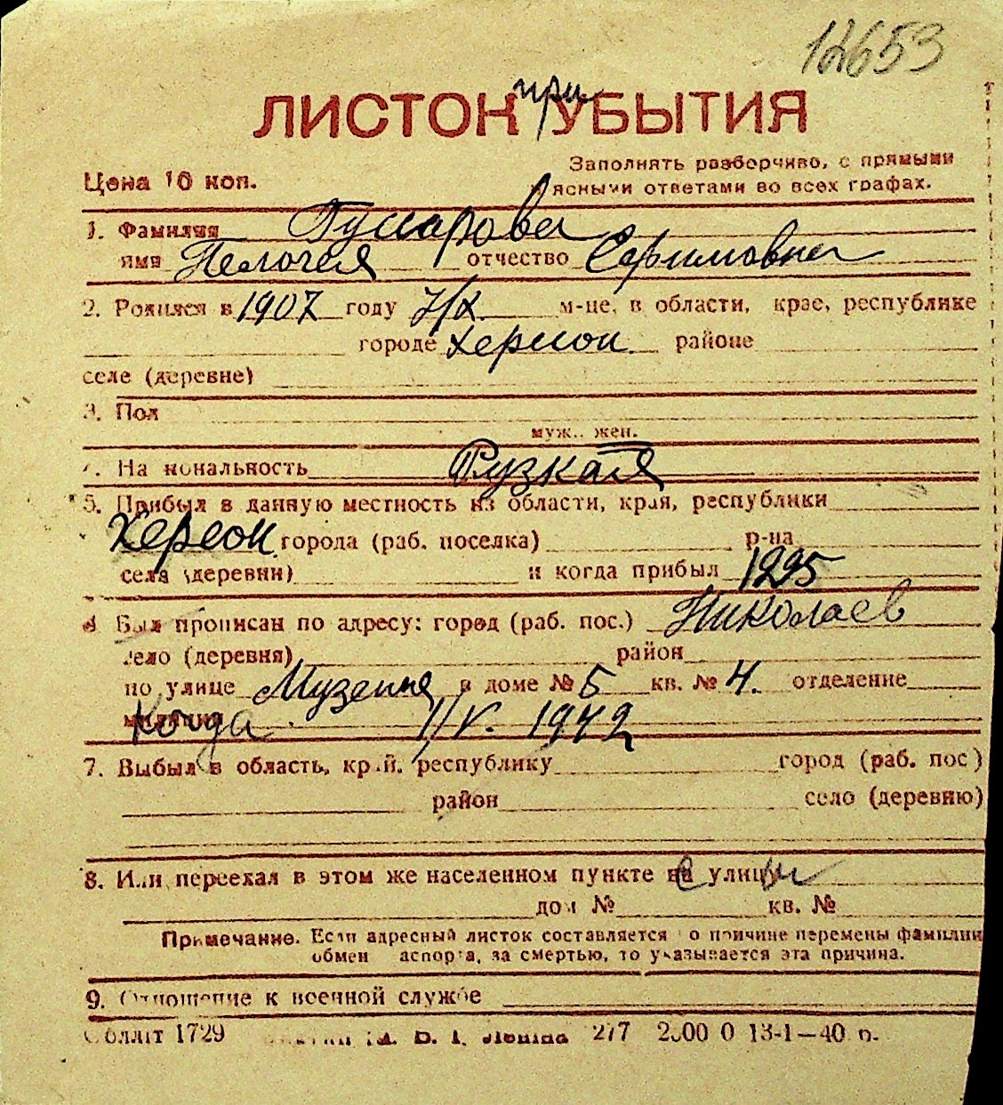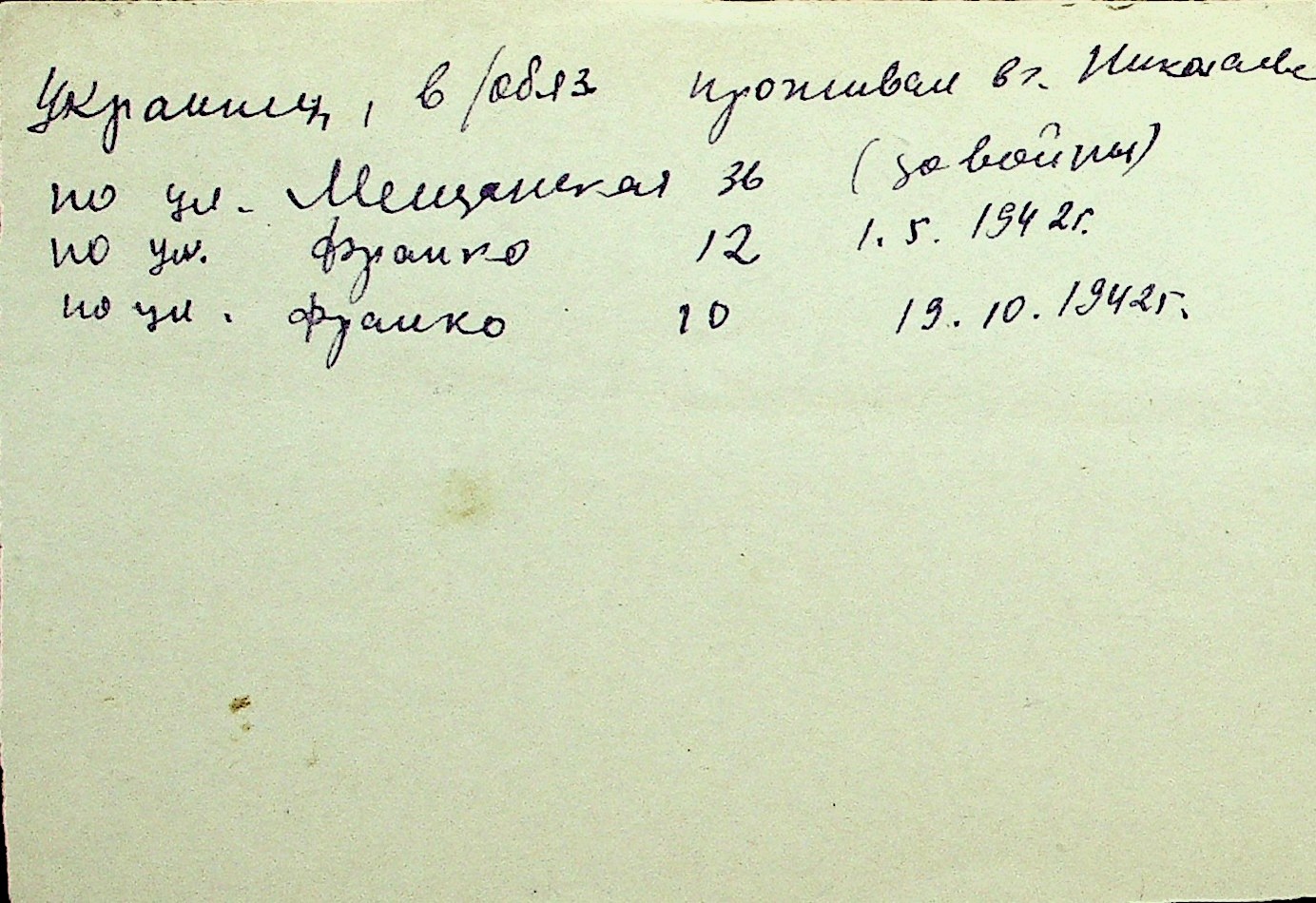 • • Перелік карток до фонду № Н-1016