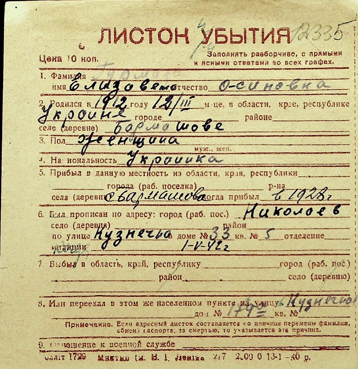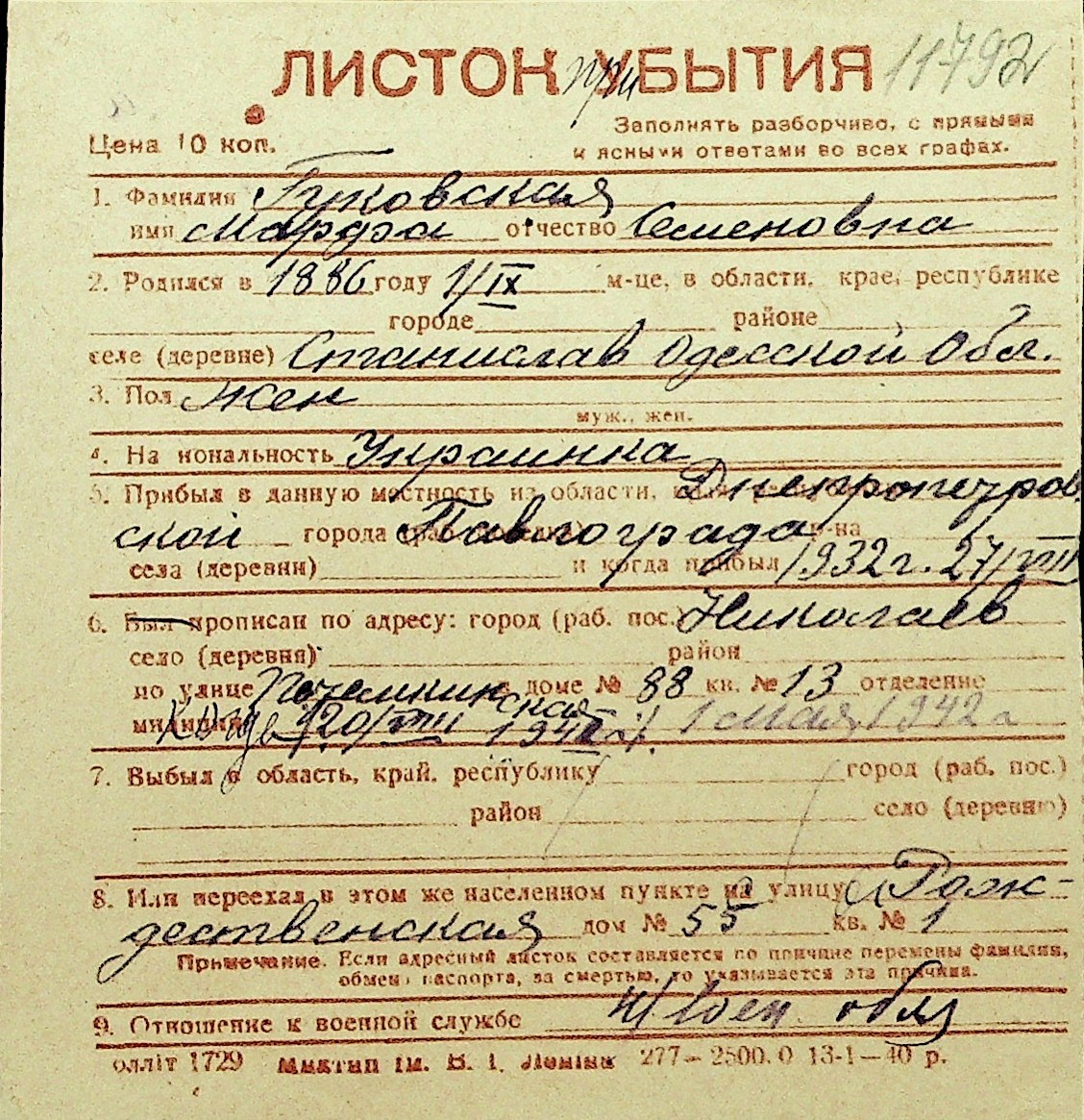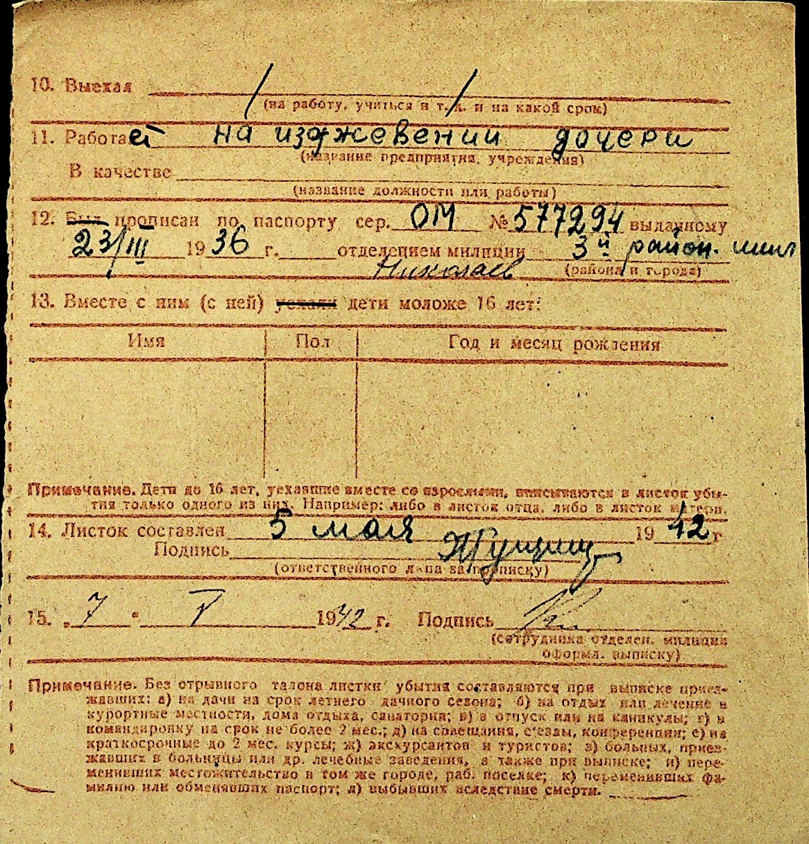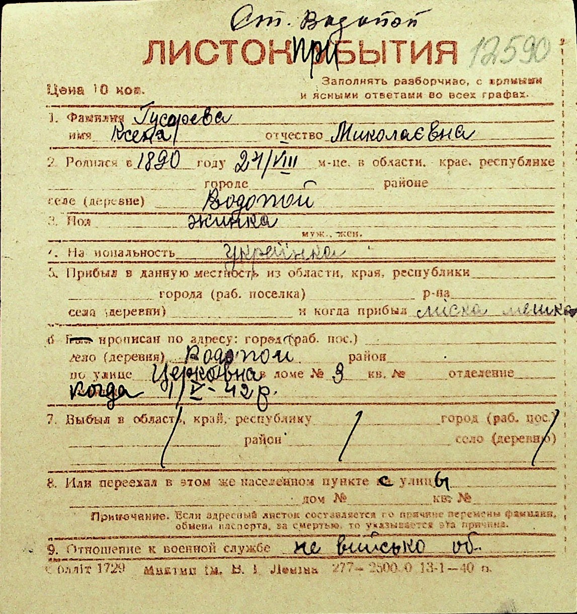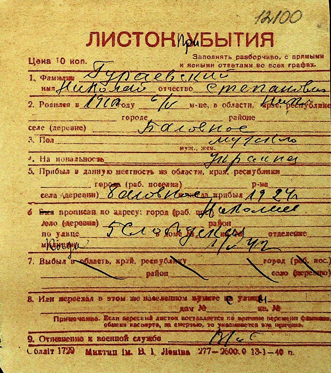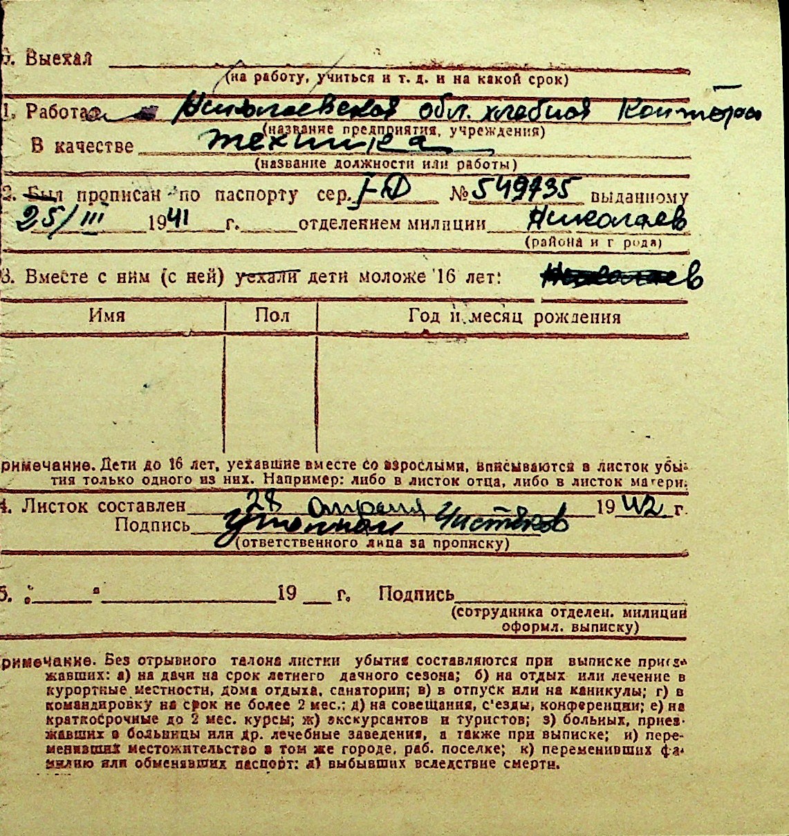 • • Перелік карток до фонду № Н-1016