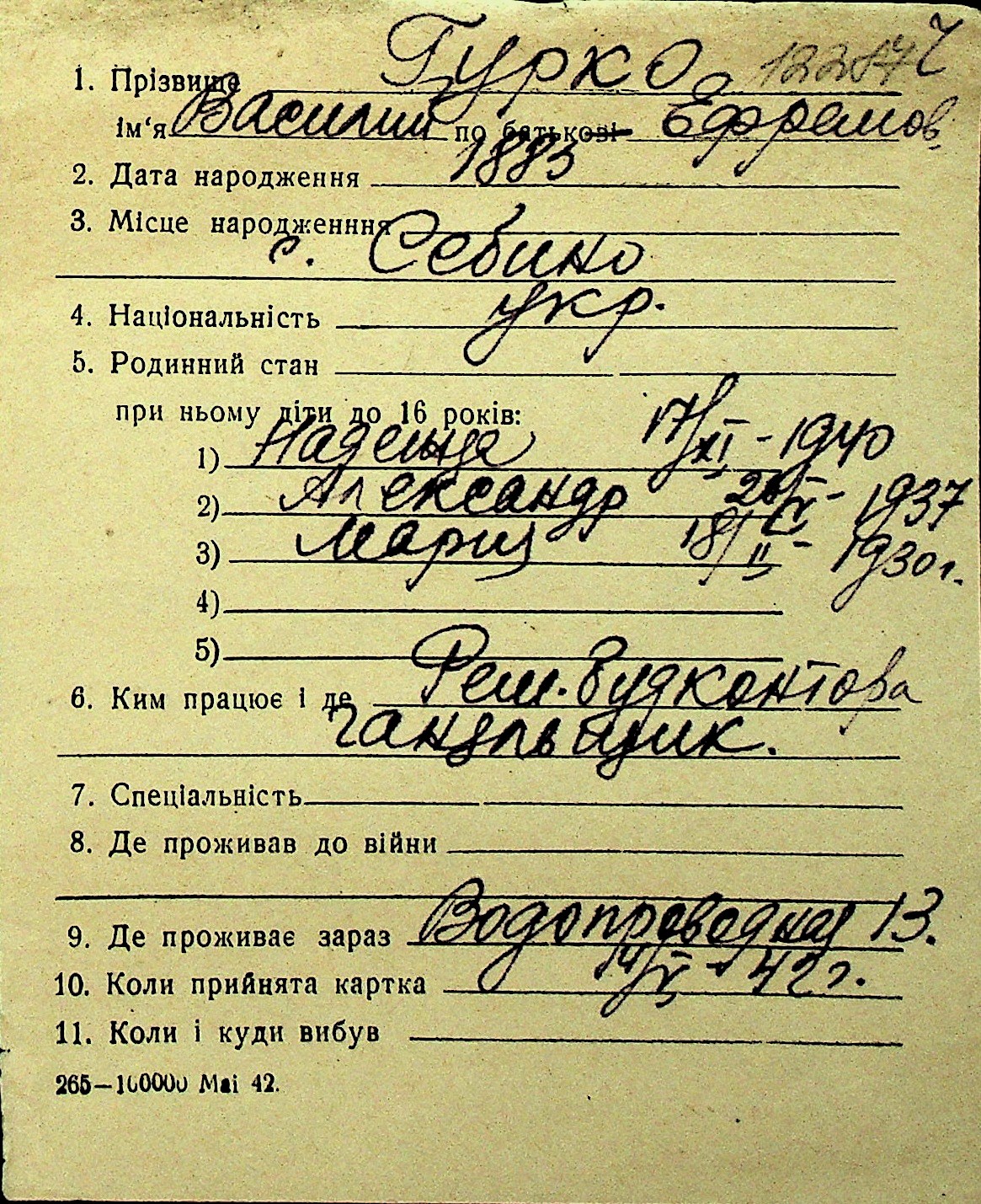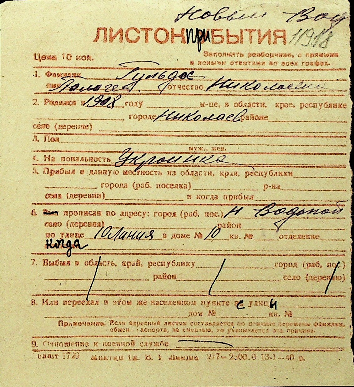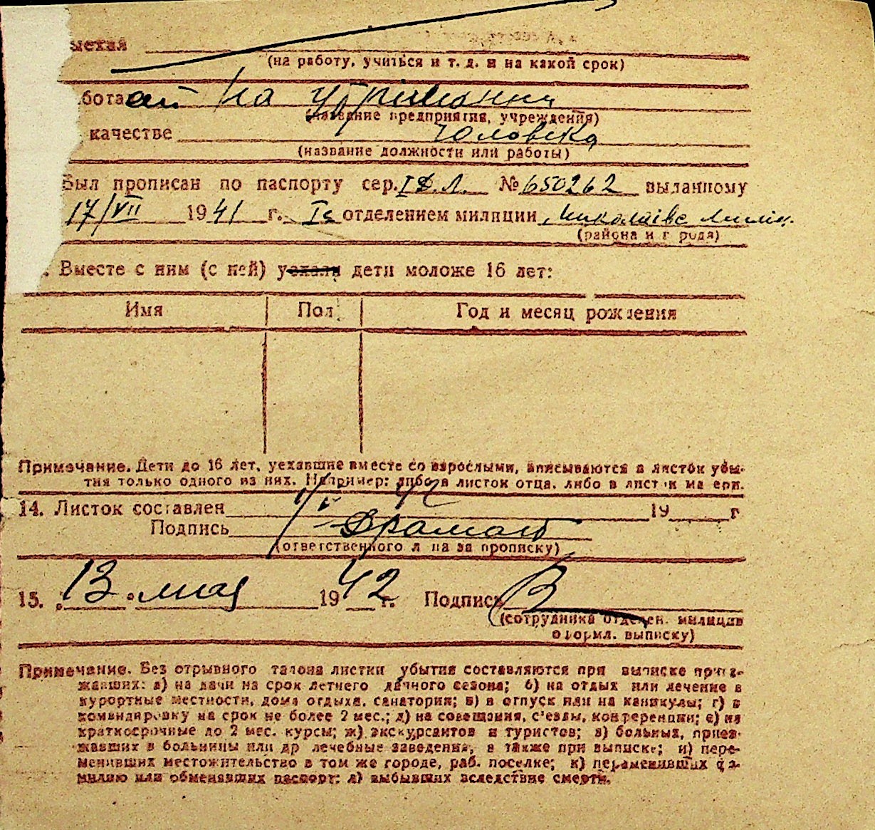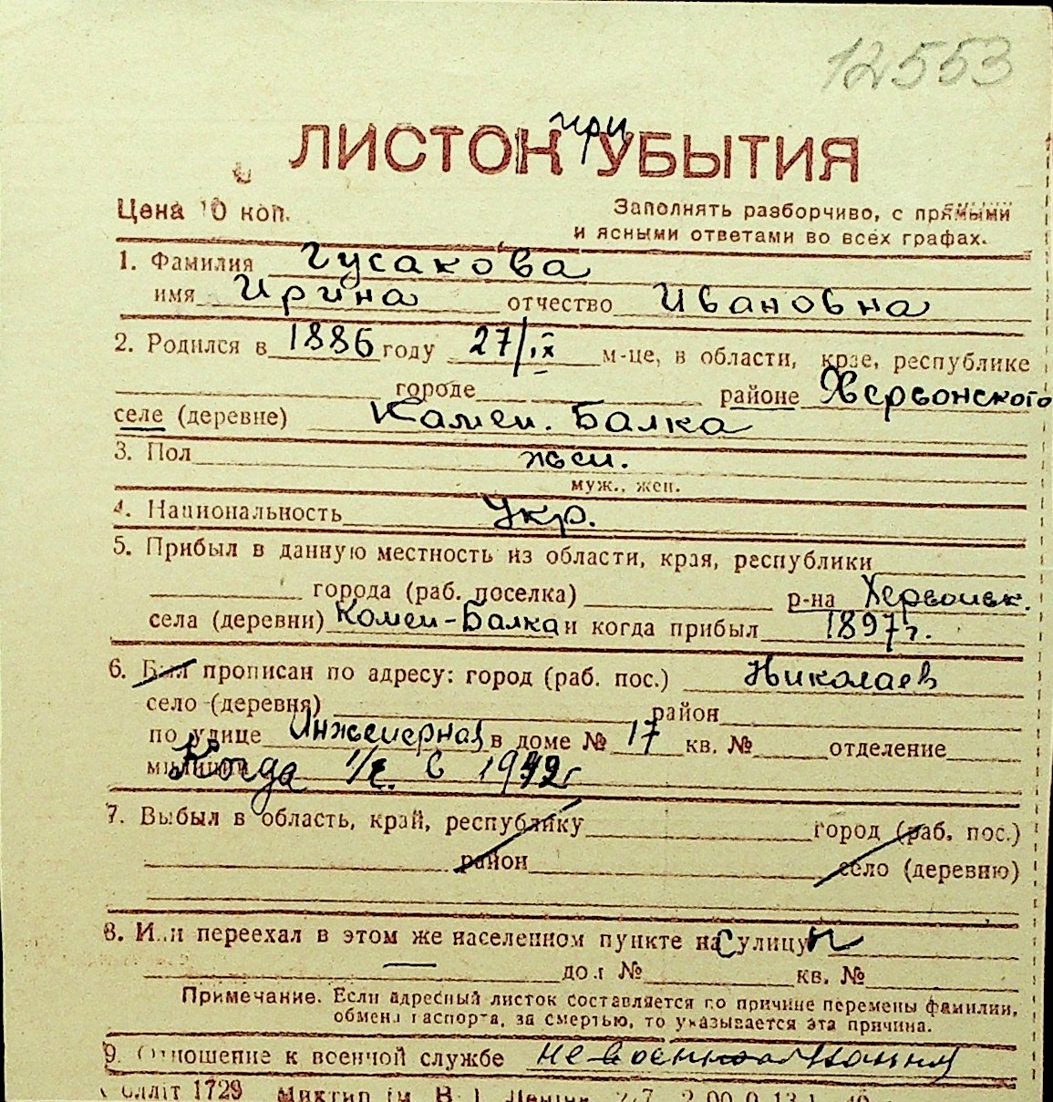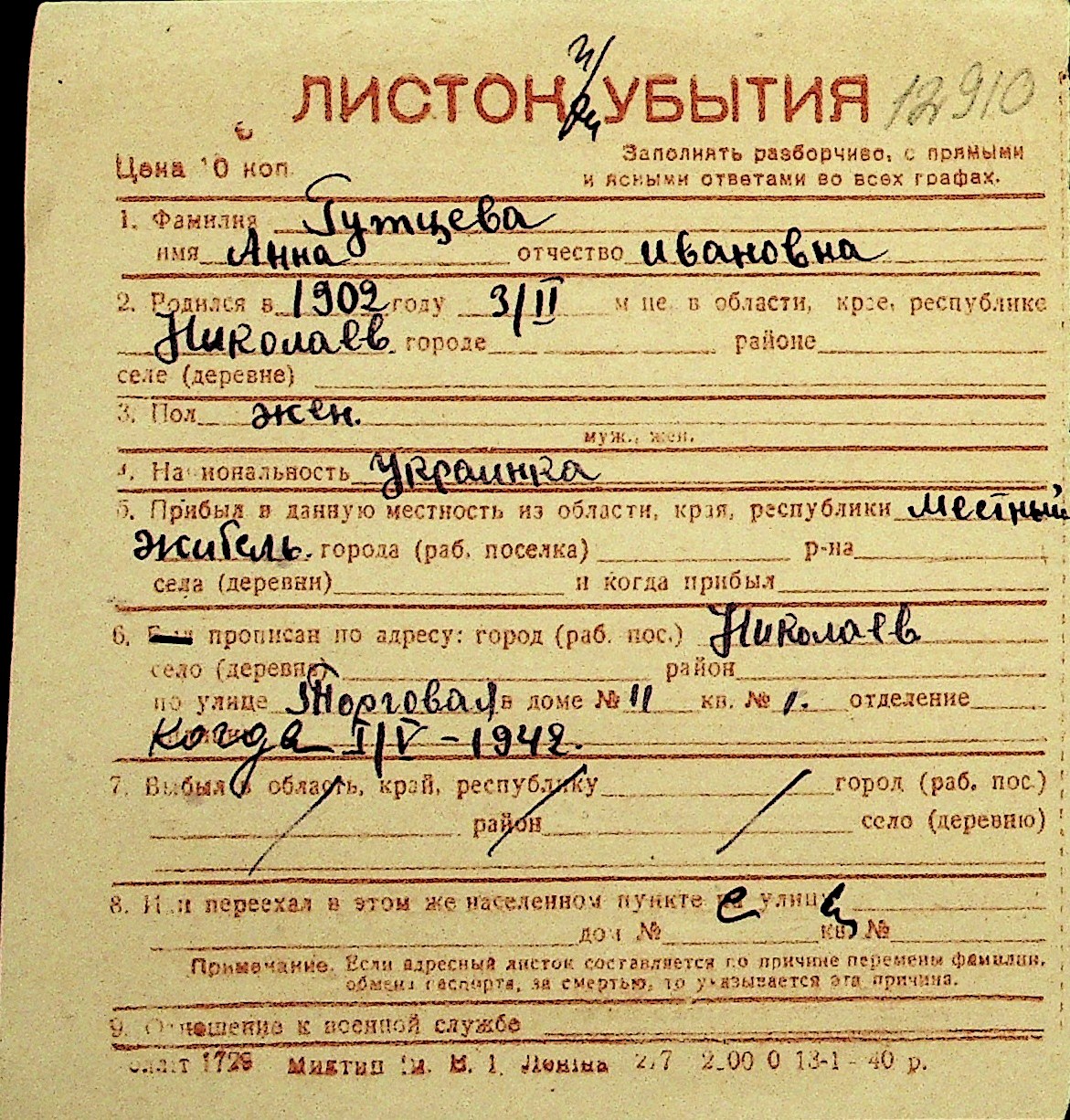 • • Перелік карток до фонду № Н-1016