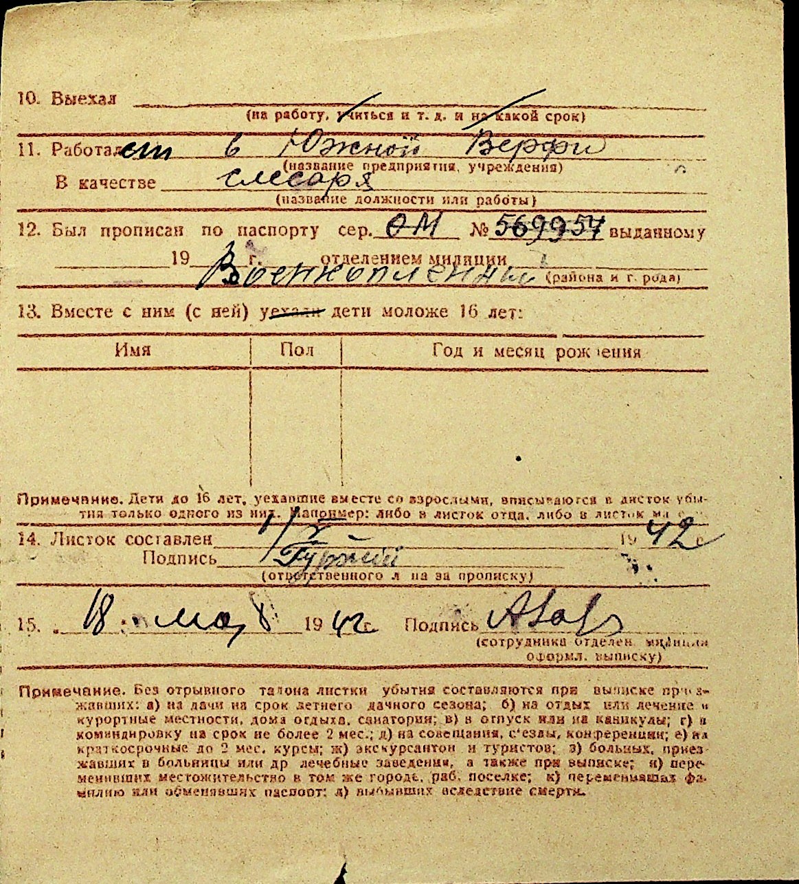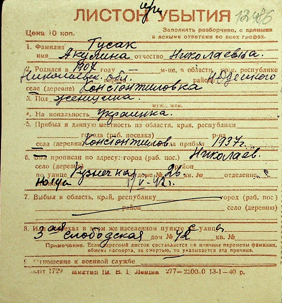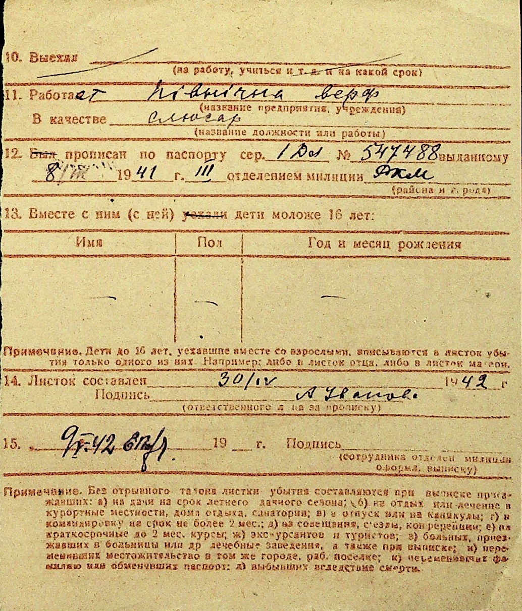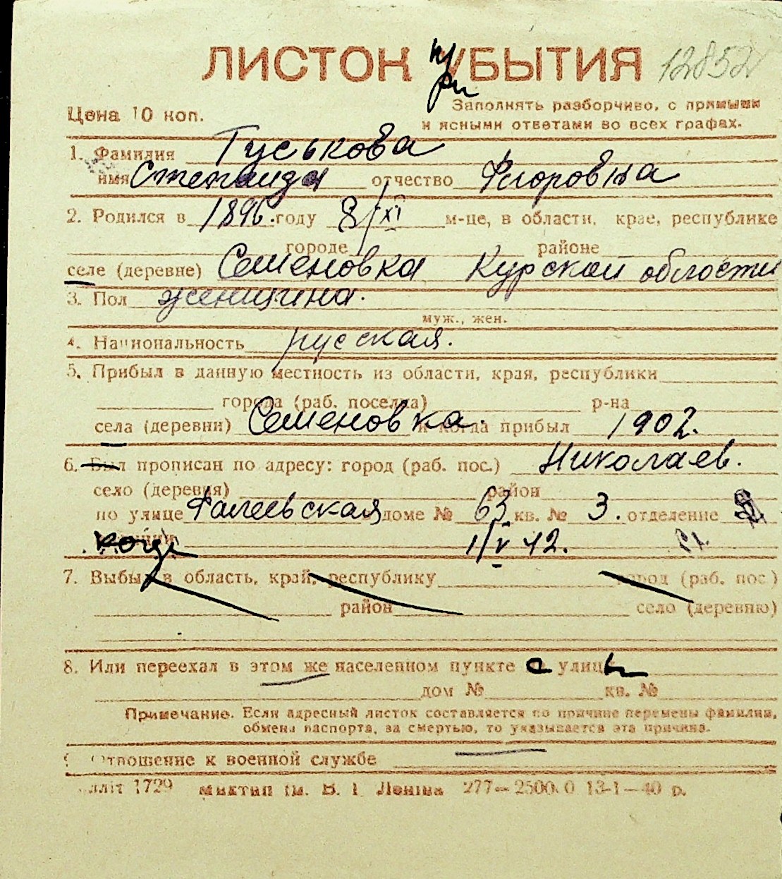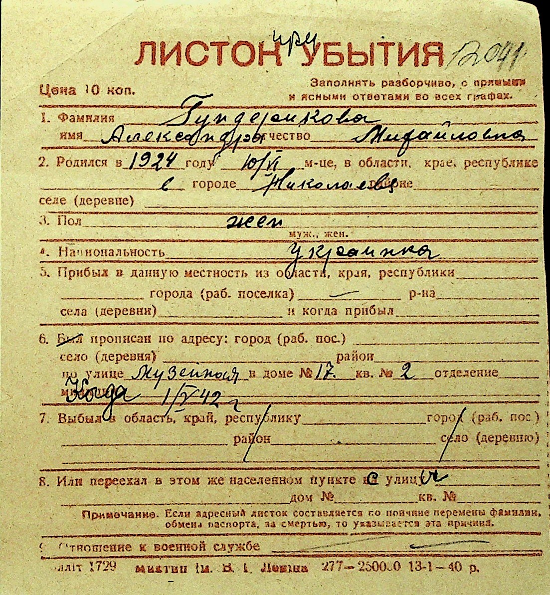 • • Перелік карток до фонду № Н-1016