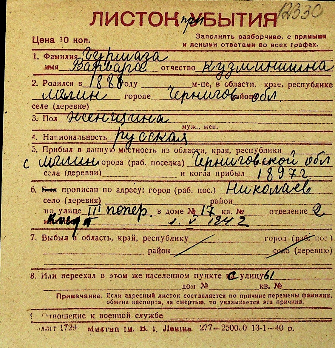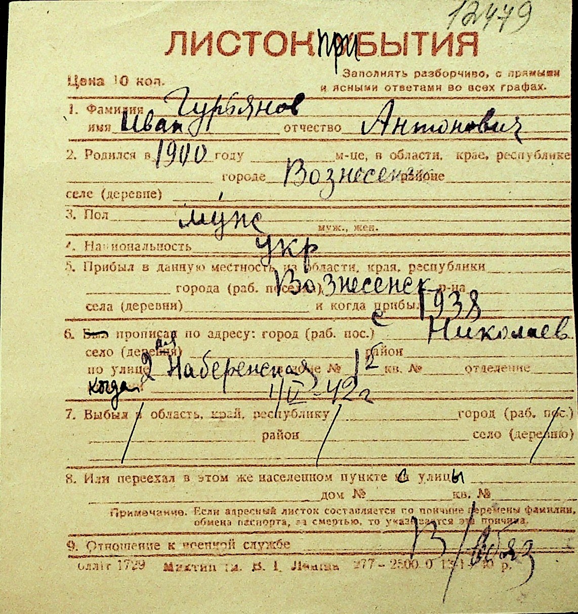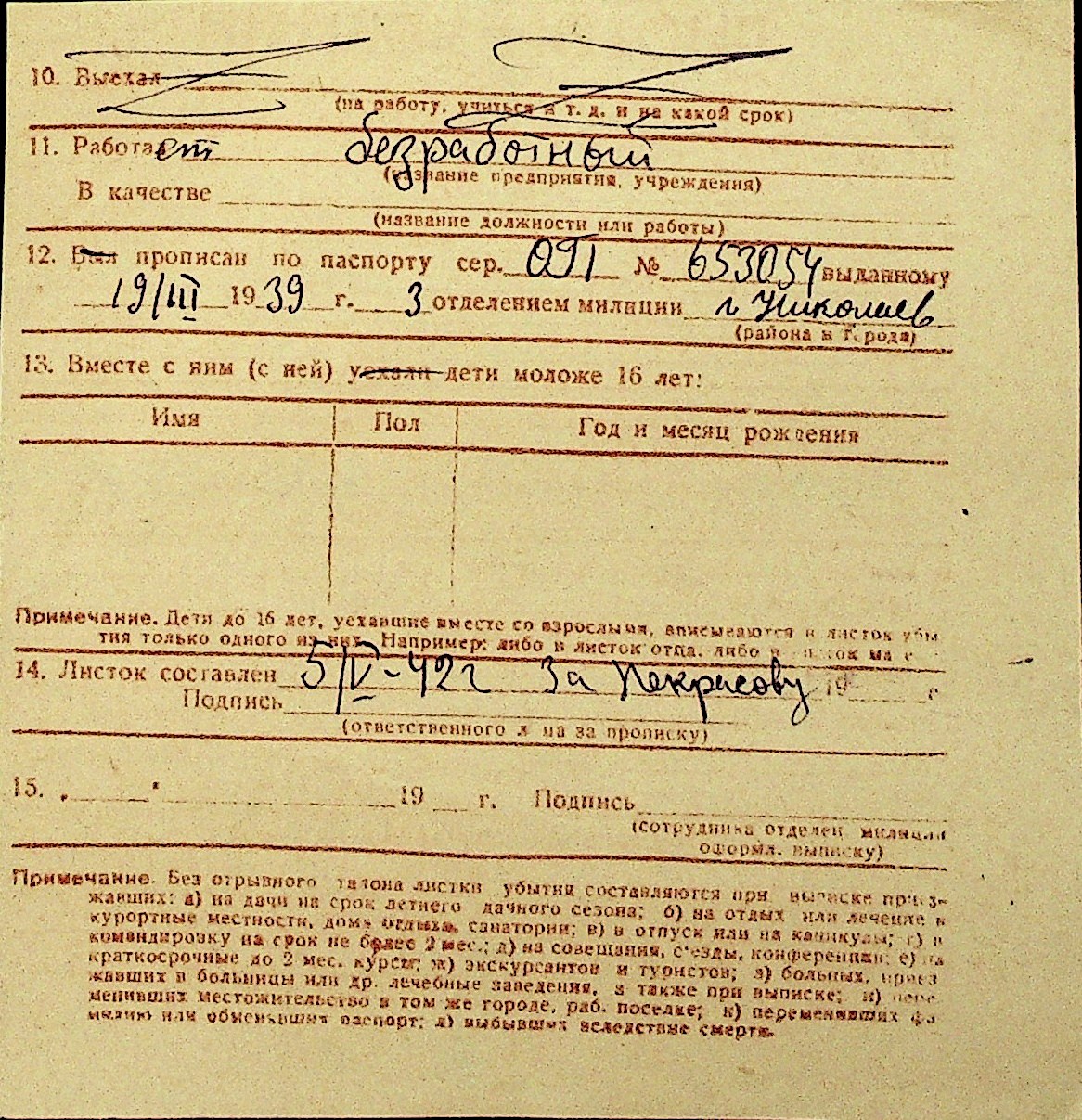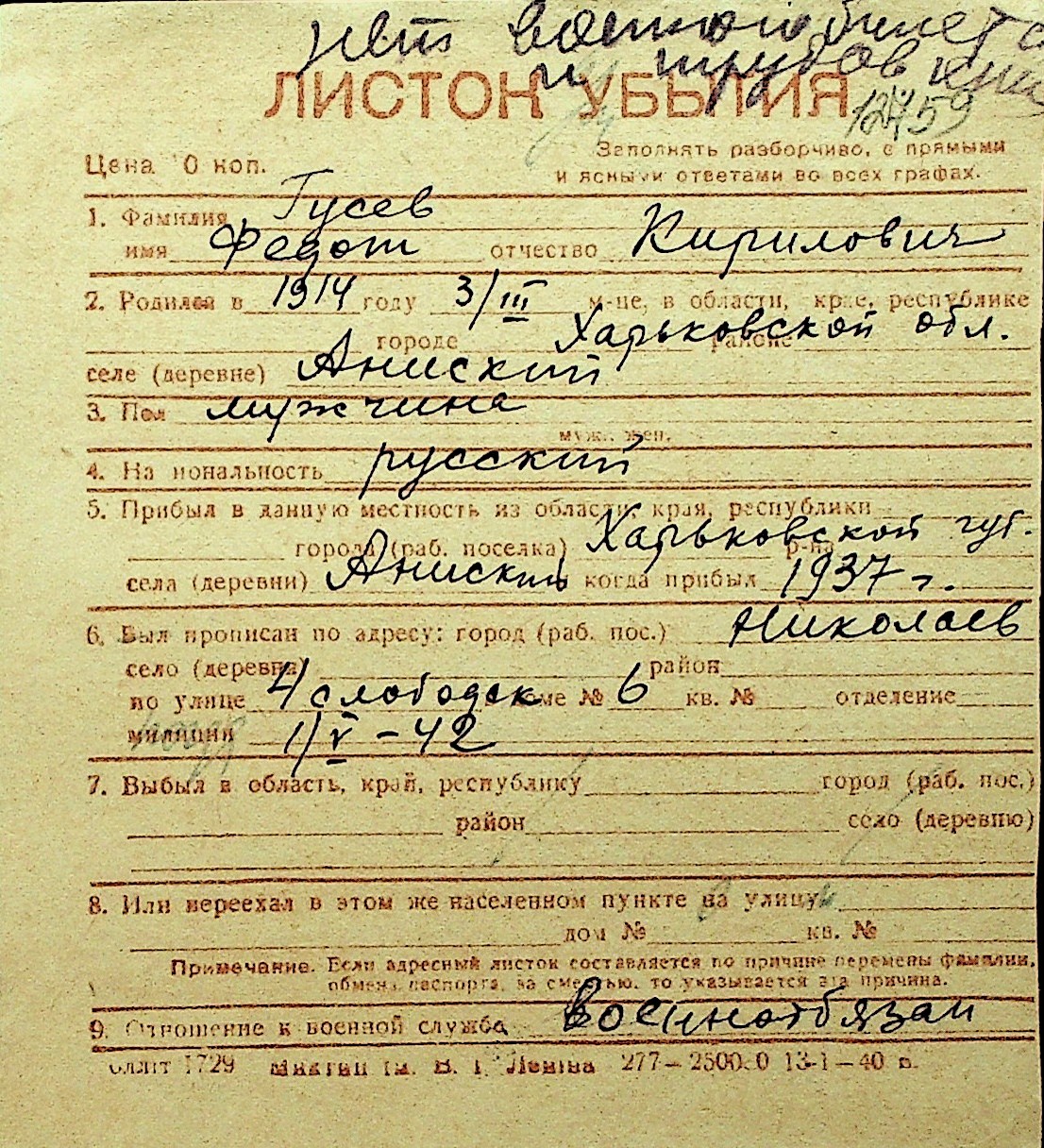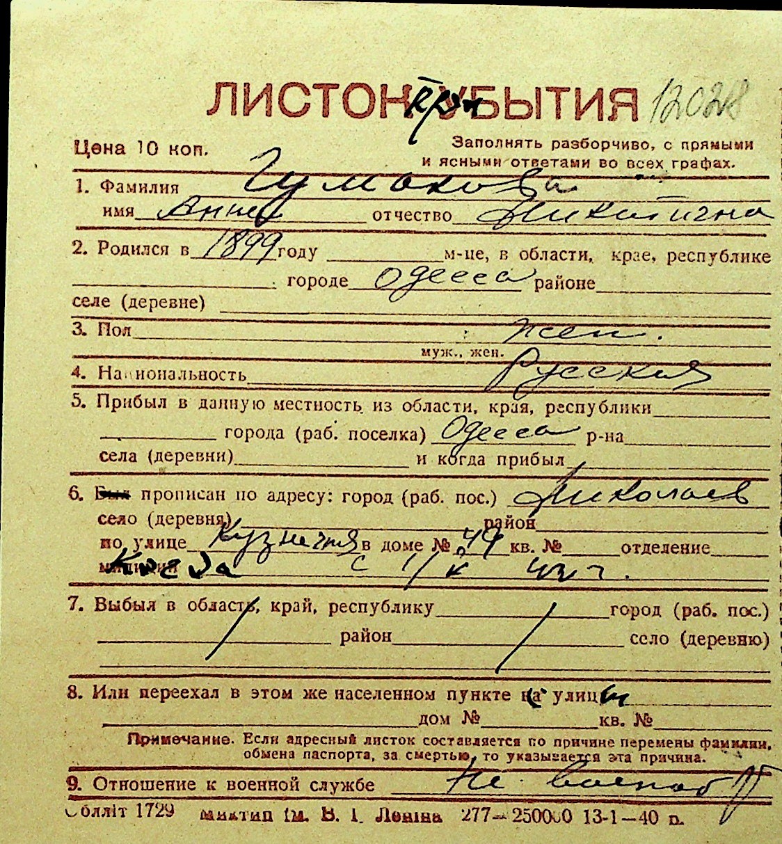 • • Перелік карток до фонду № Н-1016