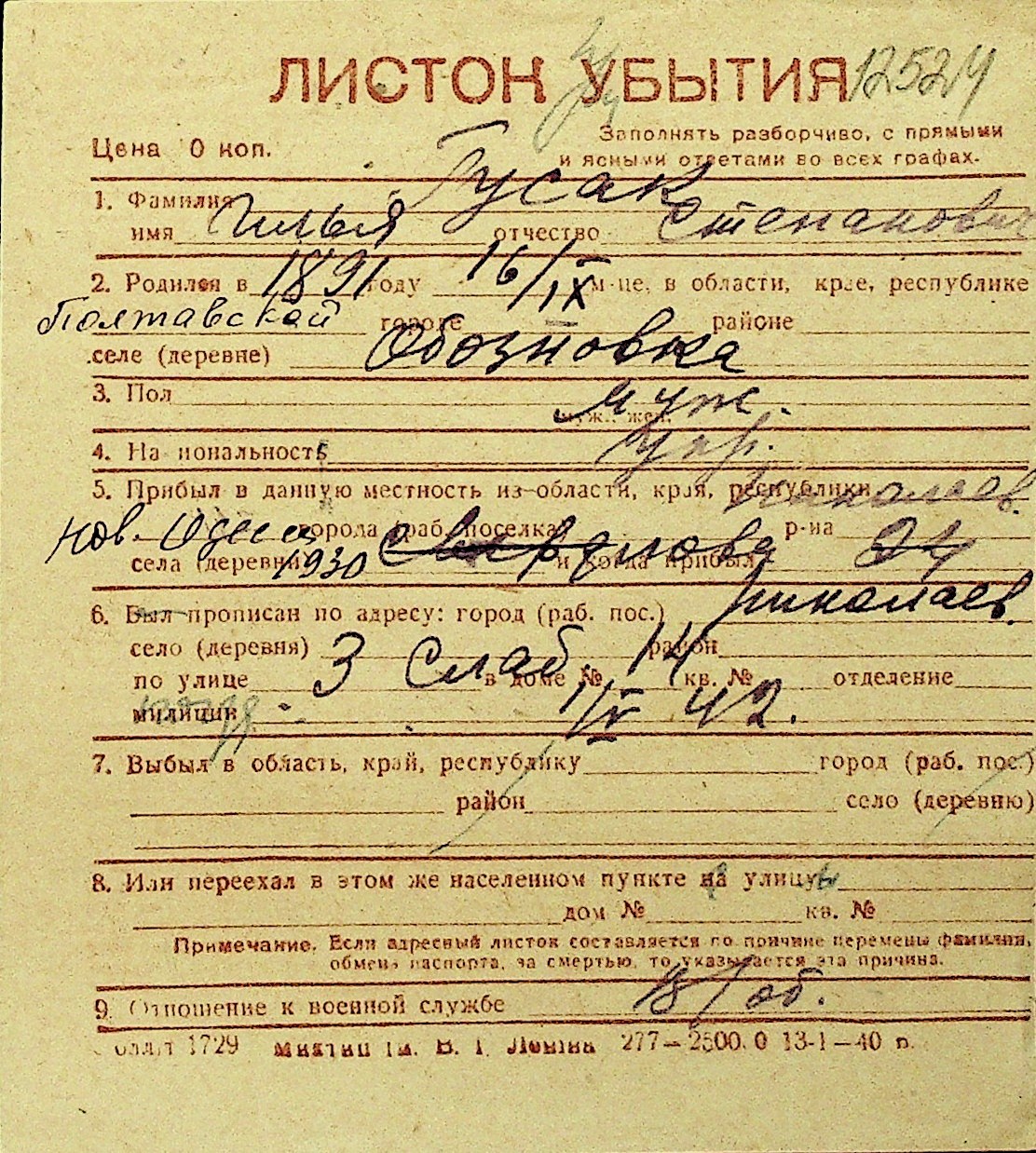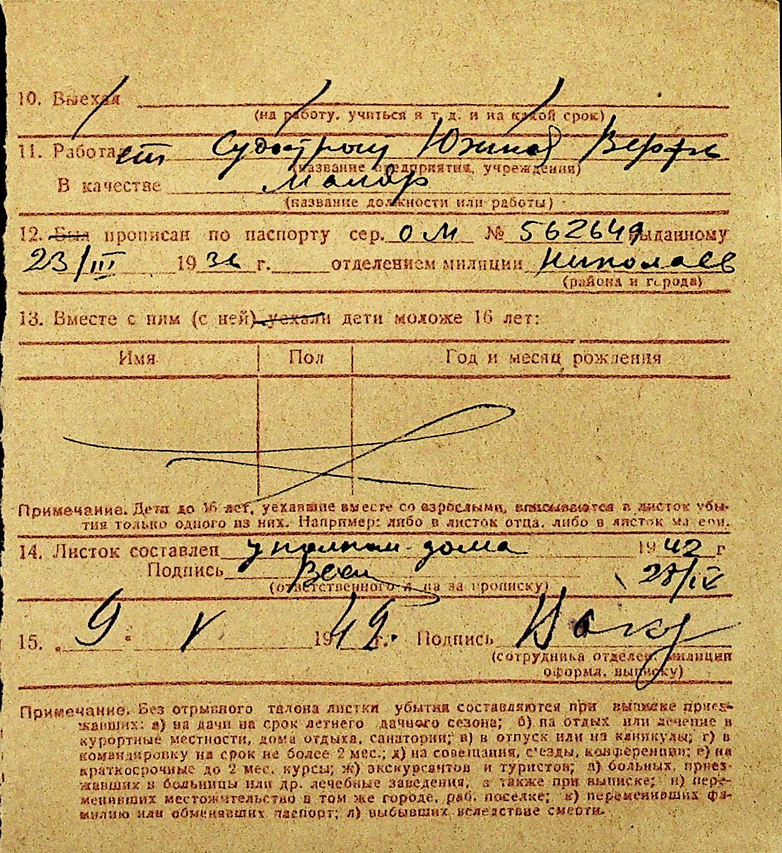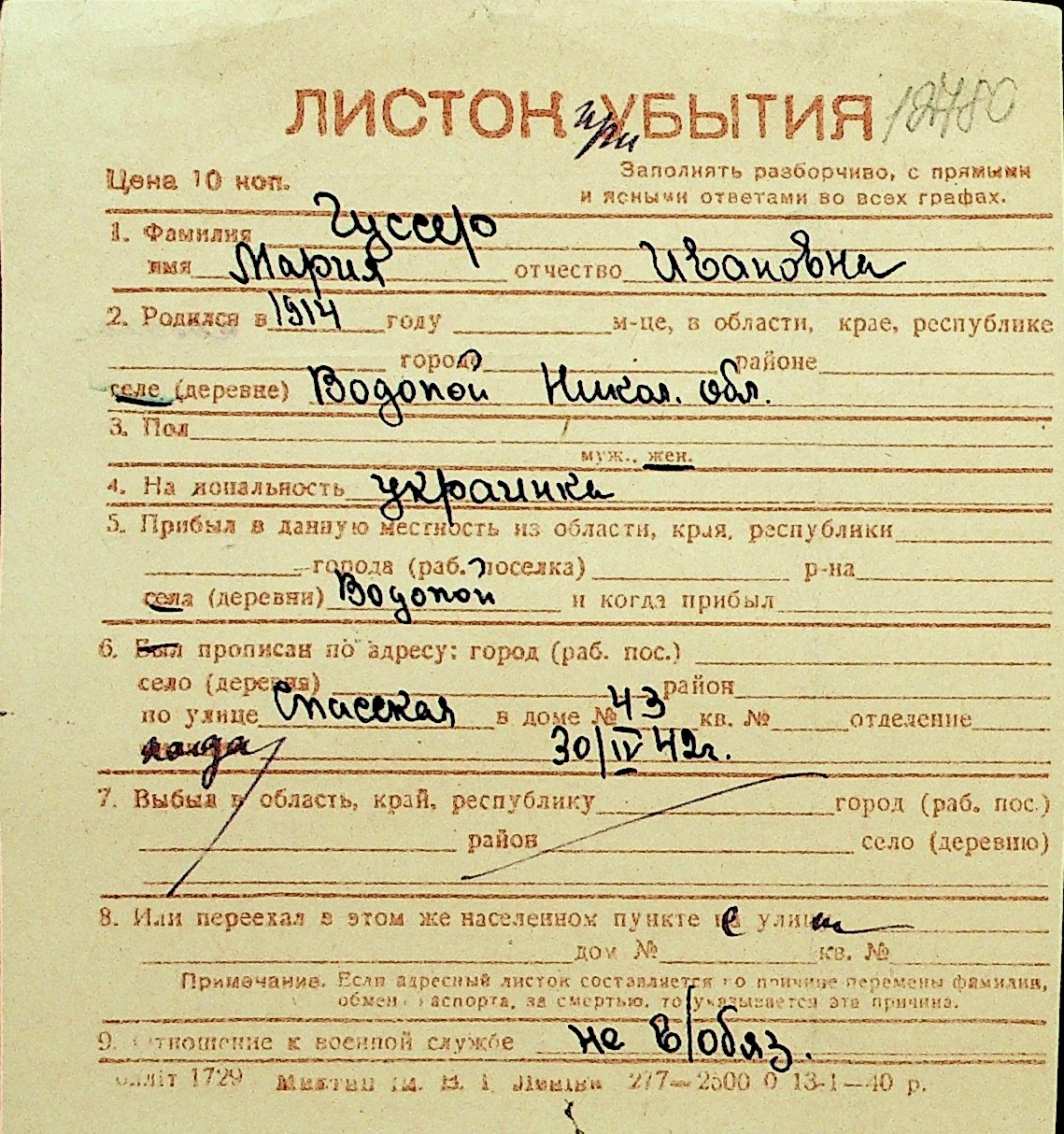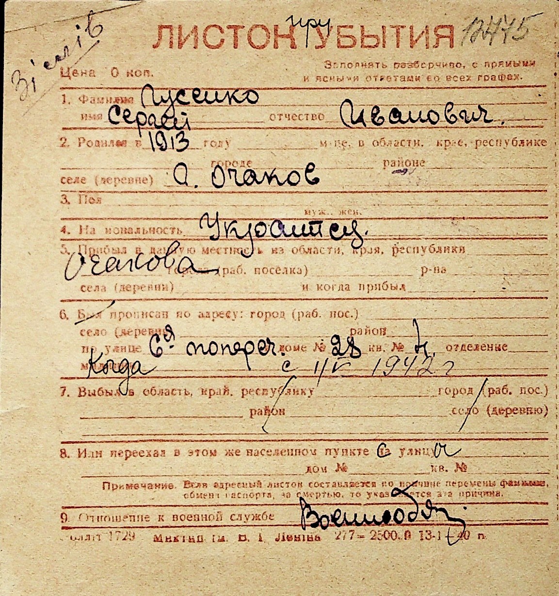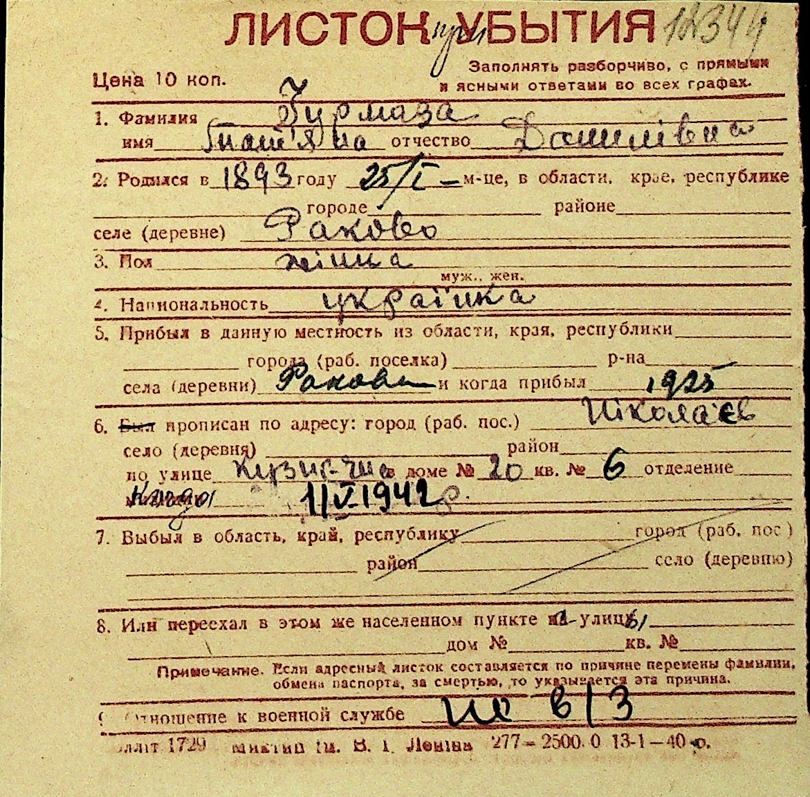 • • Перелік карток до фонду № Н-1016