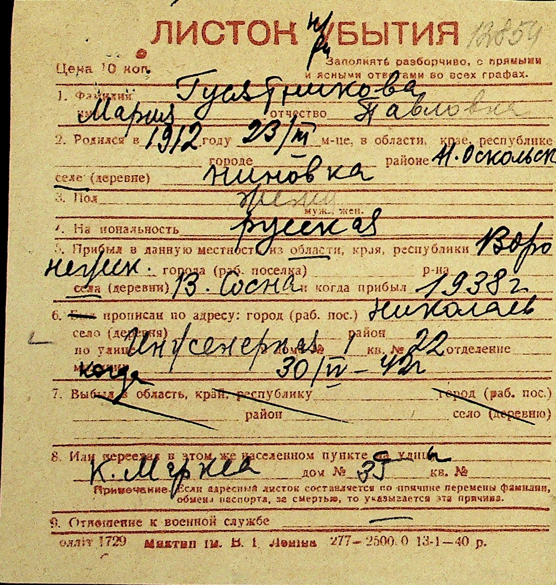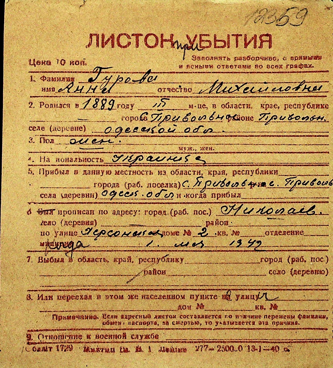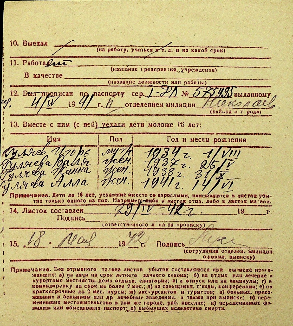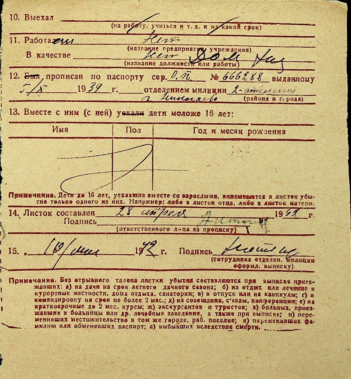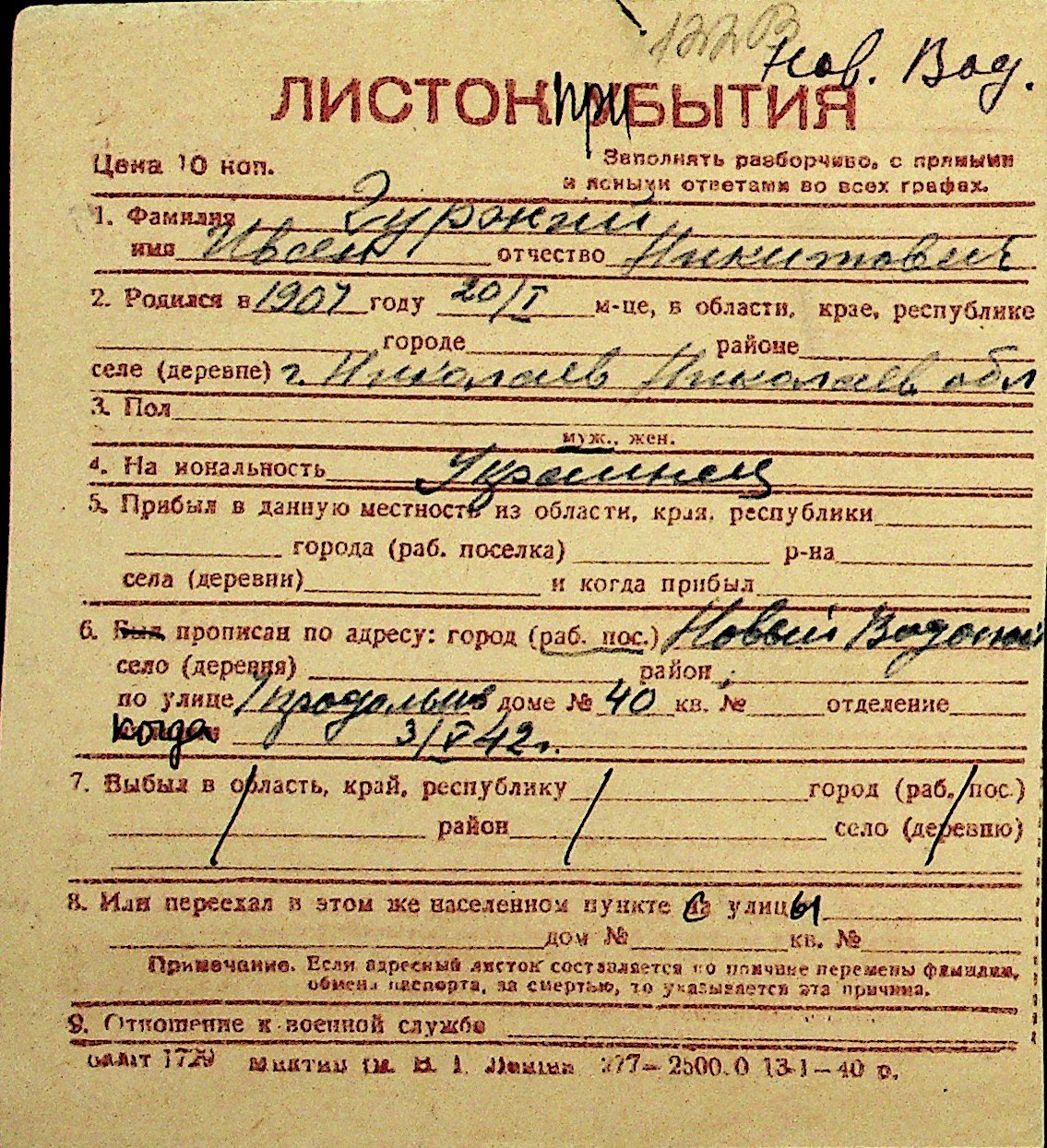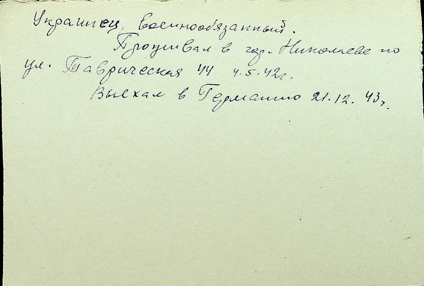 • • Перелік карток до фонду № Н-1016