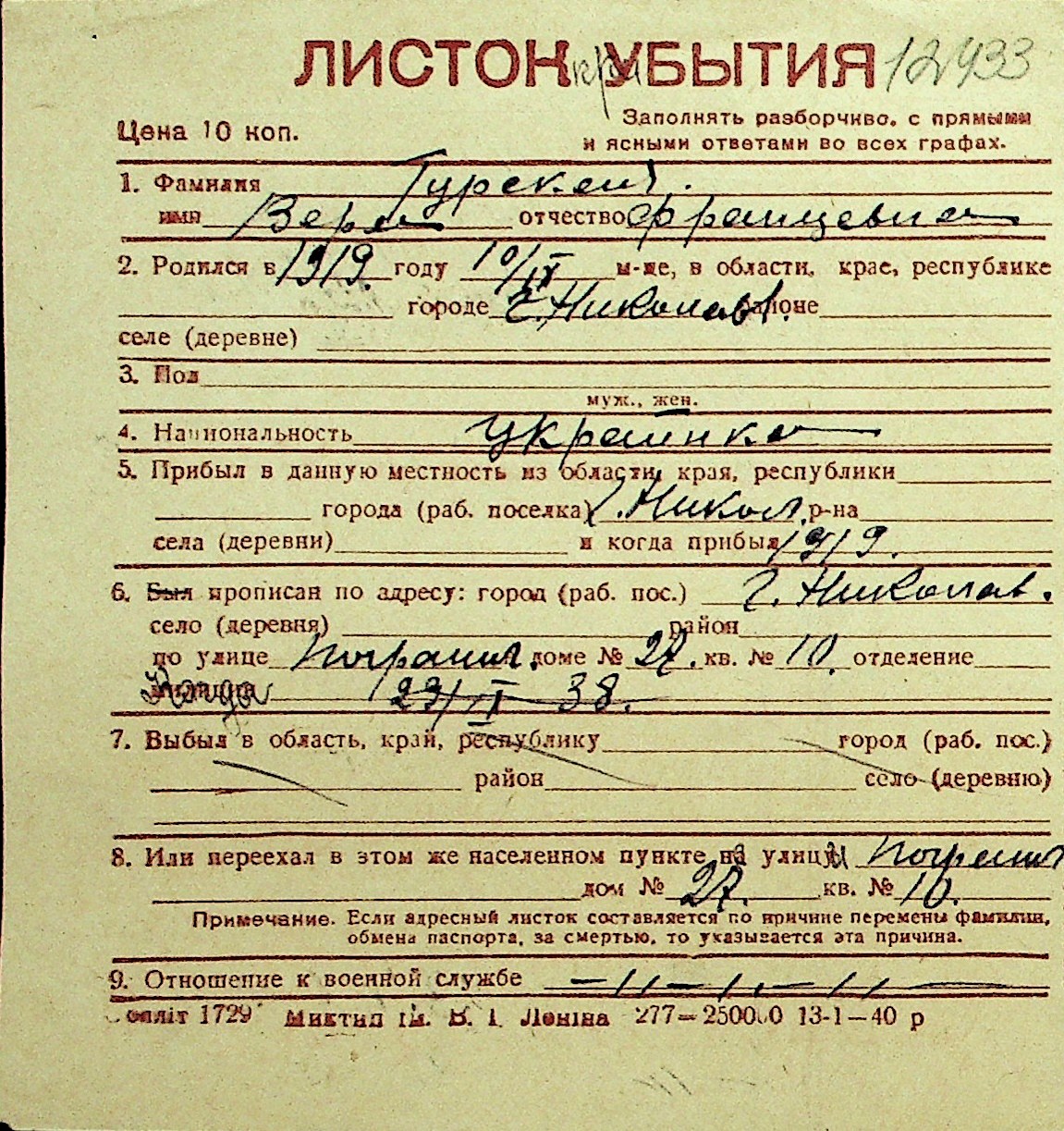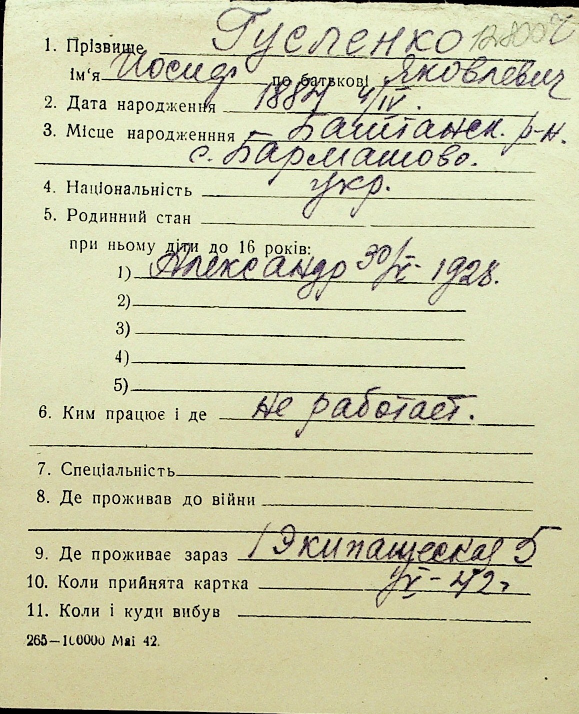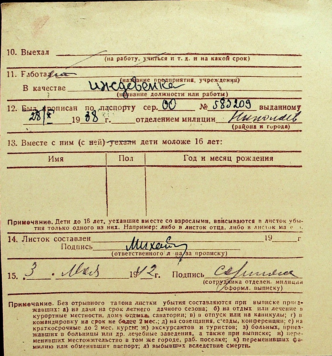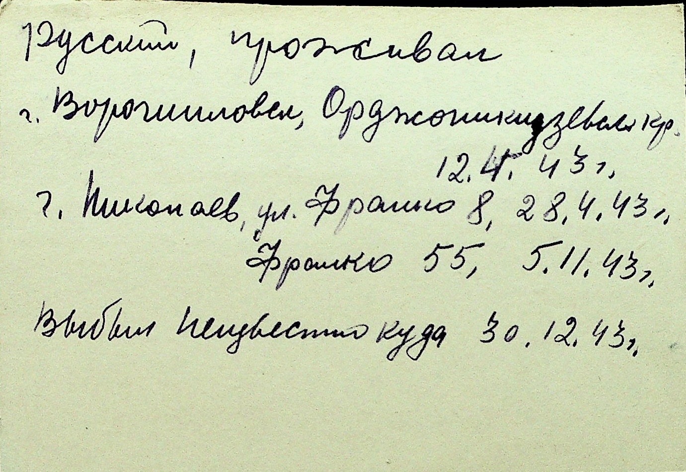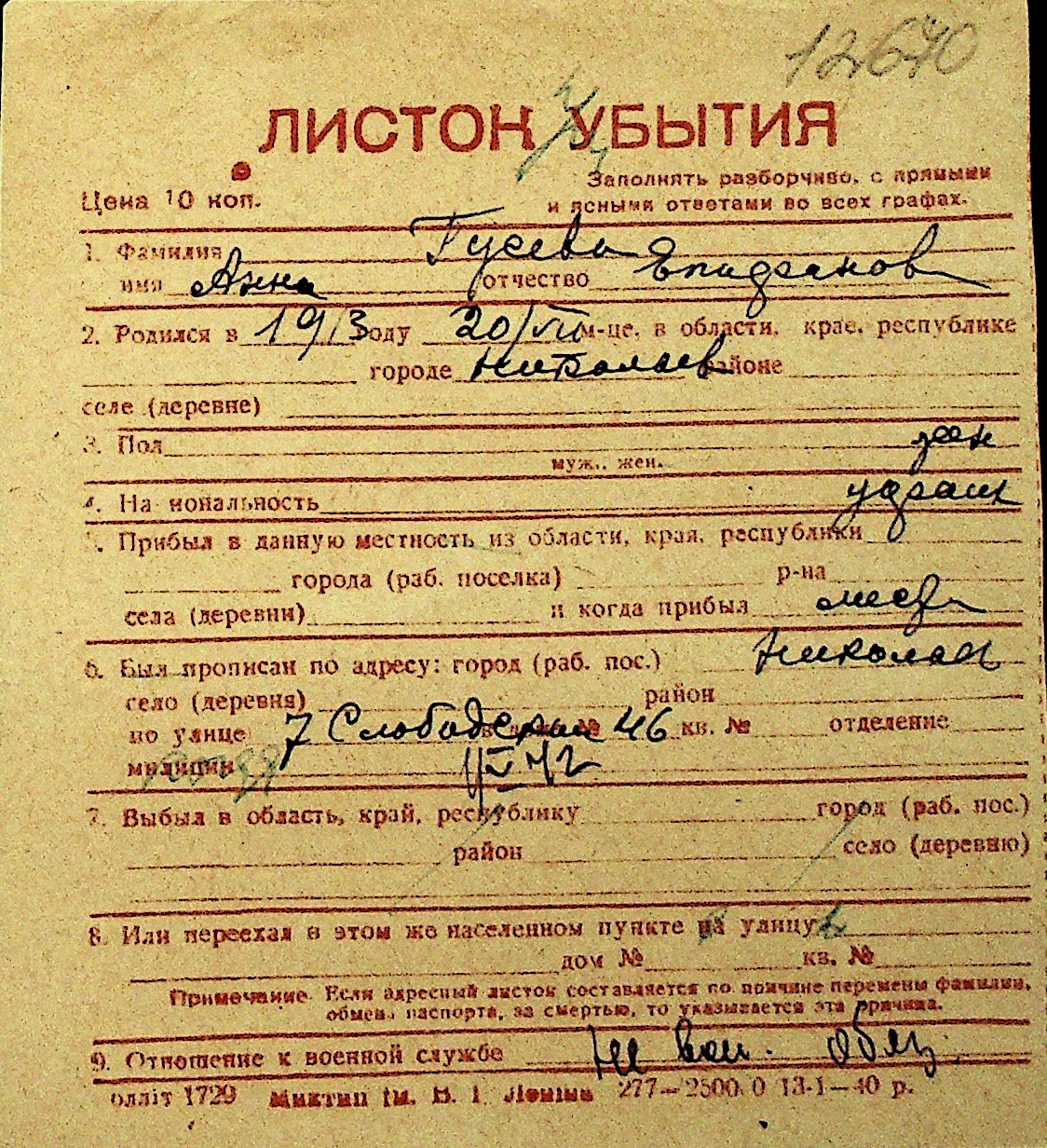 • • Перелік карток до фонду № Н-1016