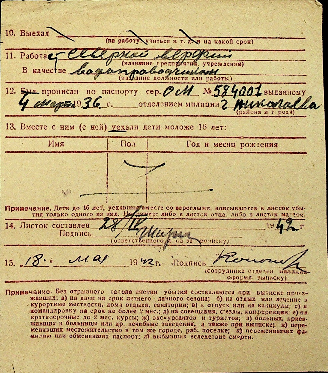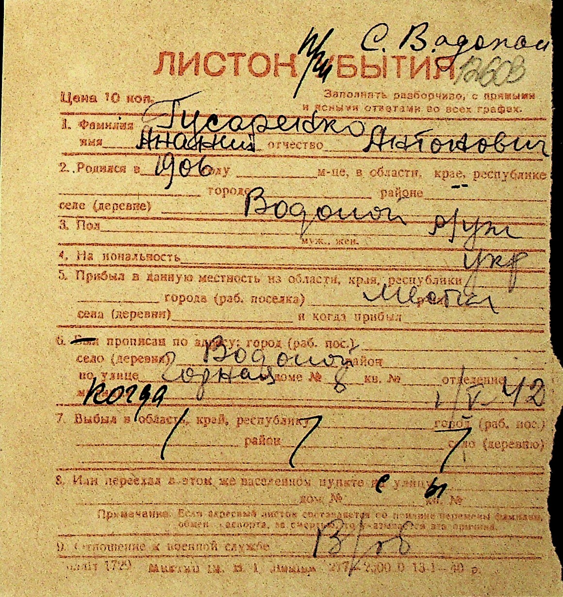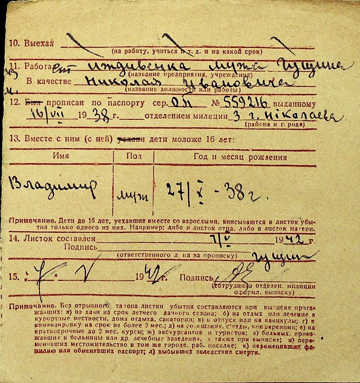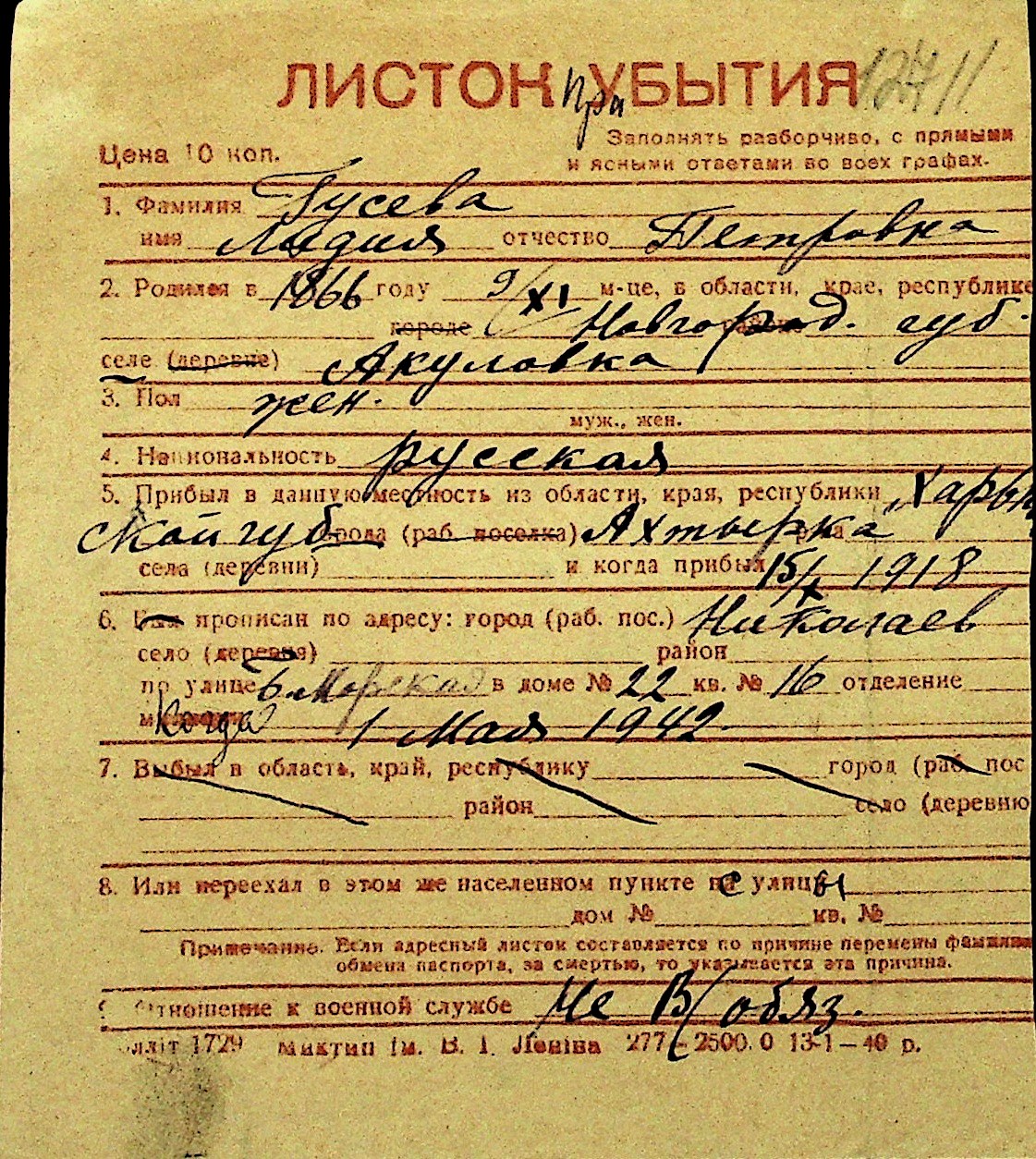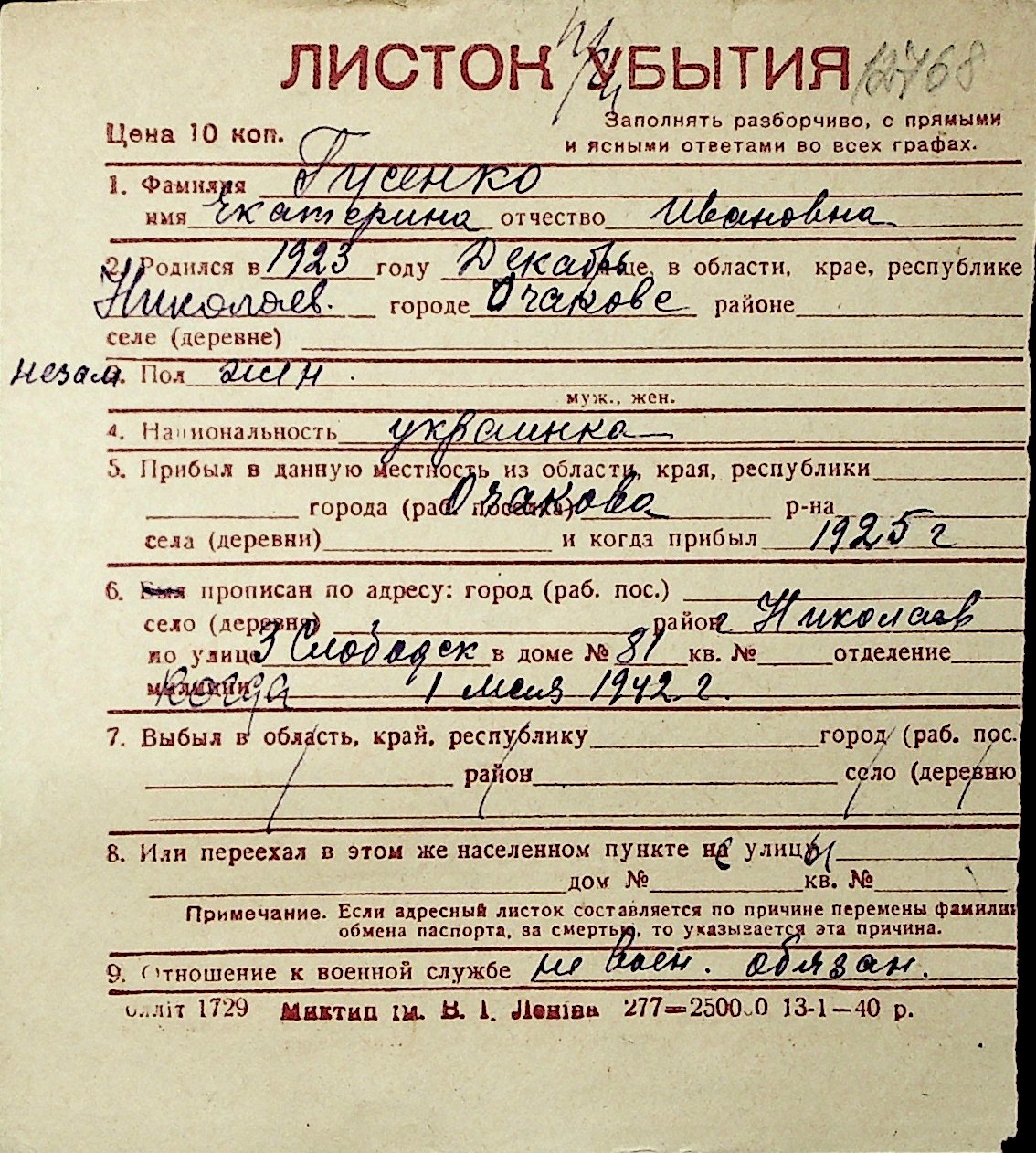 • • Перелік карток до фонду № Н-1016