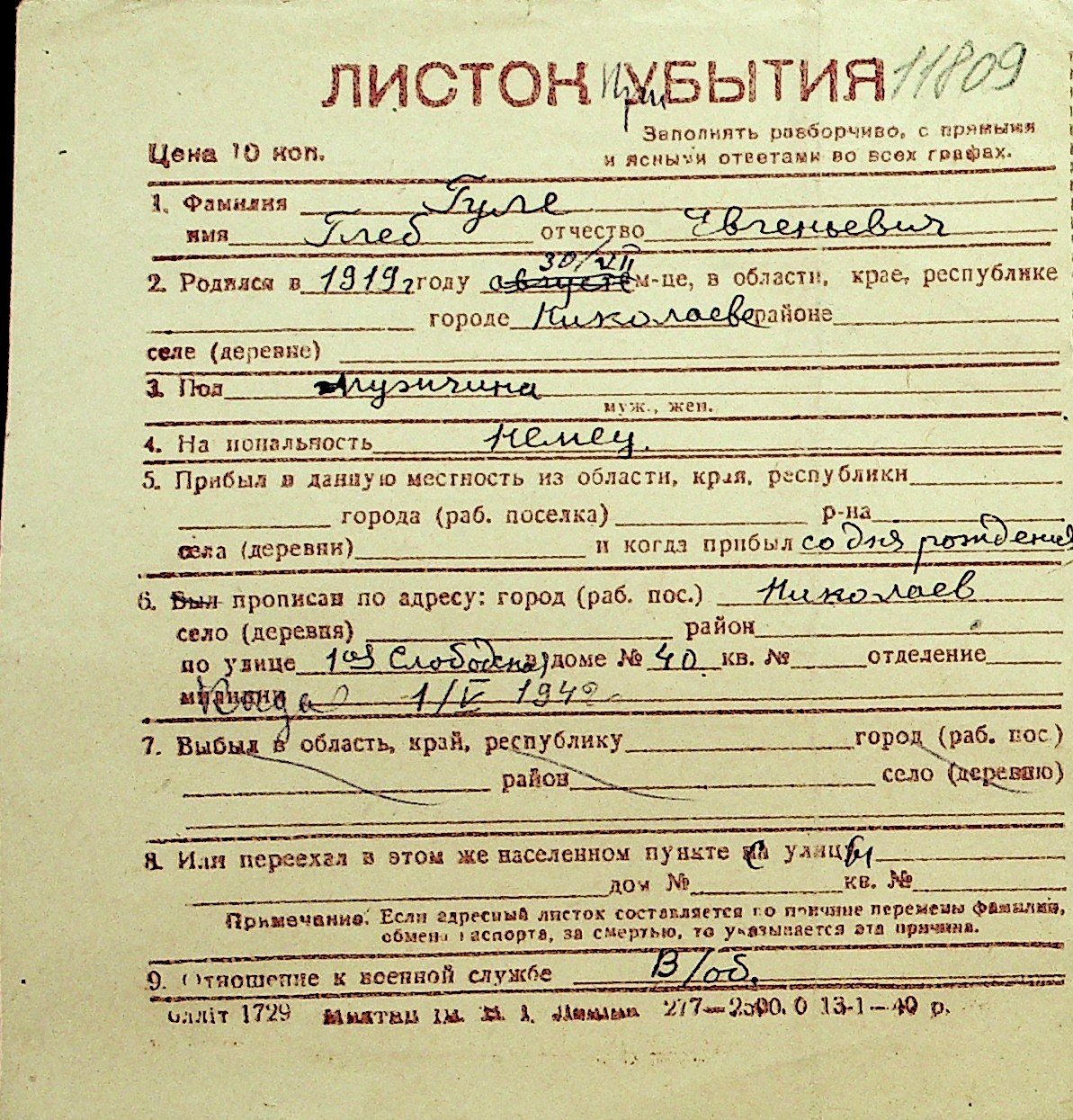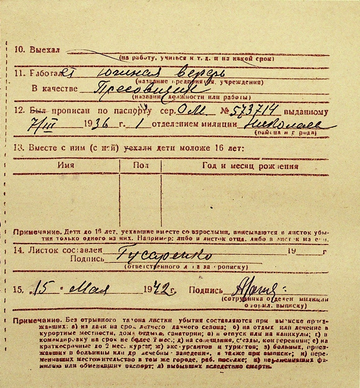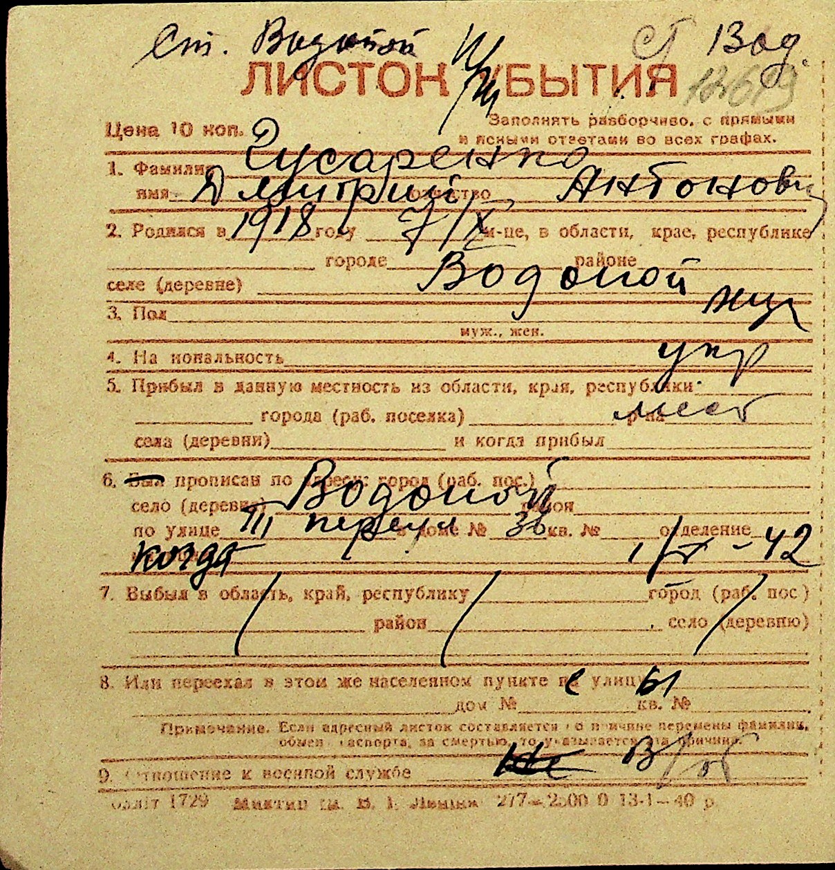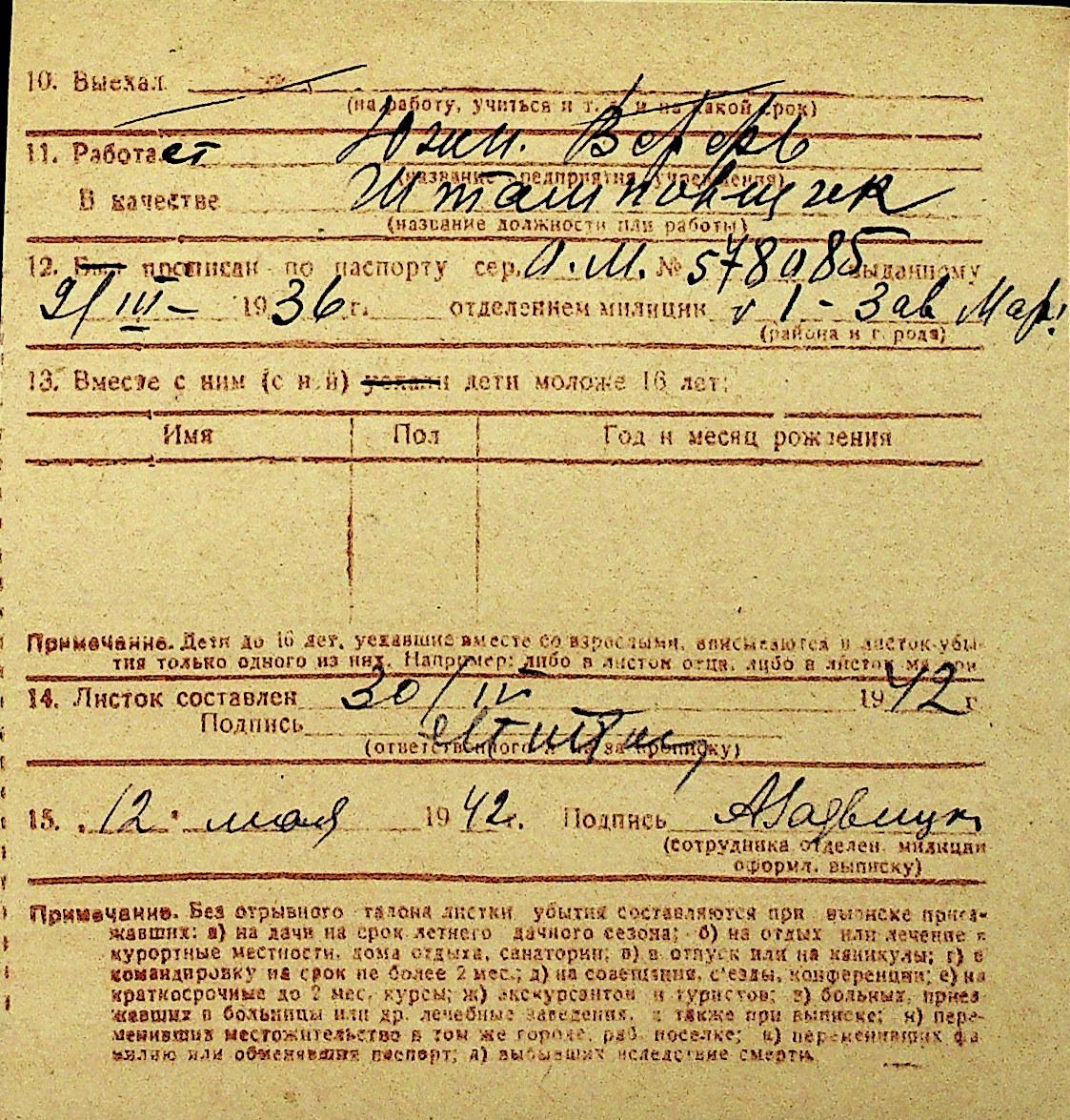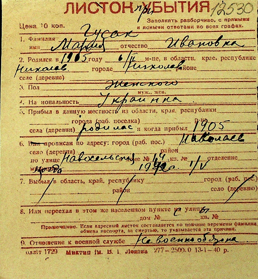 • • Перелік карток до фонду № Н-1016