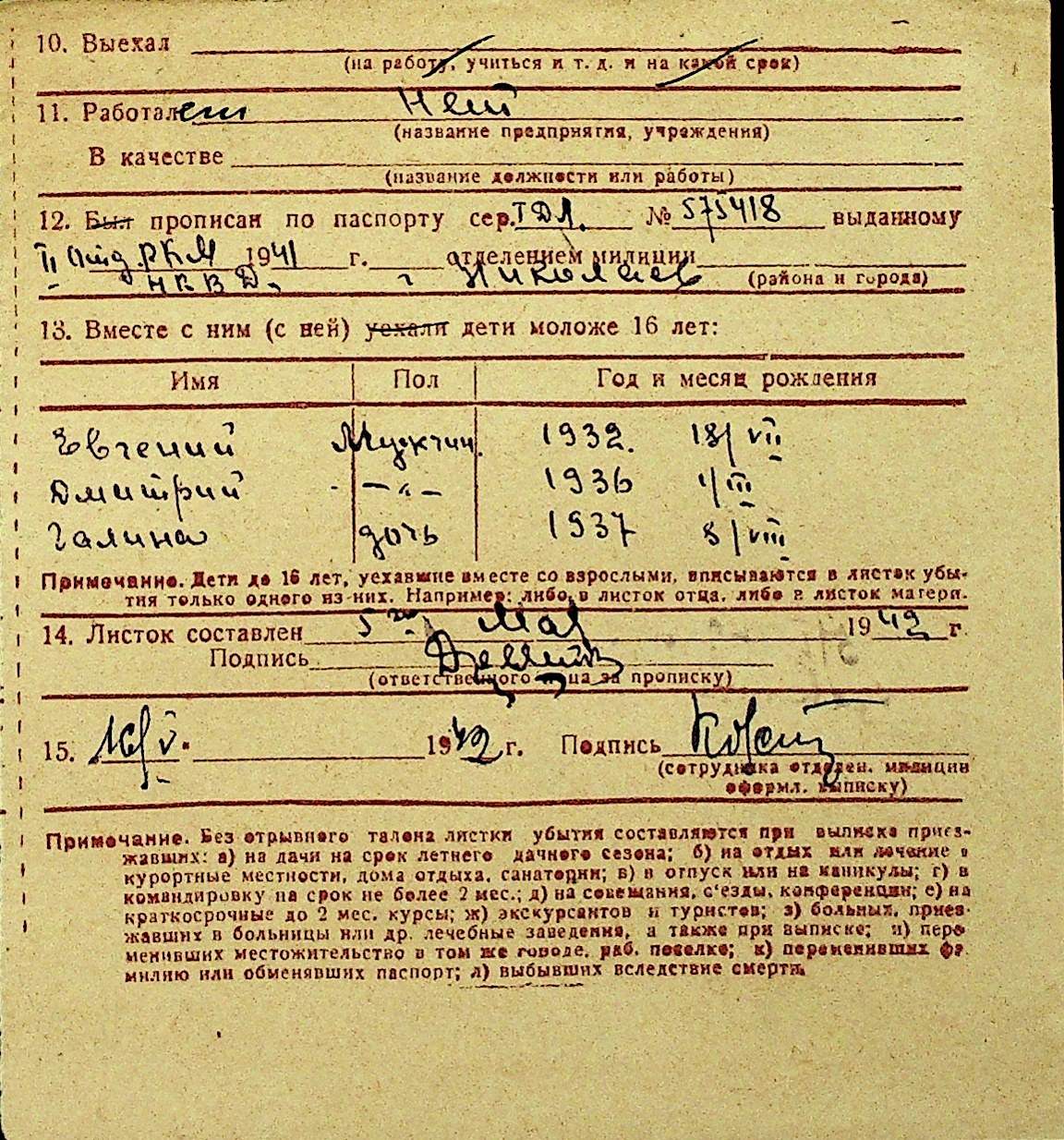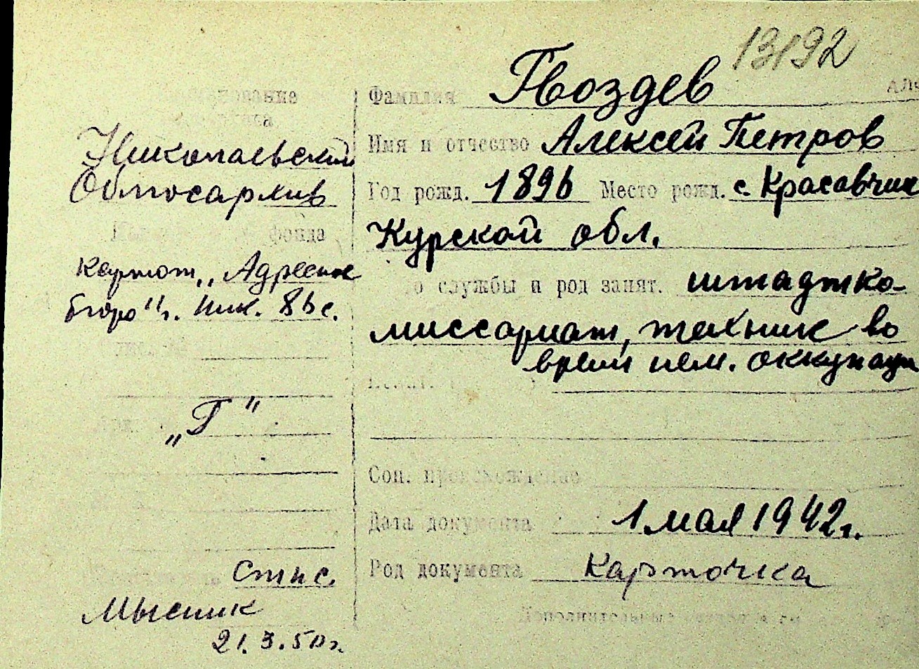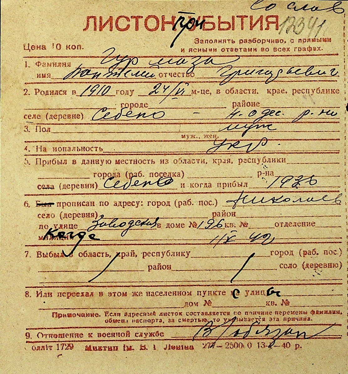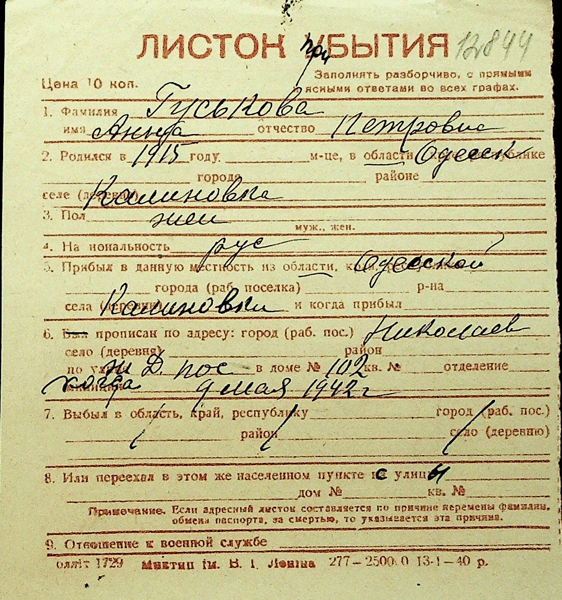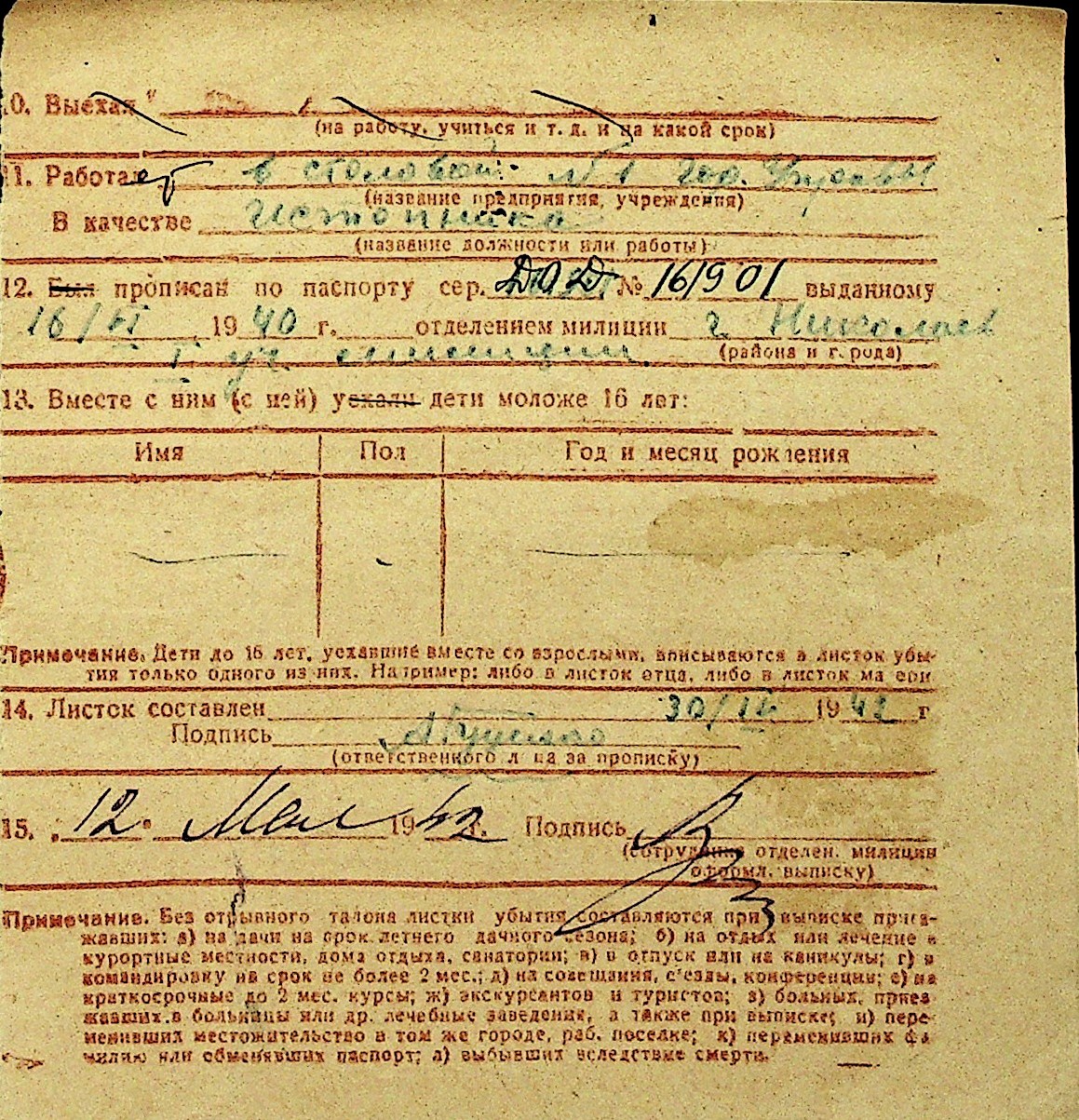 • • Перелік карток до фонду № Н-1016