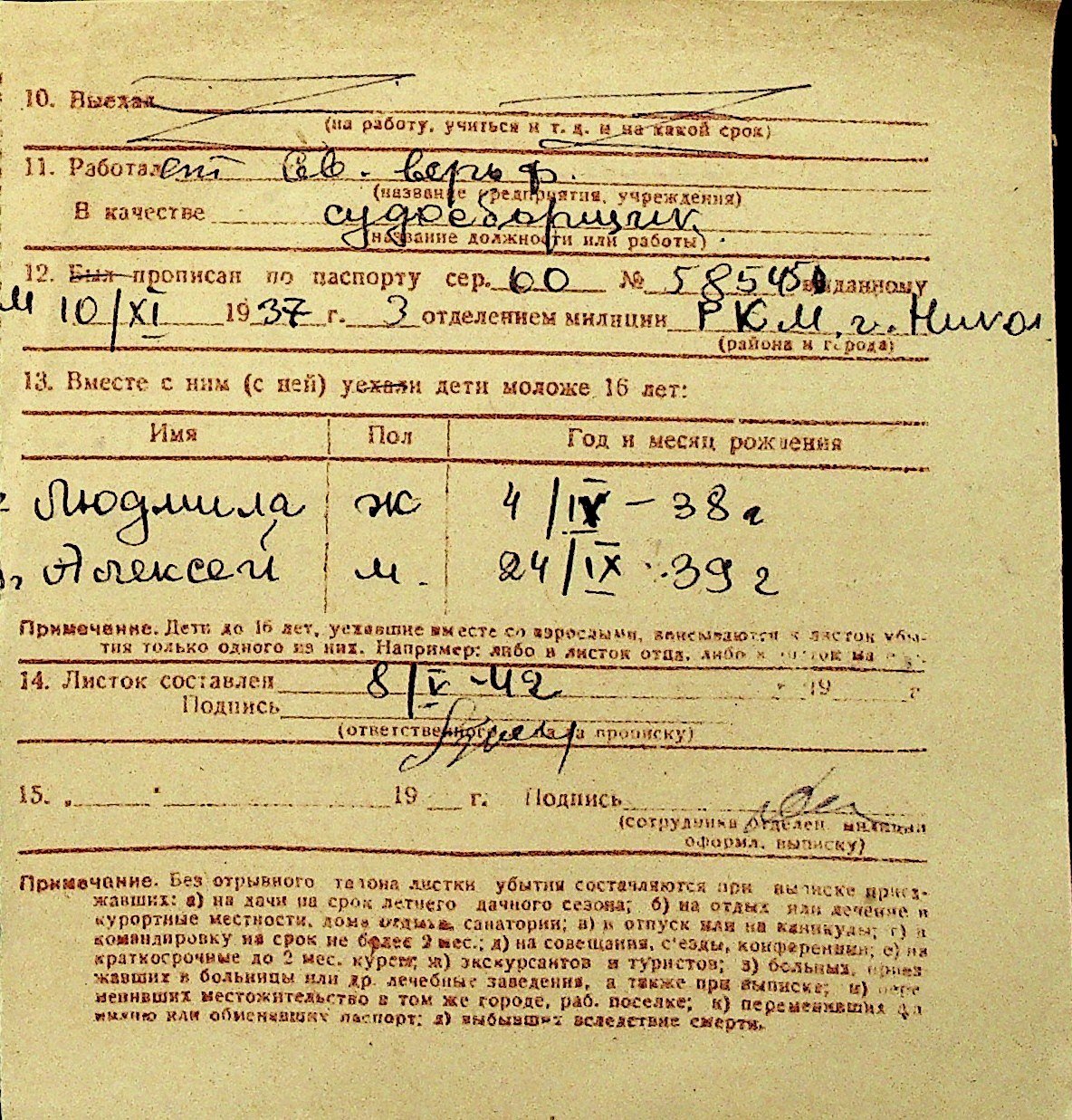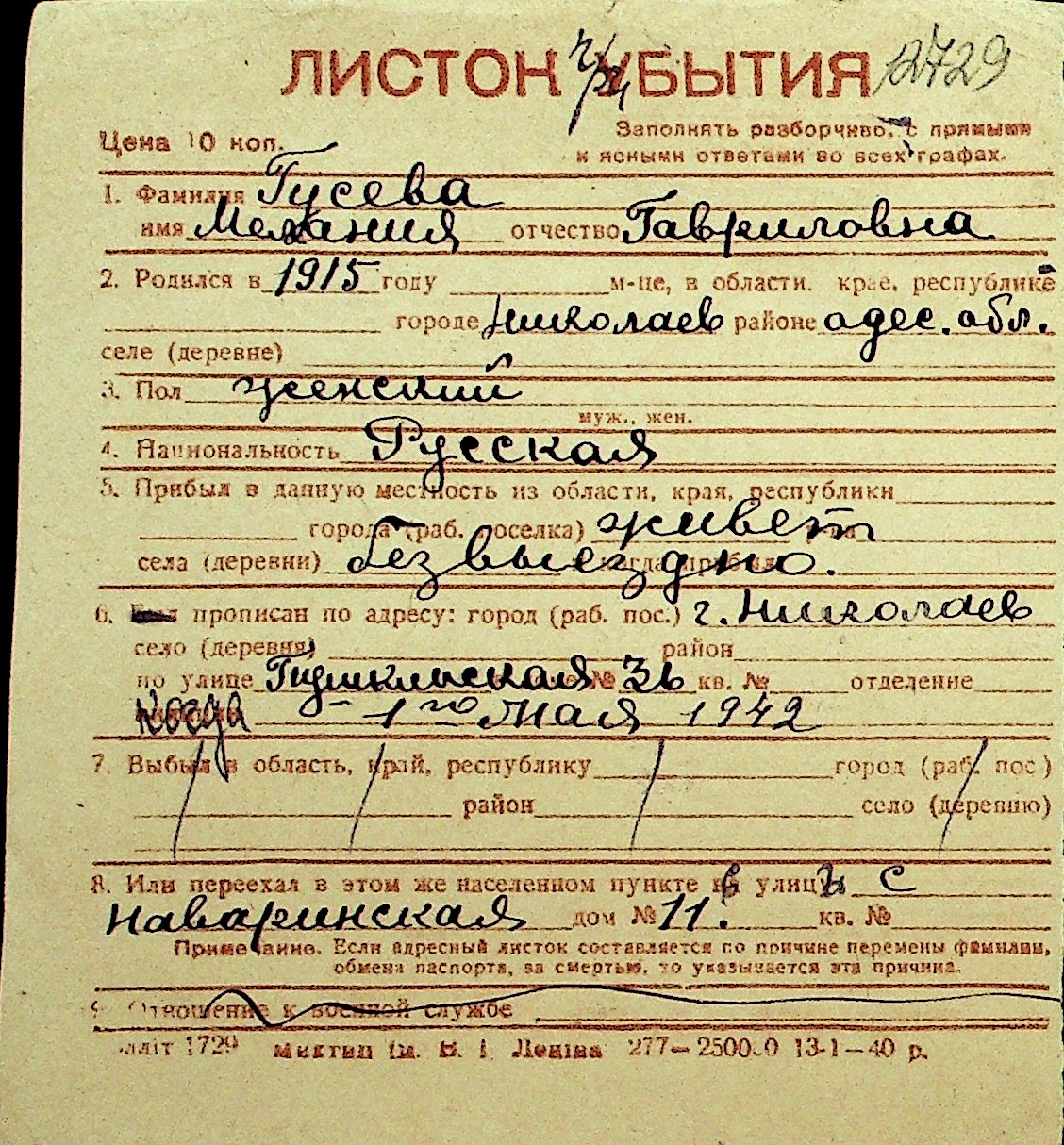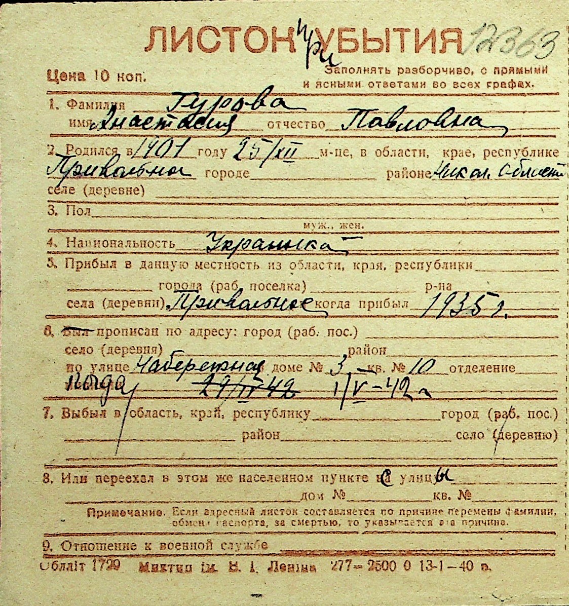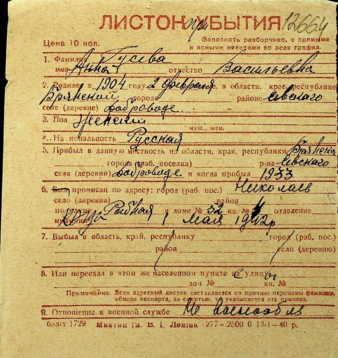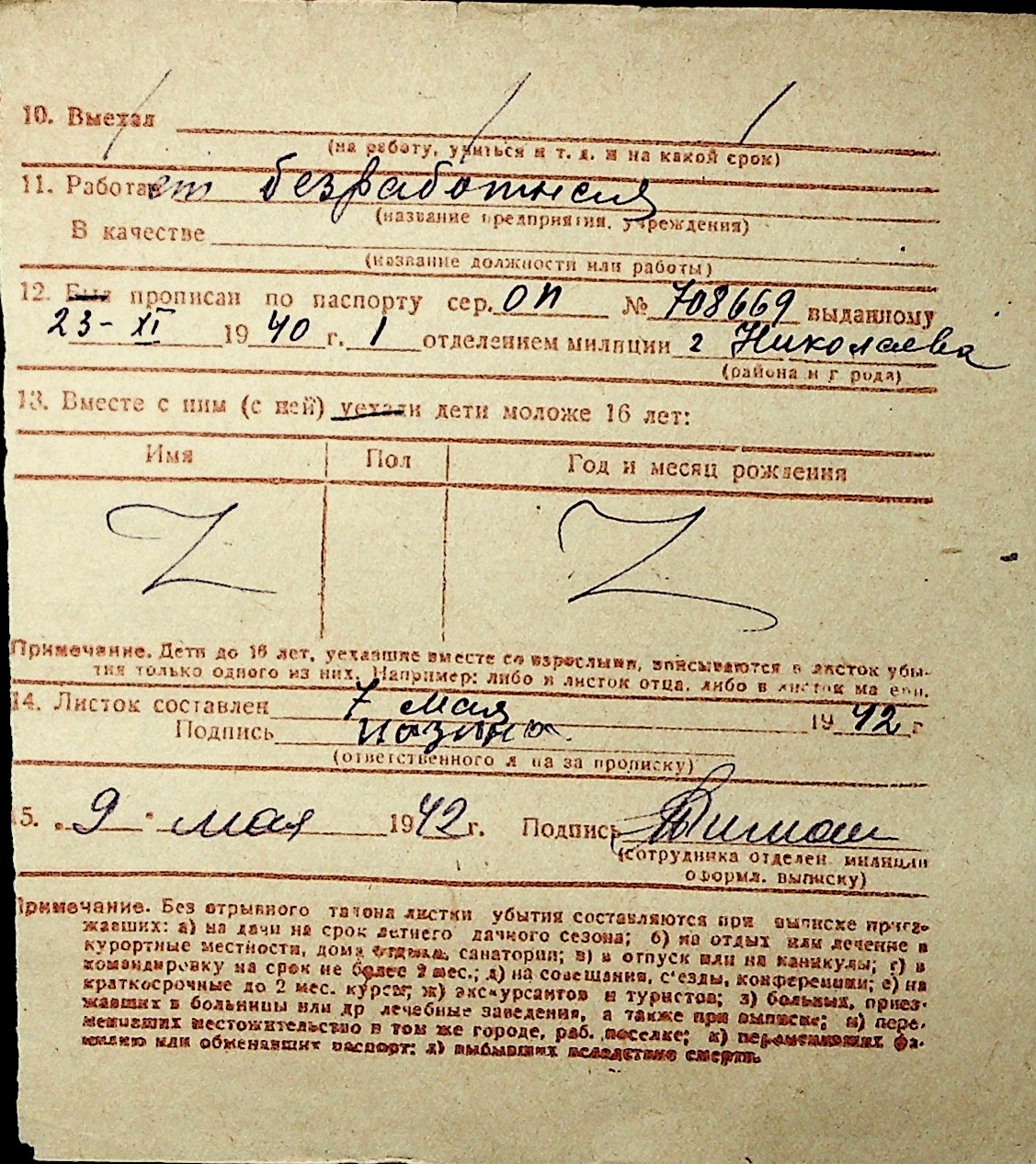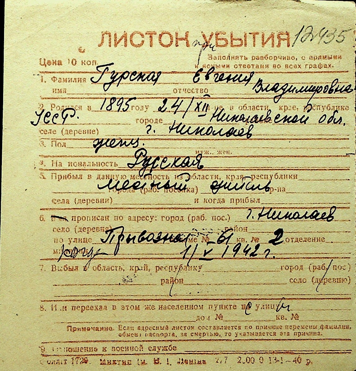 • • Перелік карток до фонду № Н-1016