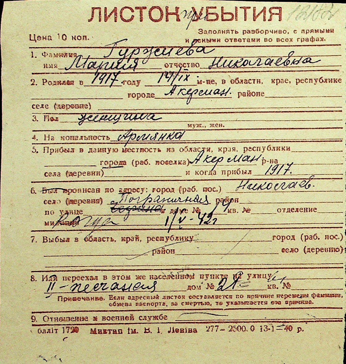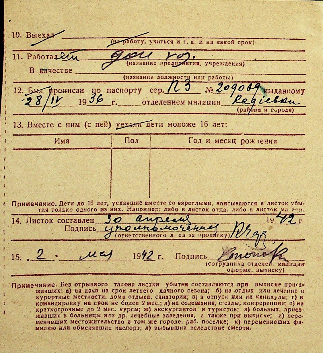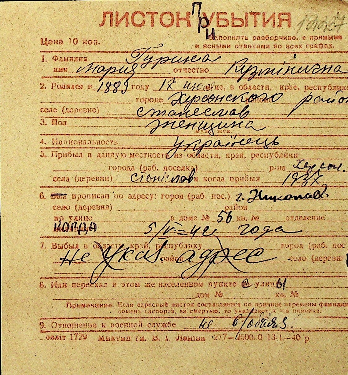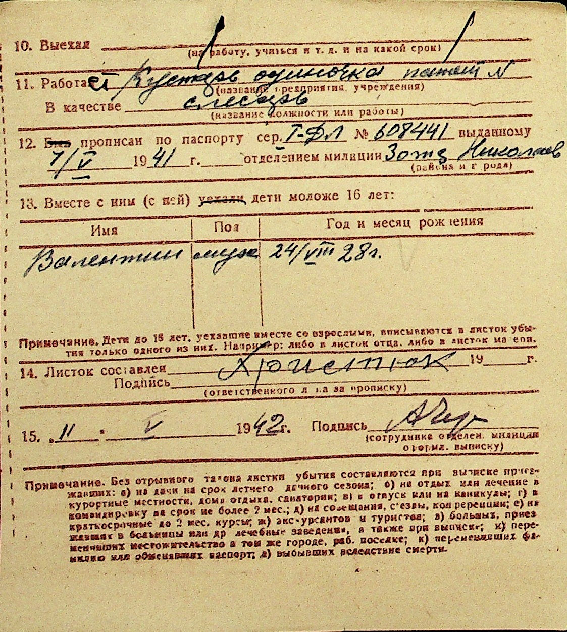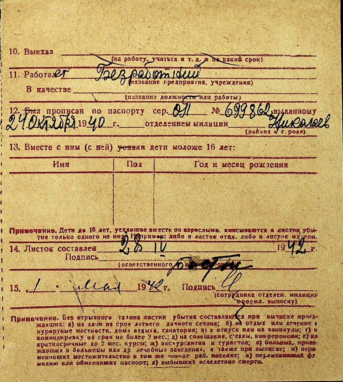 • • Перелік карток до фонду № Н-1016