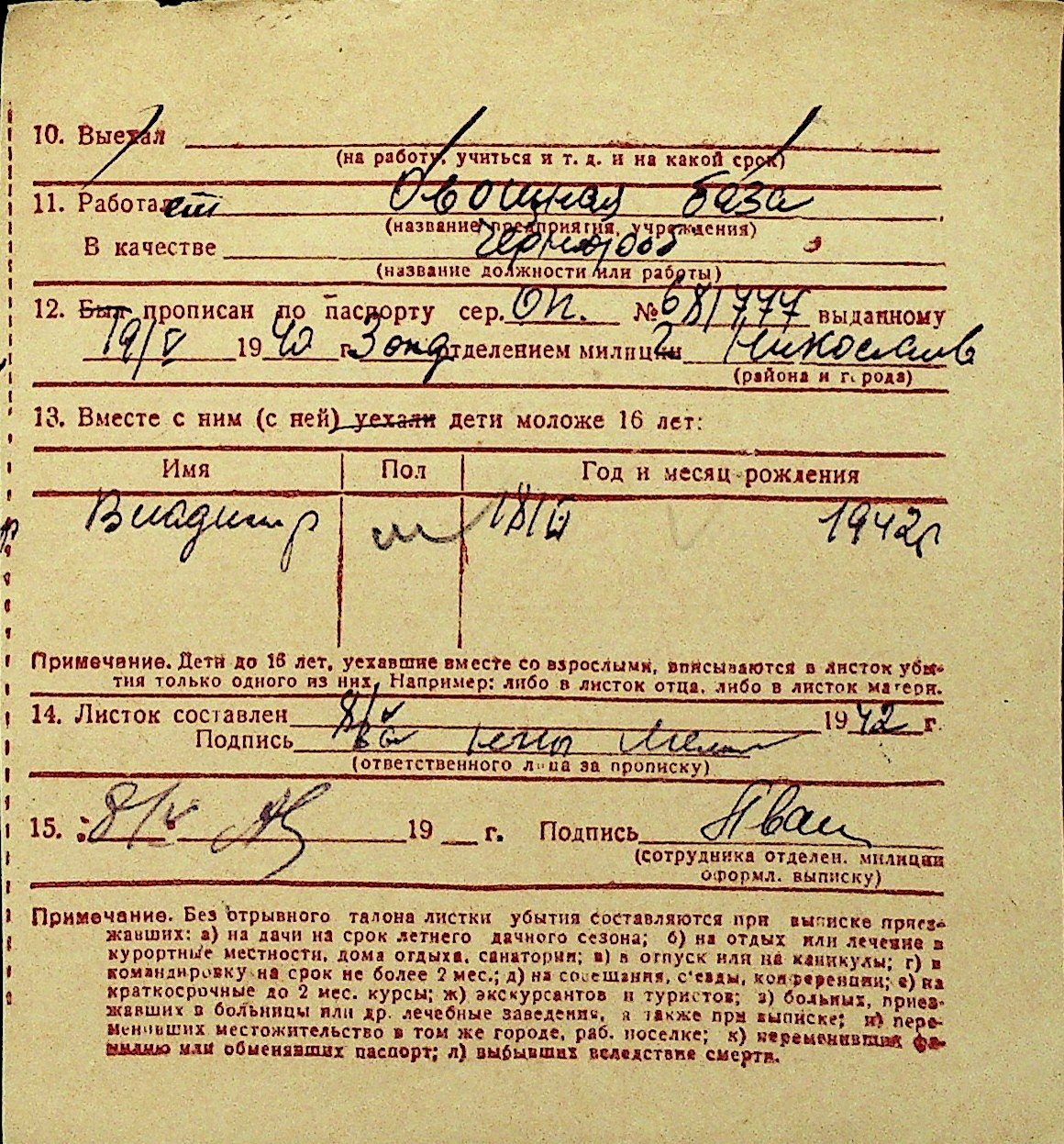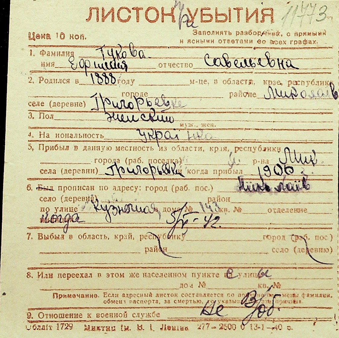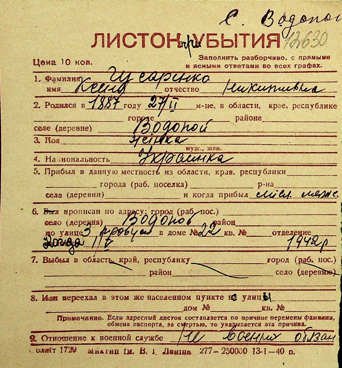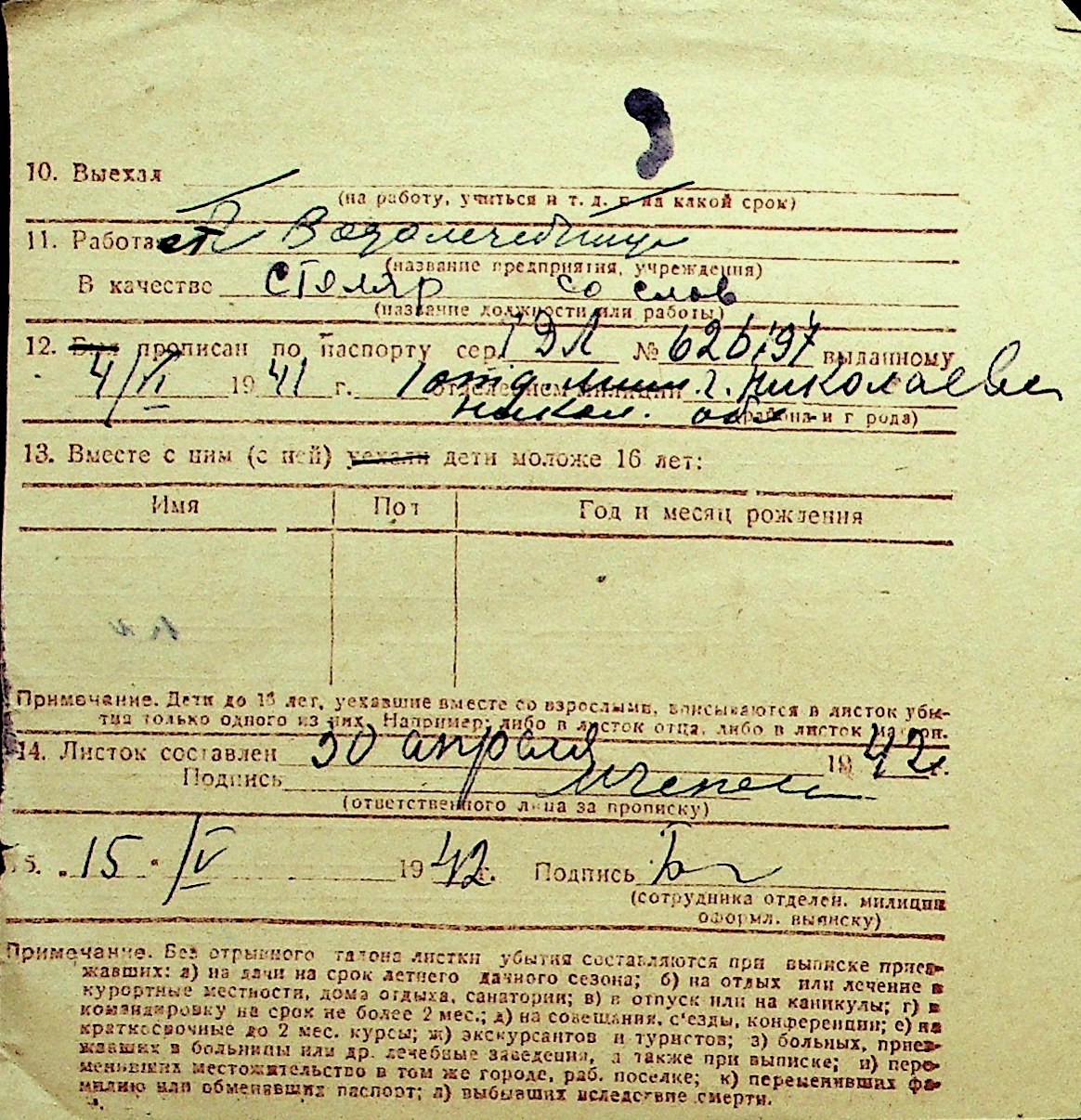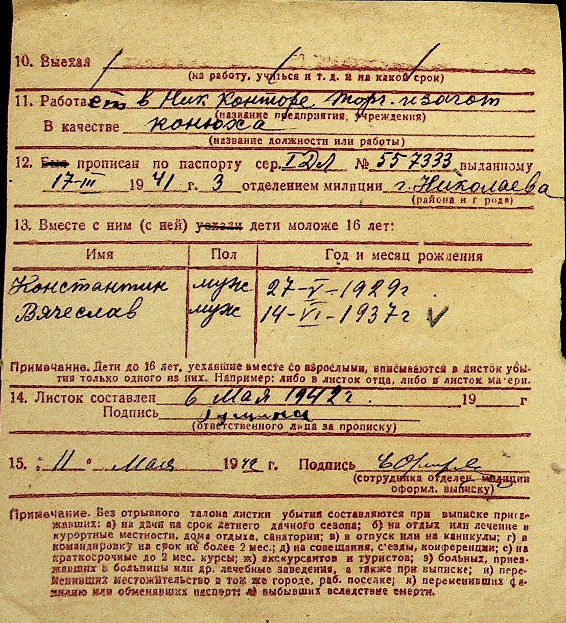 • • Перелік карток до фонду № Н-1016