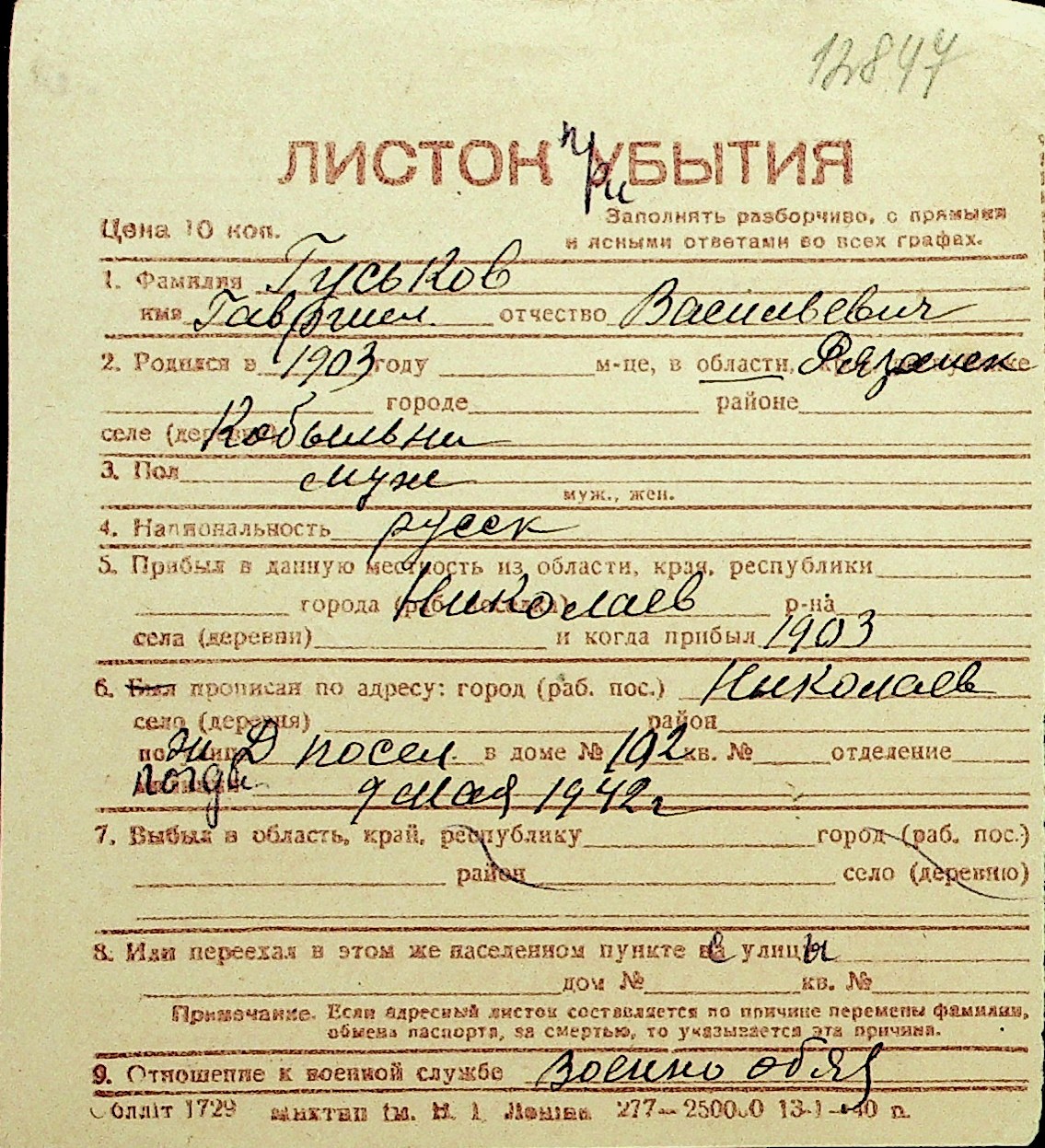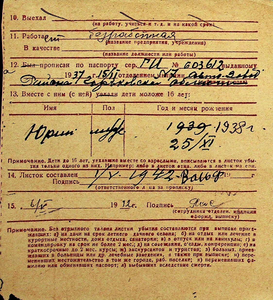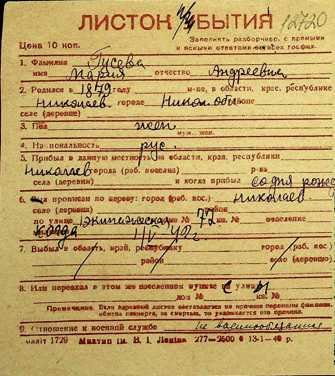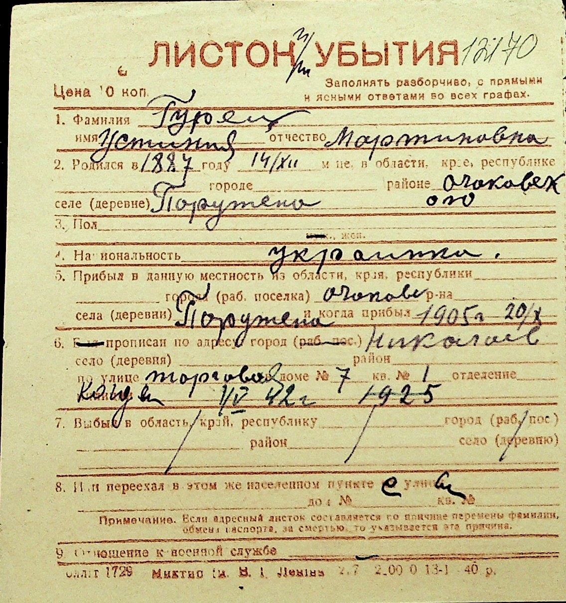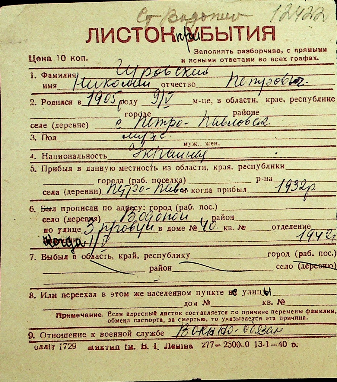 • • Перелік карток до фонду № Н-1016
