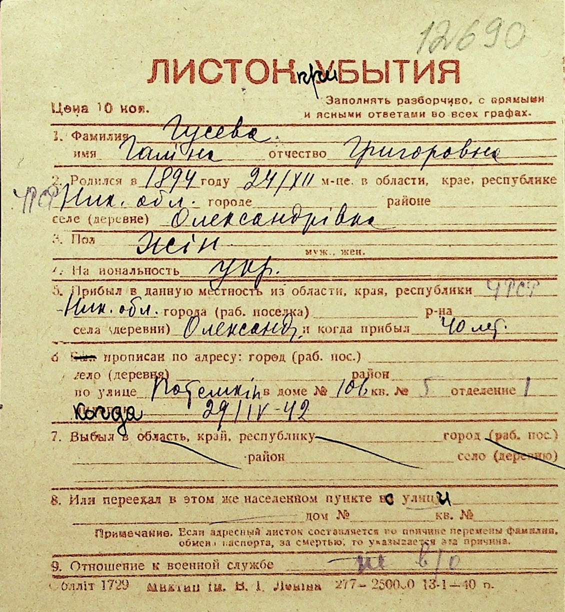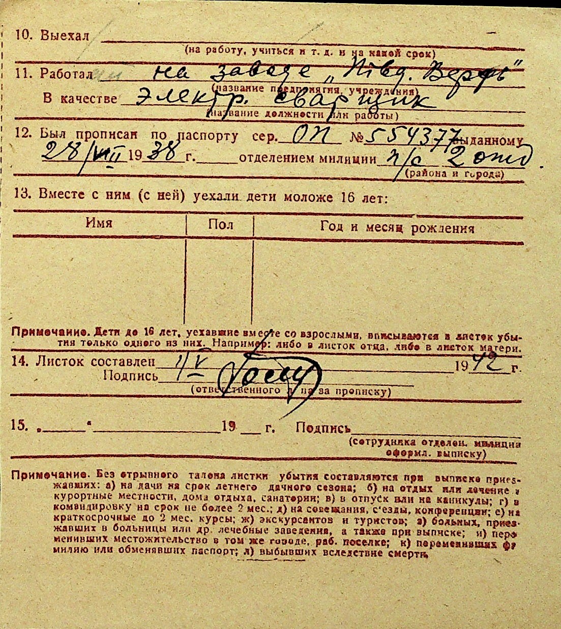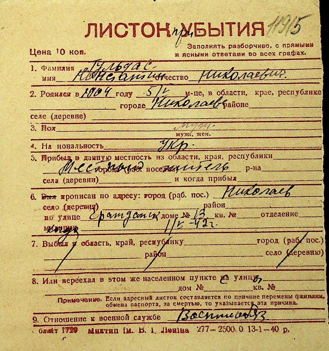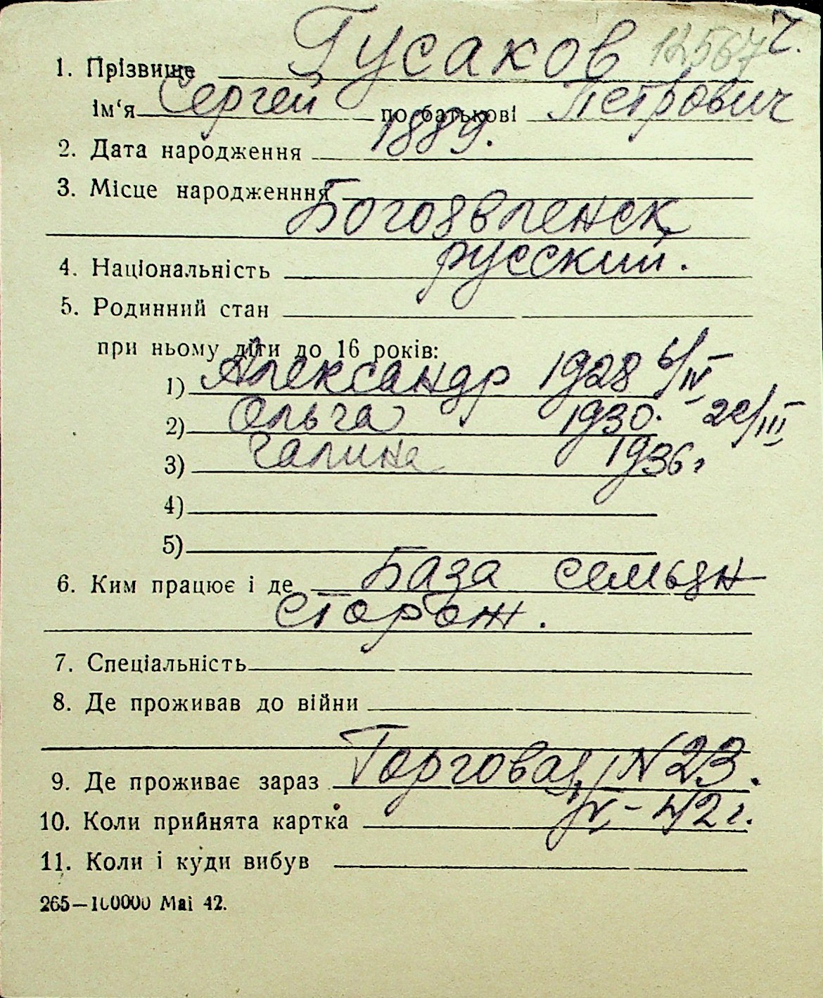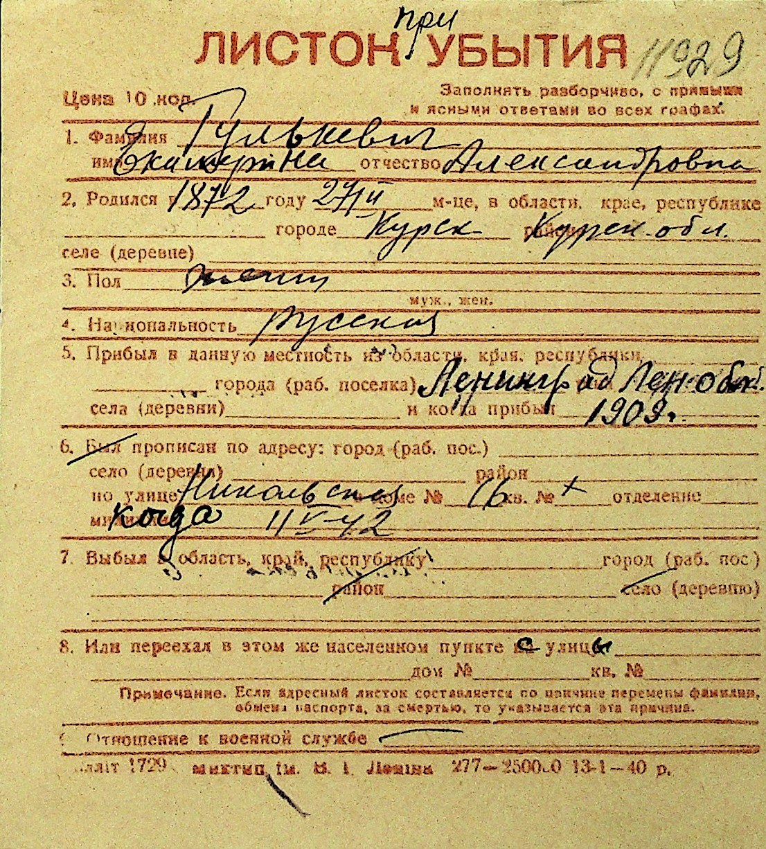 • • Перелік карток до фонду № Н-1016