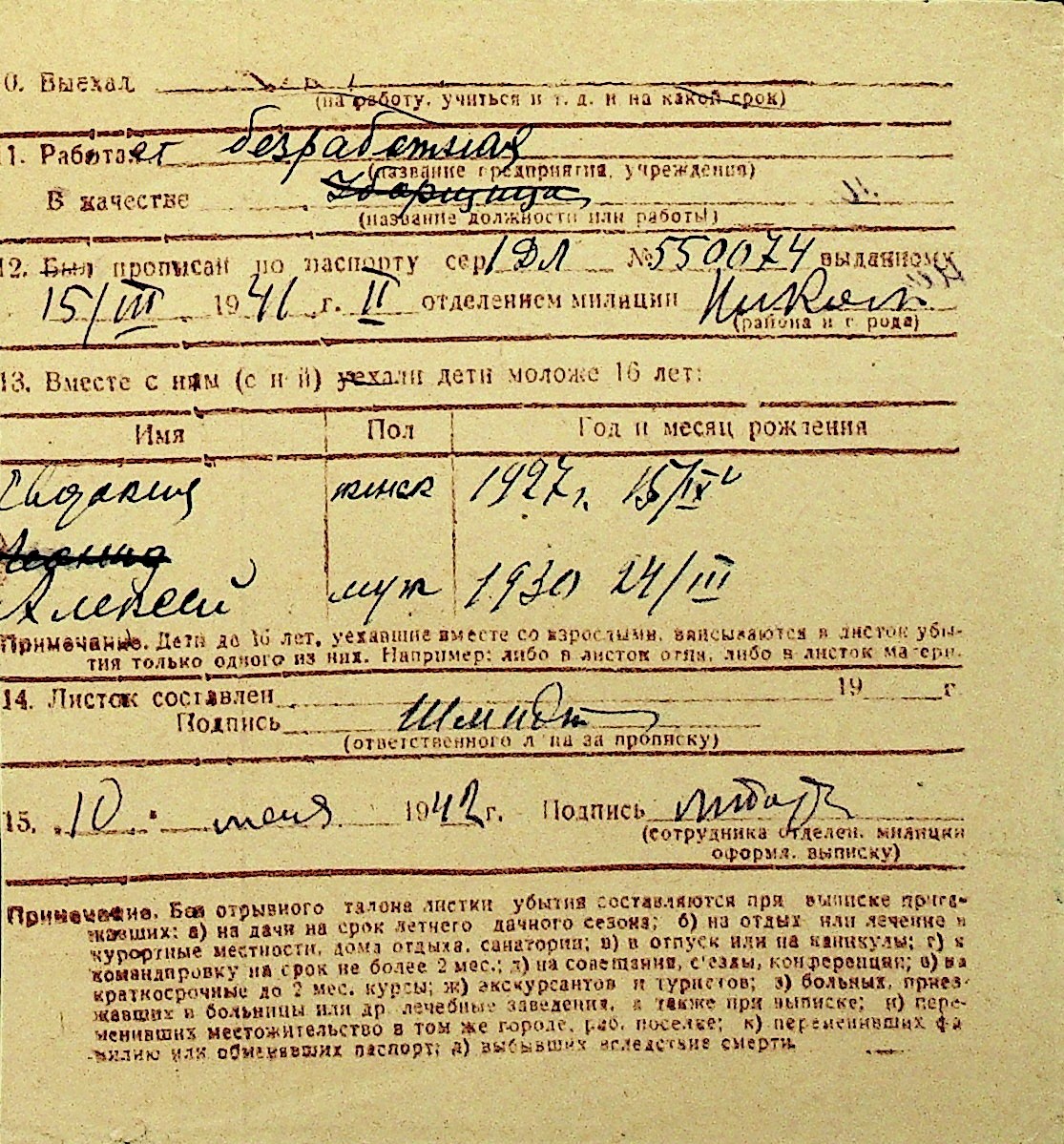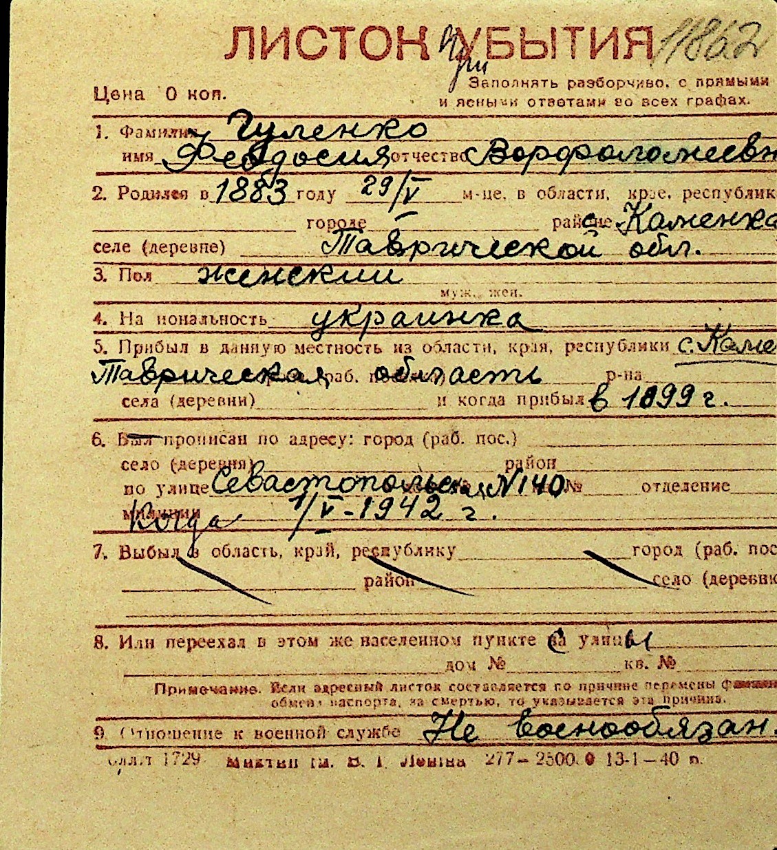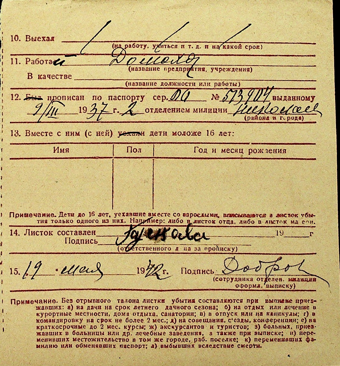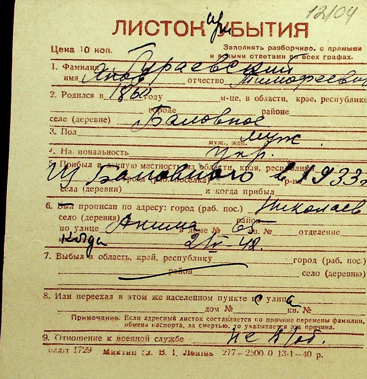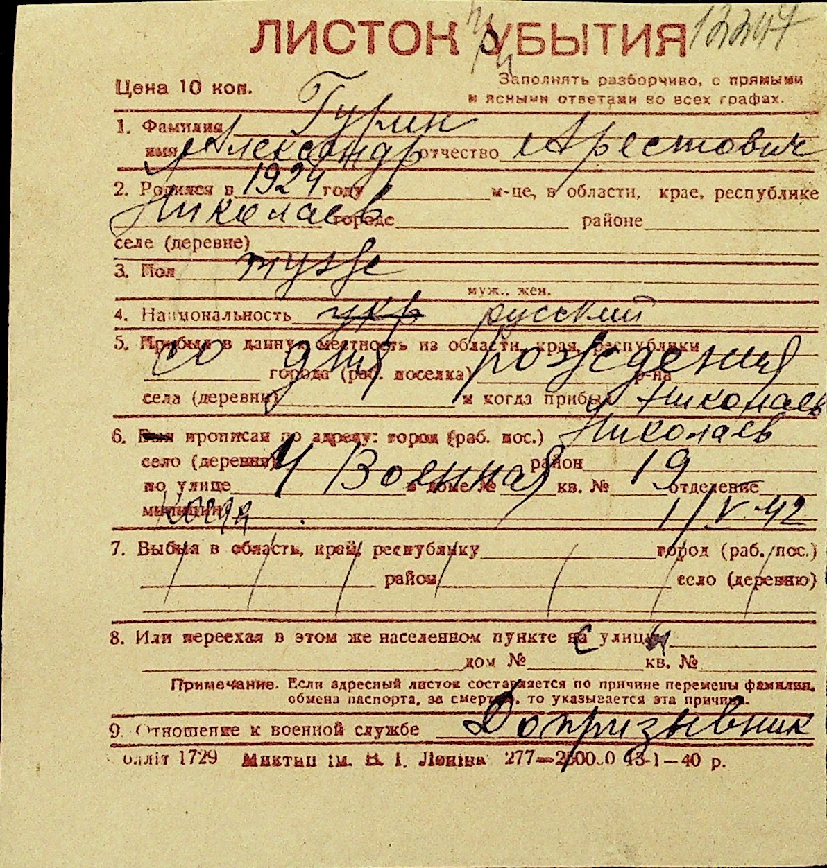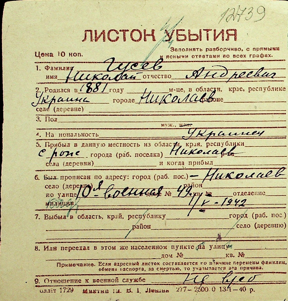 • • Перелік карток до фонду № Н-1016