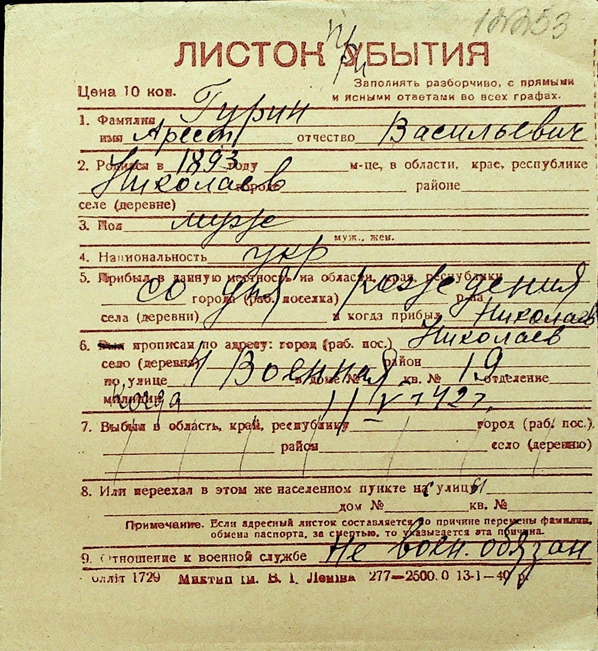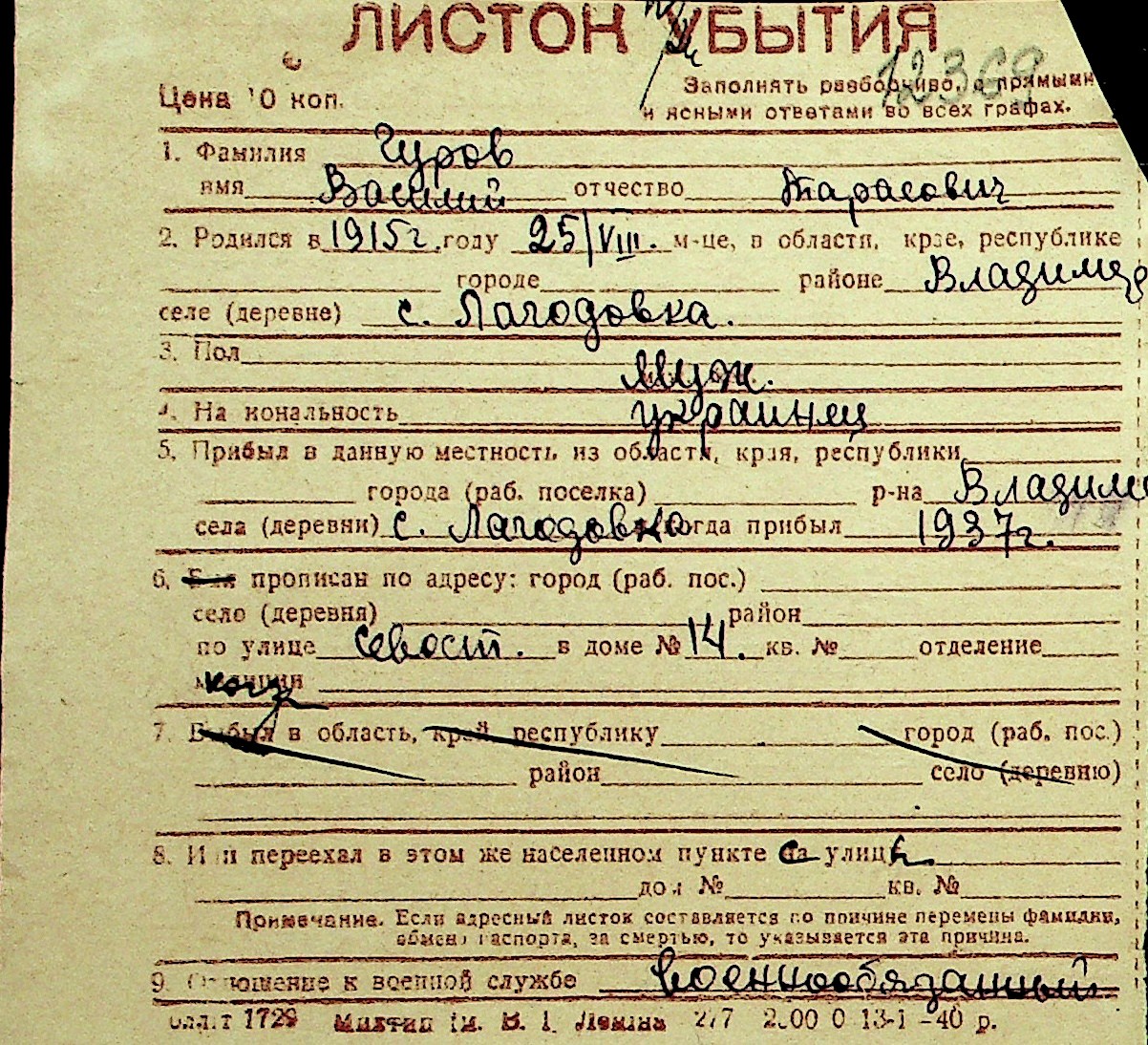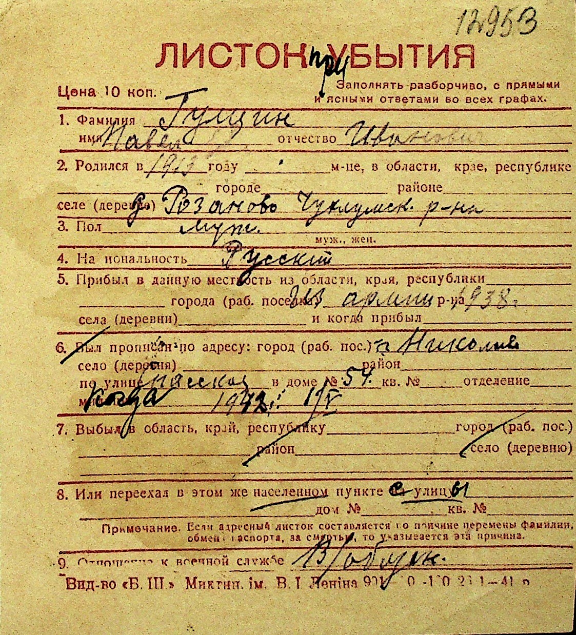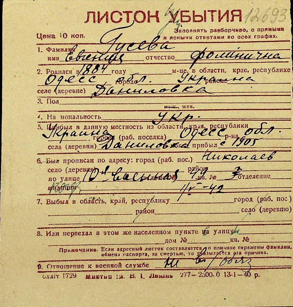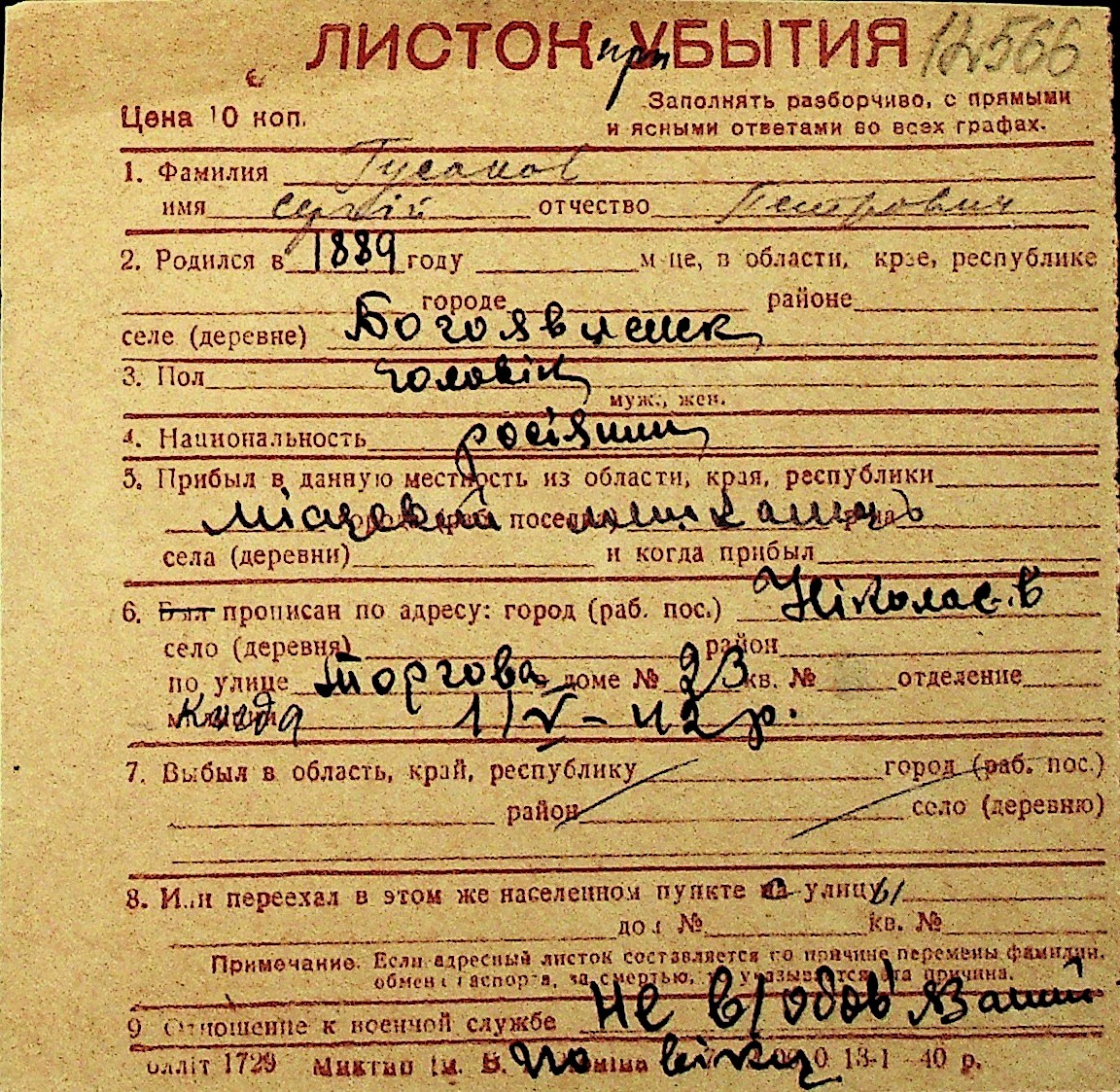 • • Перелік карток до фонду № Н-1016