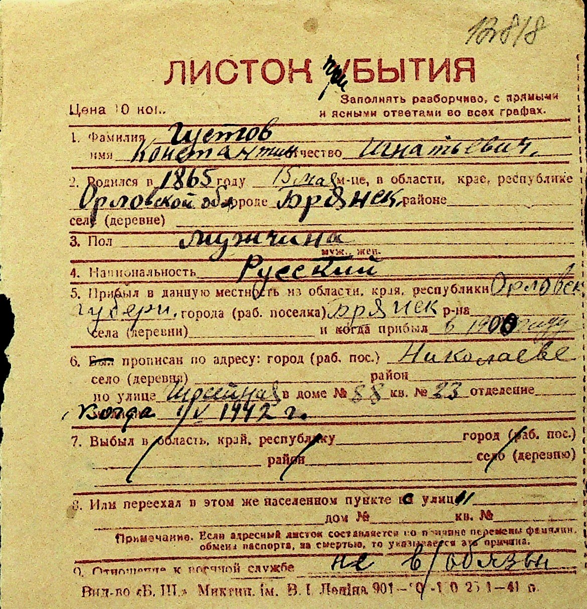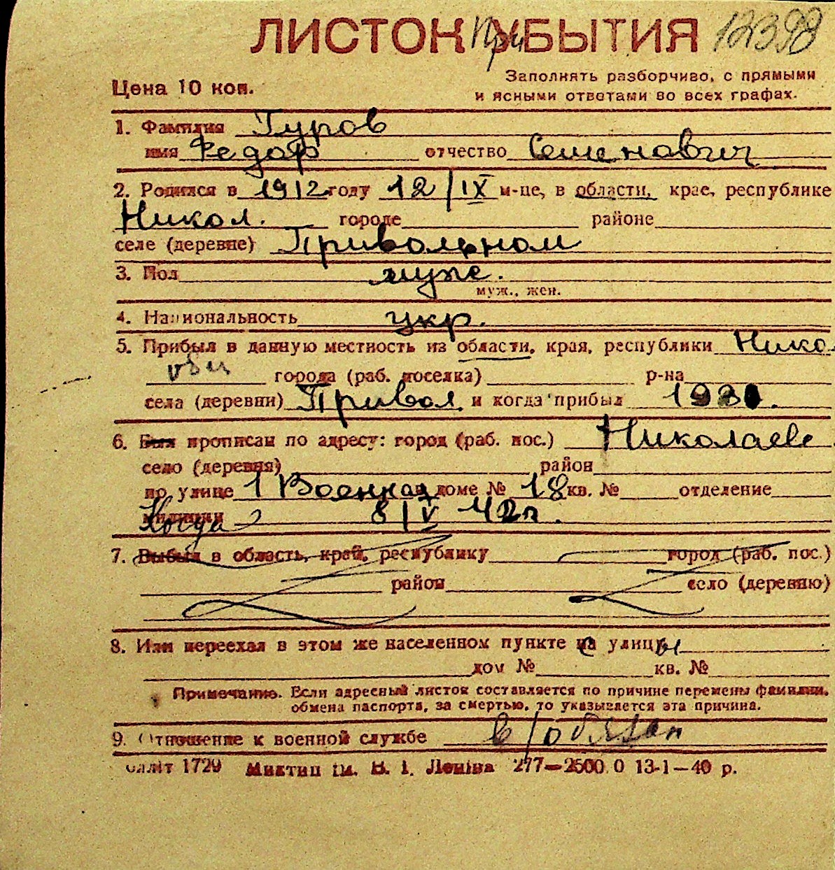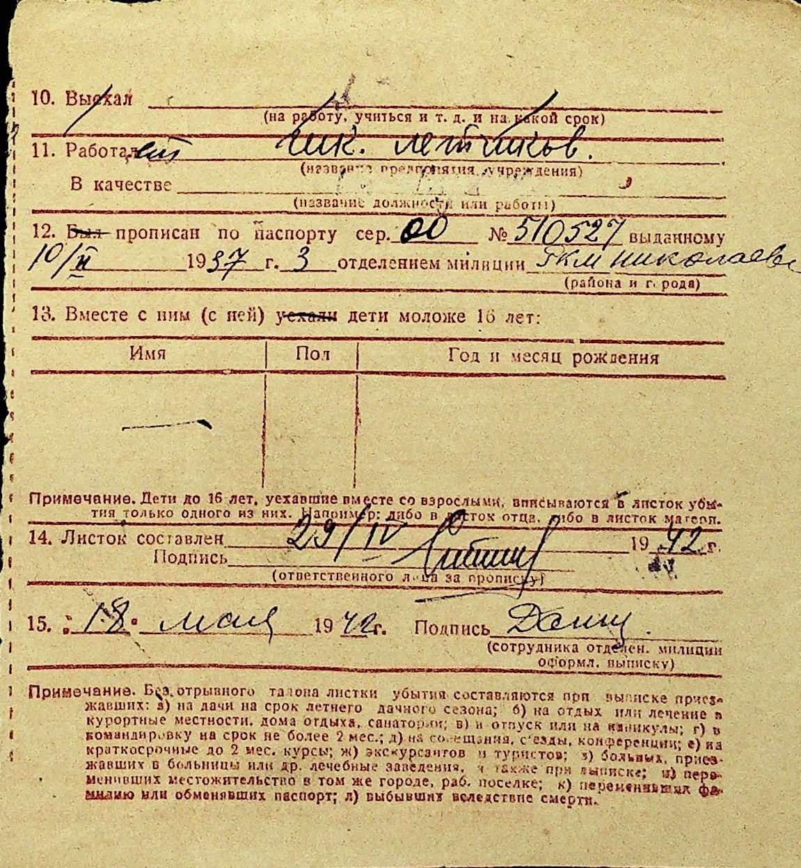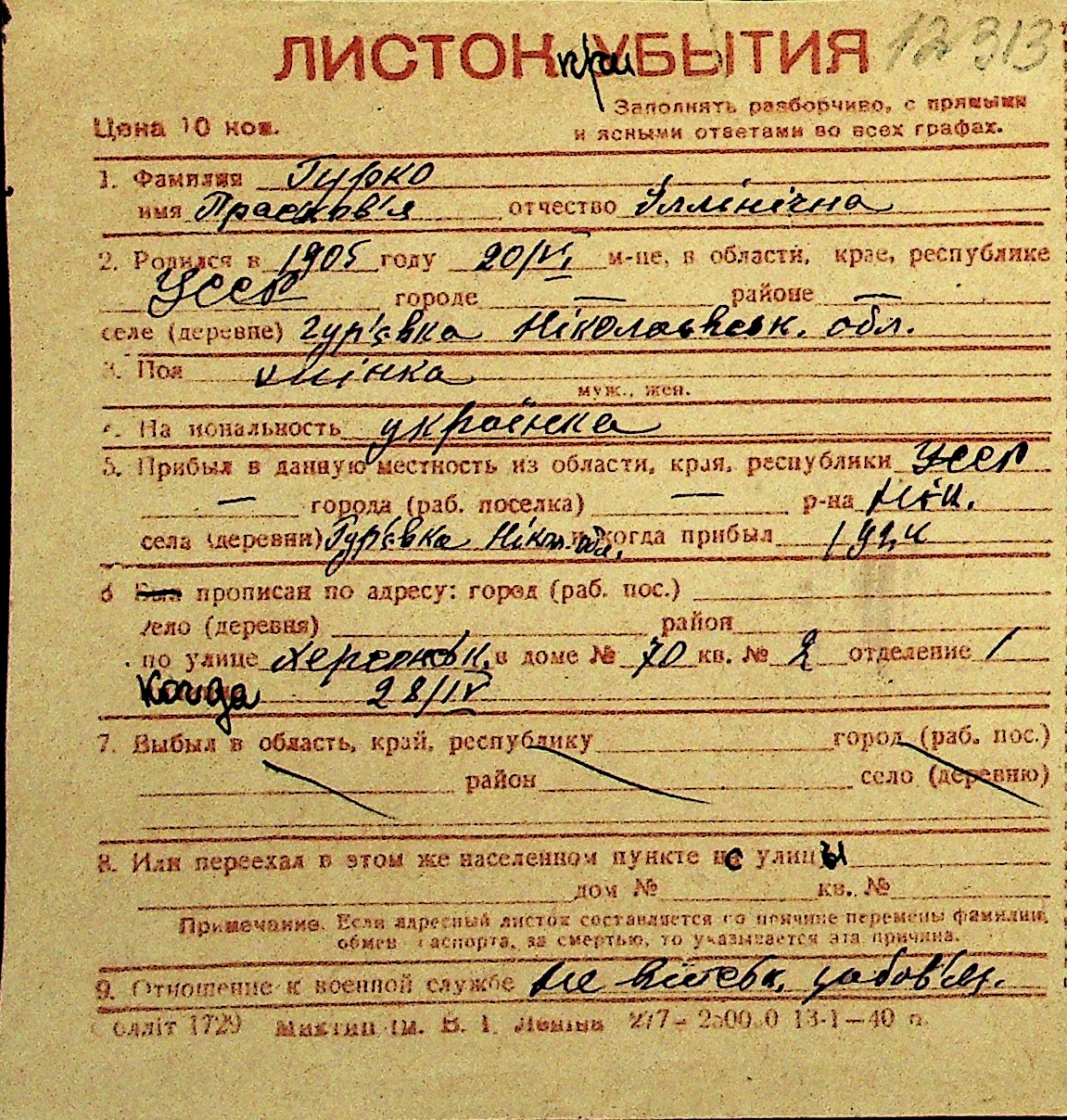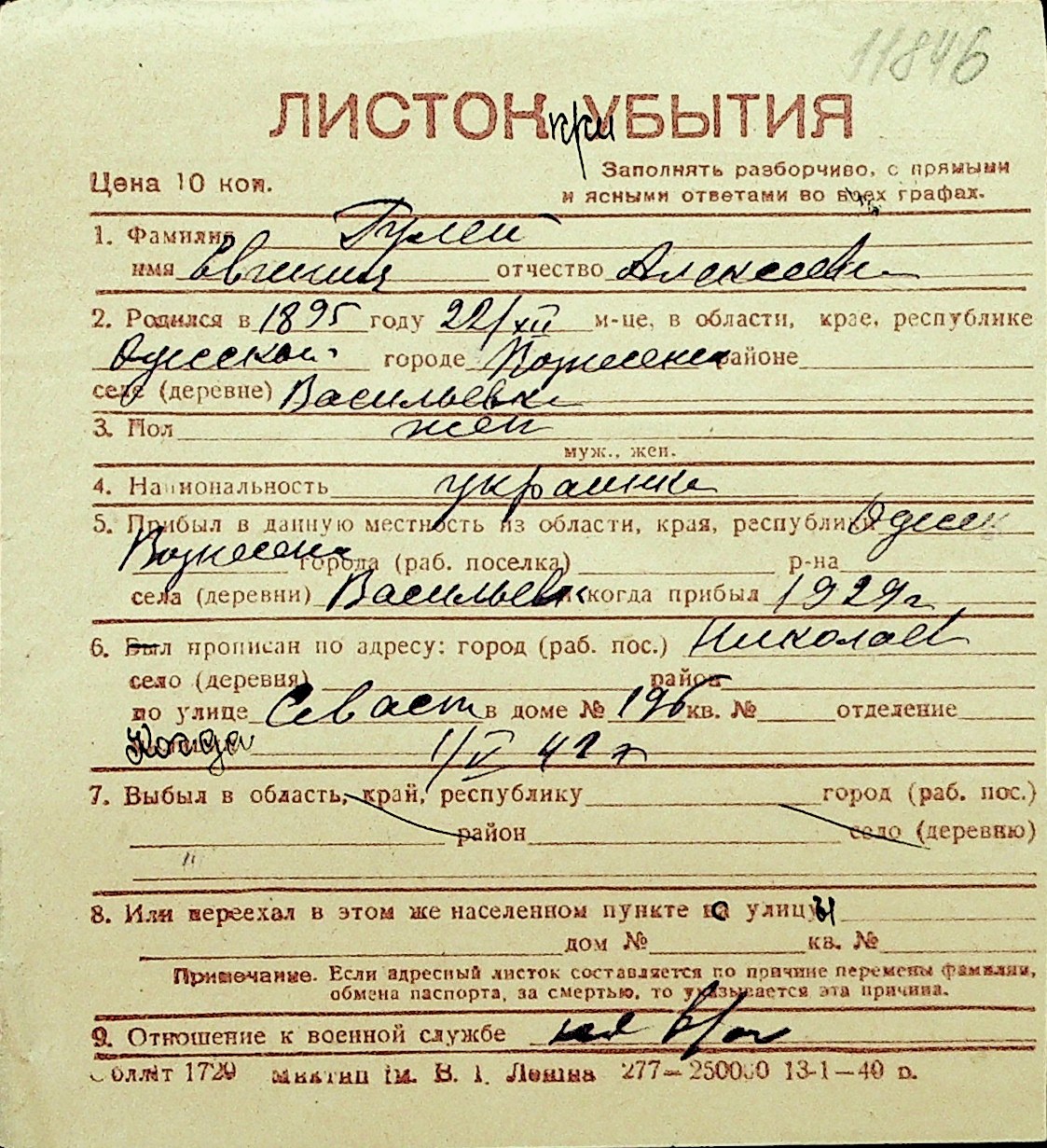 • • Перелік карток до фонду № Н-1016