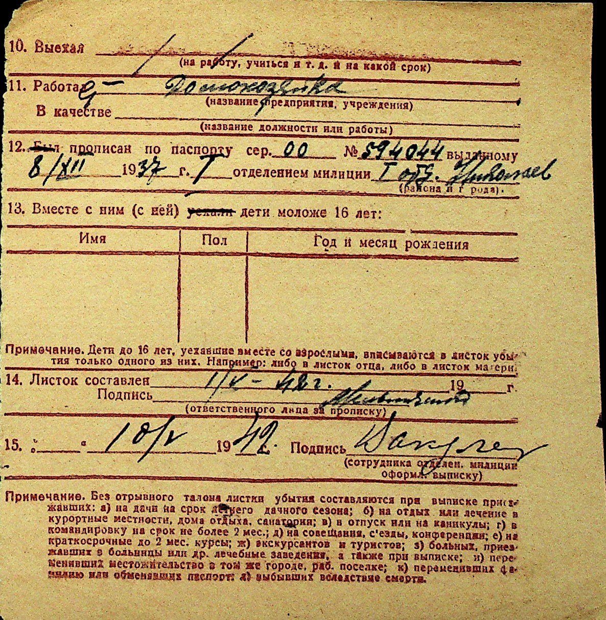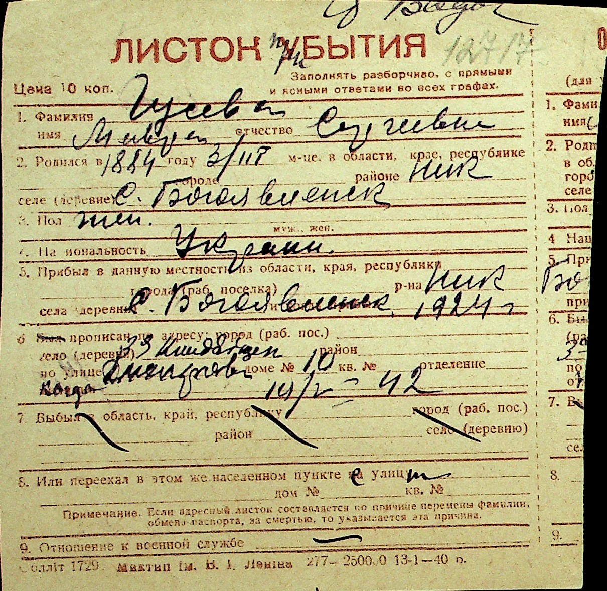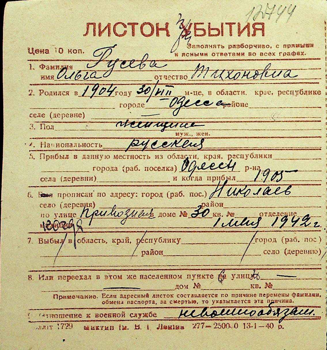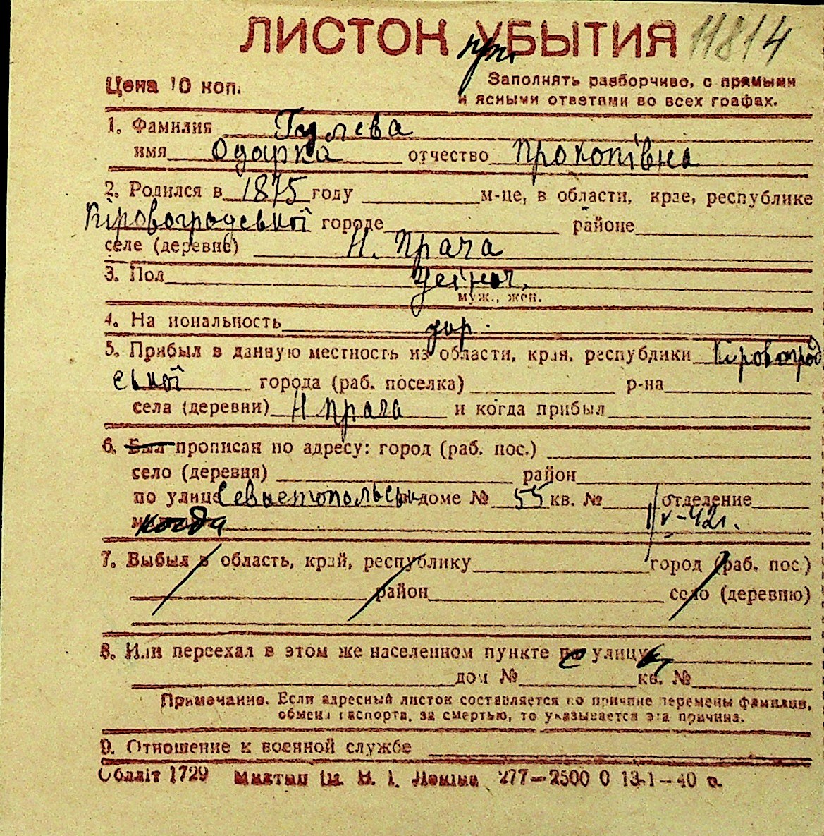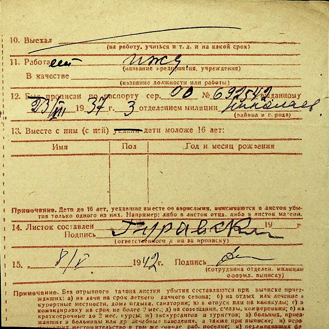 • • Перелік карток до фонду № Н-1016