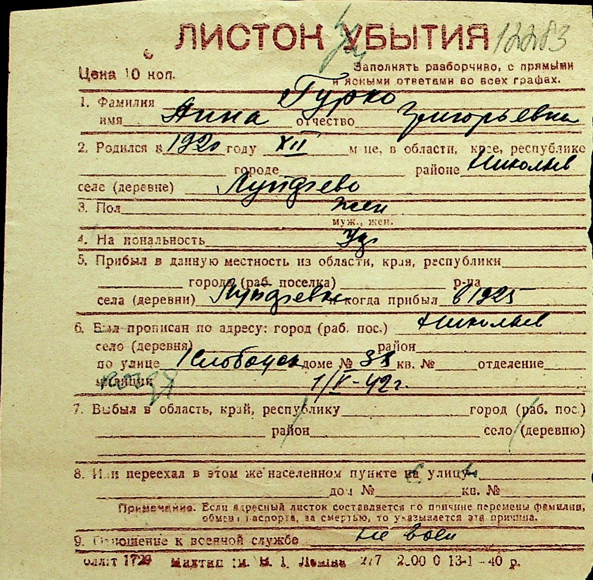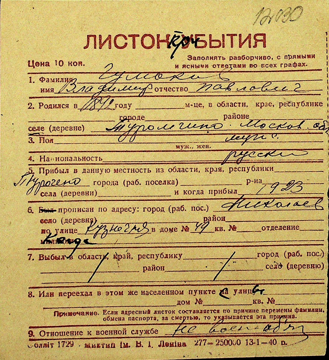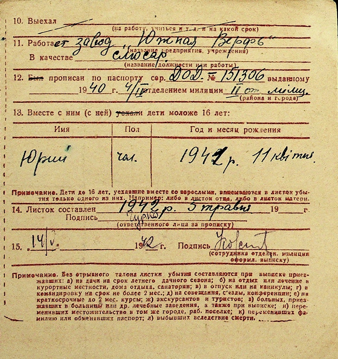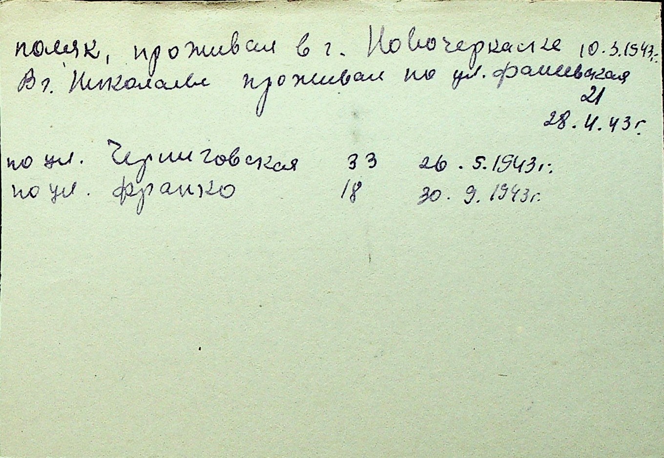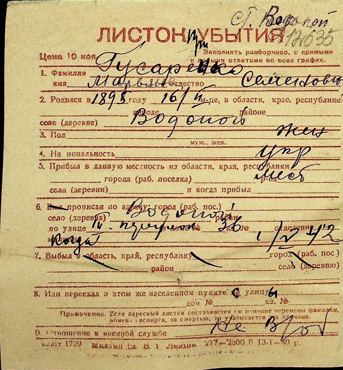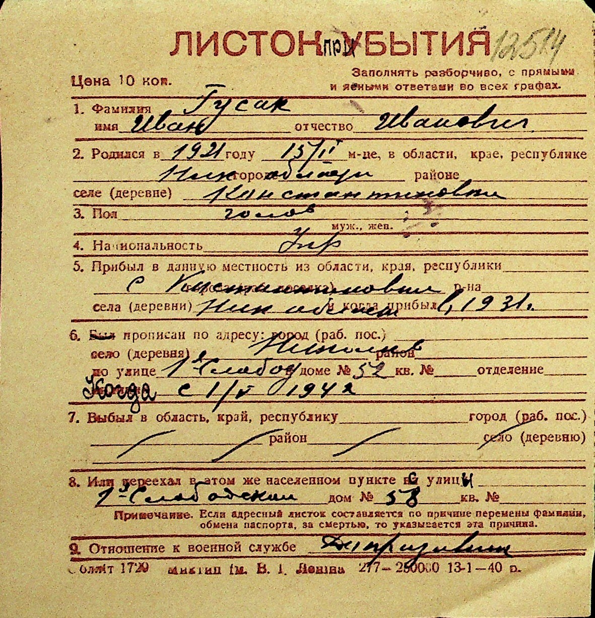 • • Перелік карток до фонду № Н-1016