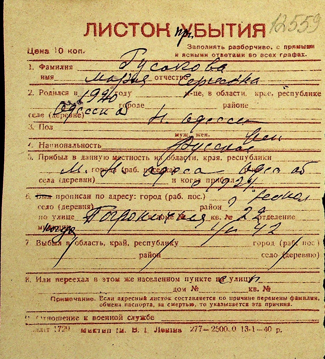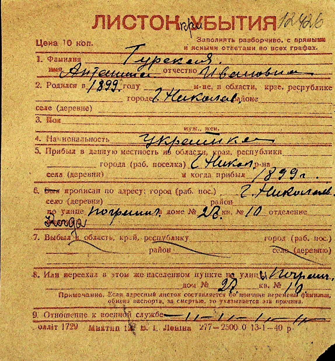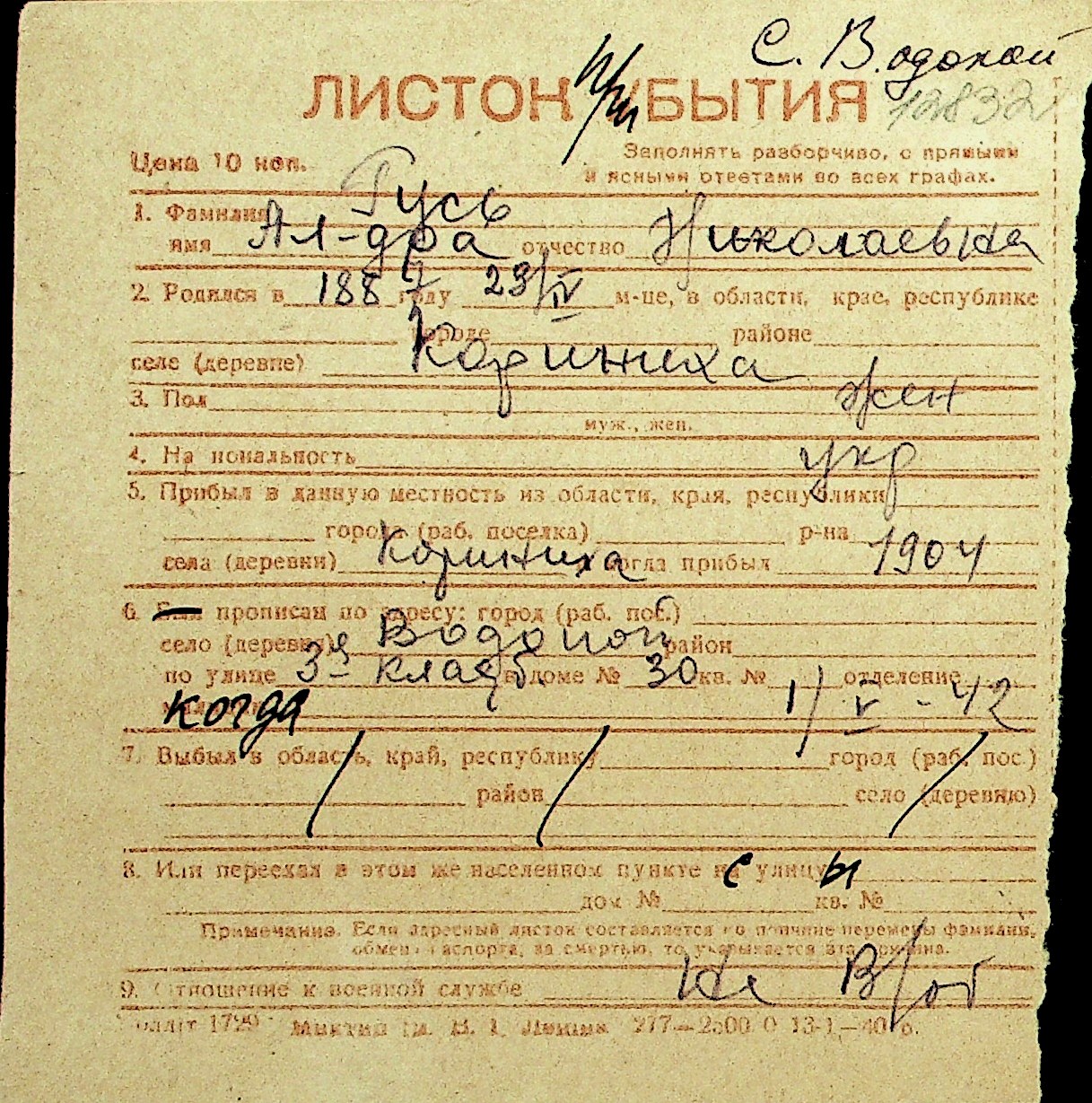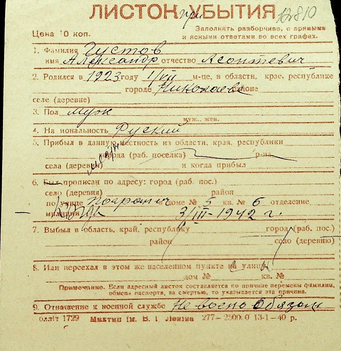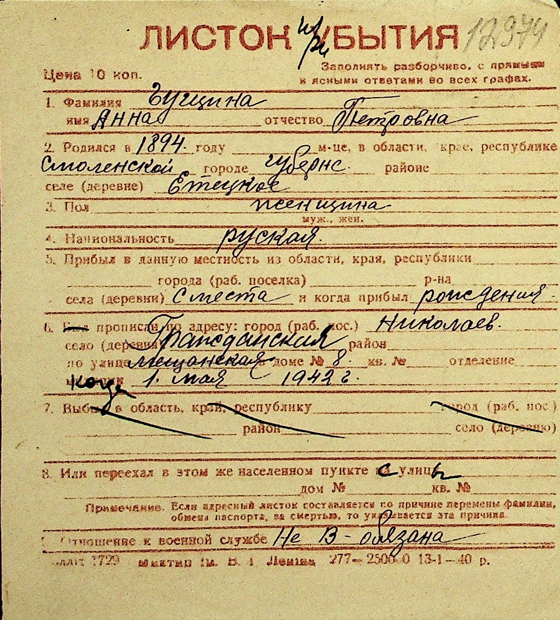 • • Перелік карток до фонду № Н-1016