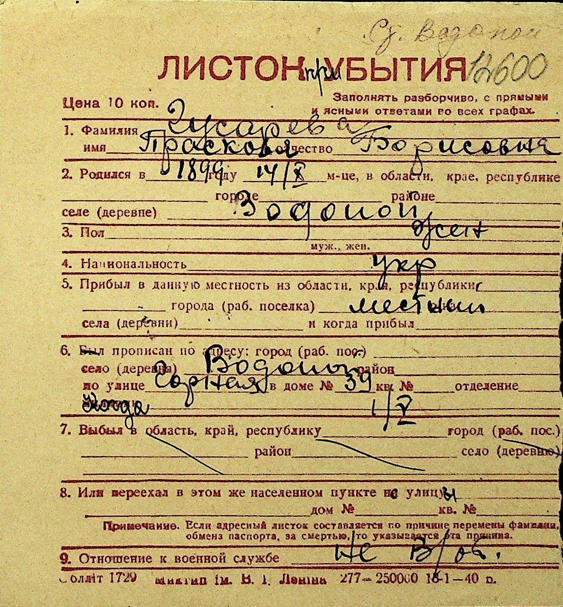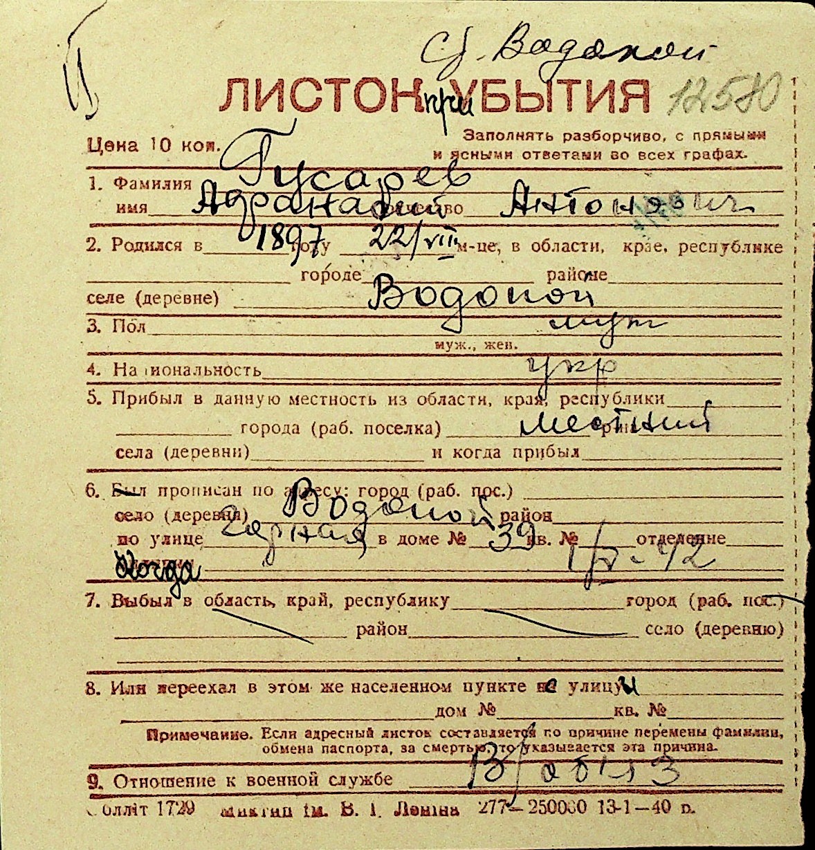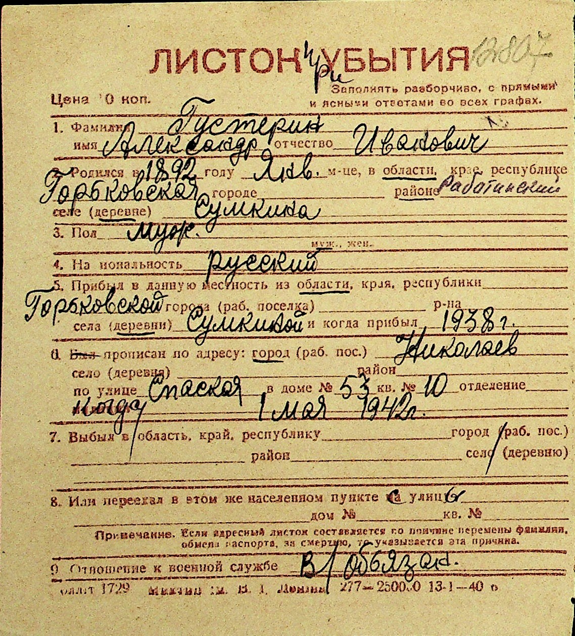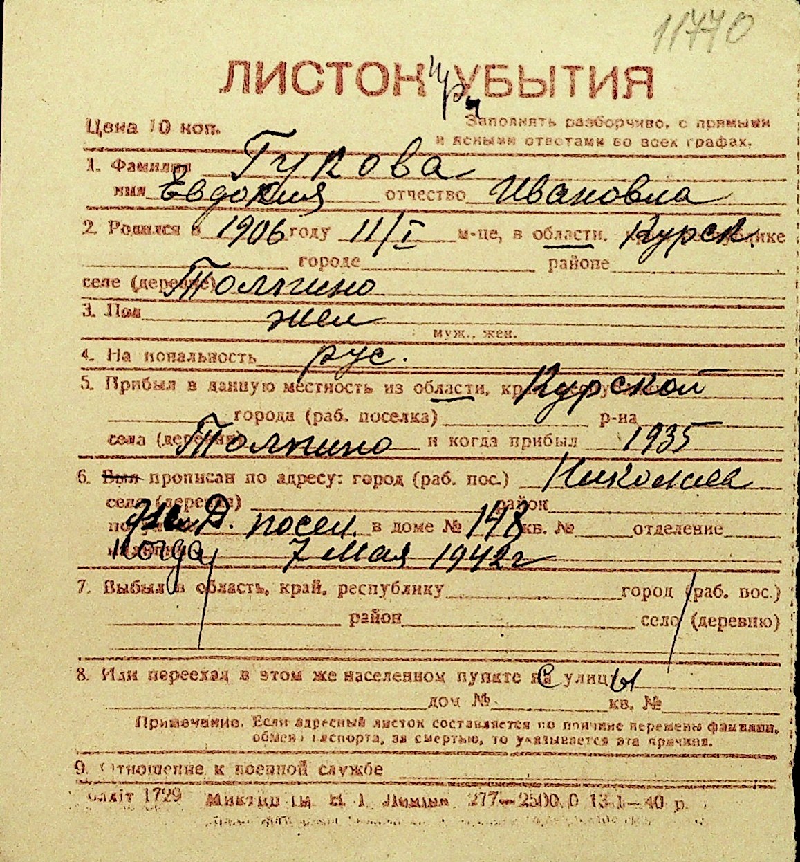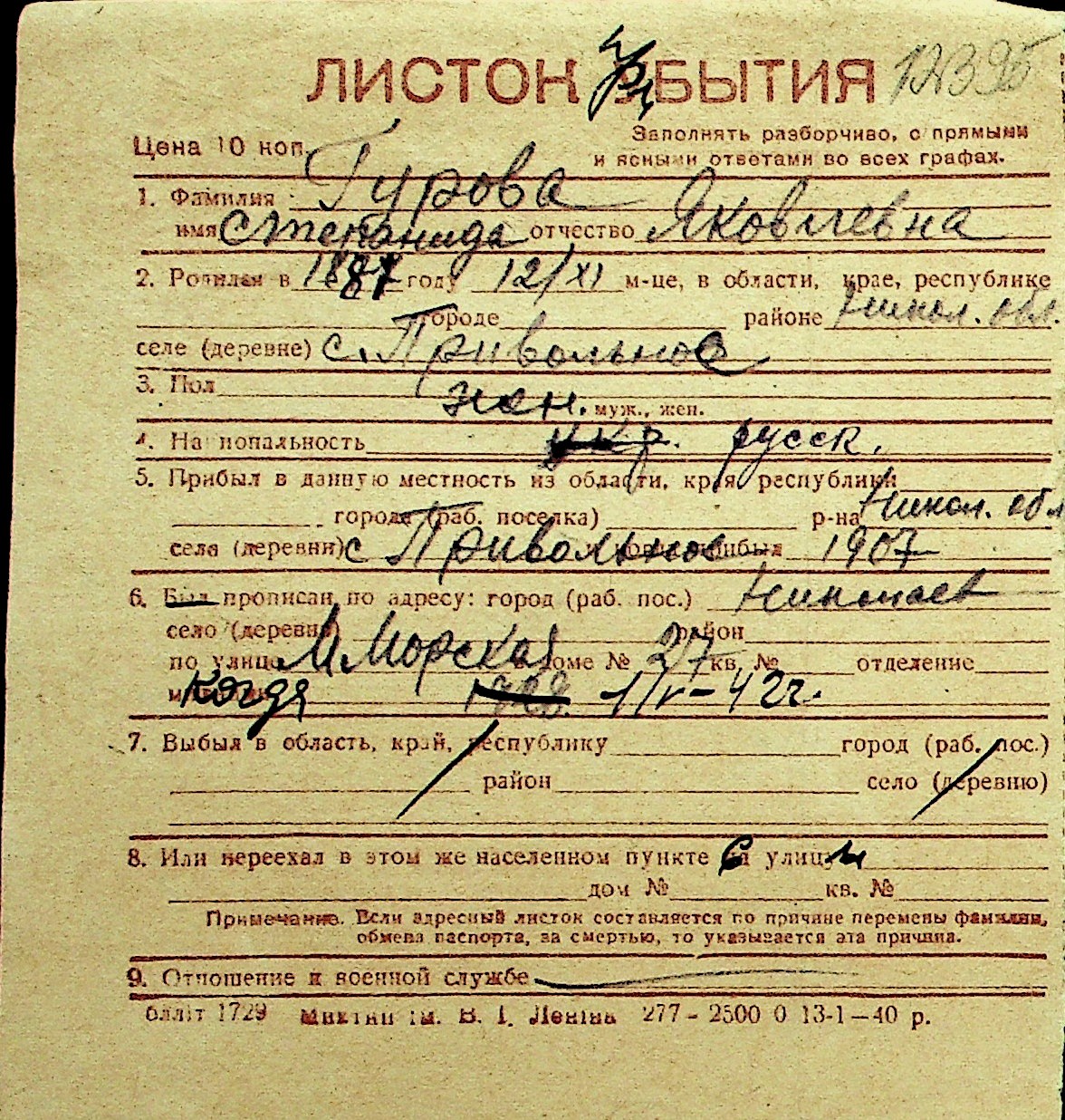 • • Перелік карток до фонду № Н-1016