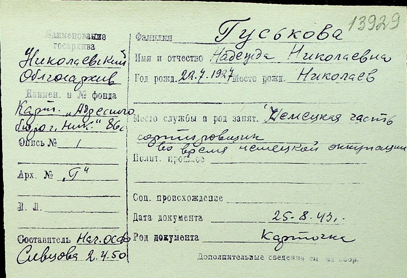 ◦ Описи фондів радянського періоду та незалежної України