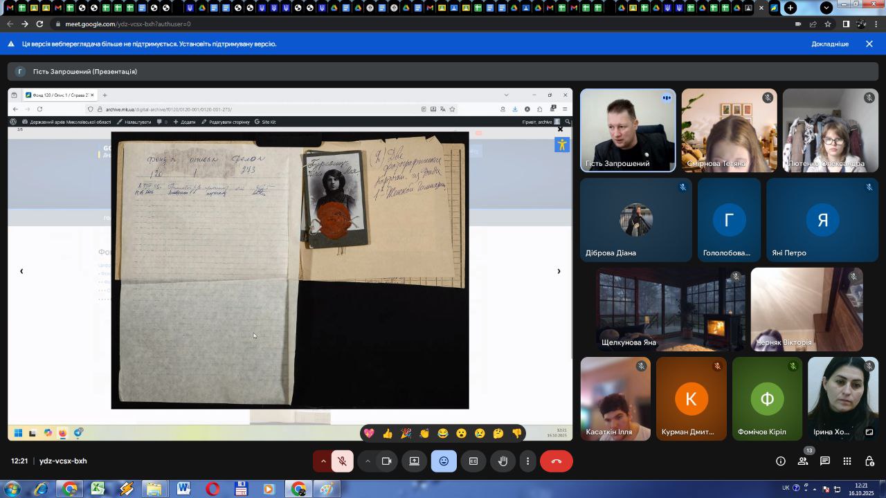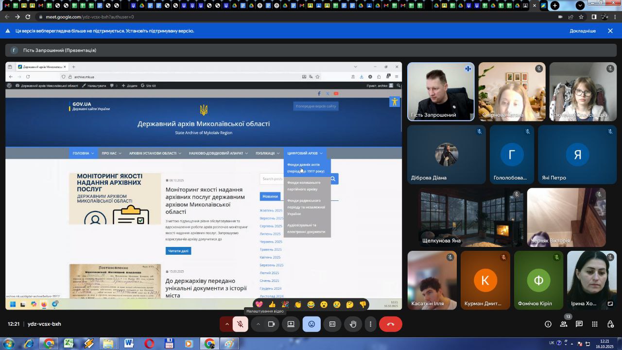 16 жовтня 2025 року у рамках навчальної дисципліни «Організація електронного документообігу» для здобувачів освіти ІІІ та ІІ курсів спеціальності «Інформаційна, бібліотечна та архівна справа» Миколаївського фахового коледжу культури і мистецтв Миколаївської обласної ради проведено онлайн-лекцію, присвячену сучасним підходам до управління цифровими документами.