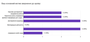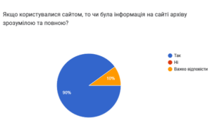 Опитування, проведене архівом, дозволило окреслити реальний досвід та очікування користувачів. Більшість респондентів позитивно оцінили рівень повноти отриманих відповідей, дотримання строків виконання послуг та професіоналізм співробітників. Значну частину відгуків присвячено роботі цифрових сервісів архіву: користувачі висловили вдячність за якість оцифрованих документів та зрозумілість інформації на вебсайті. Разом із тим прозвучали й зауваження щодо потреби в подальшому розширенні онлайн-доступу до документів та вдосконаленні процесу виготовлення копій архівних справ.